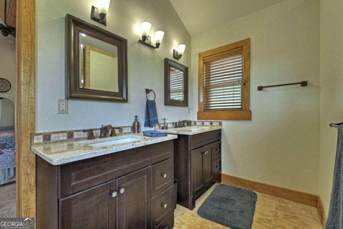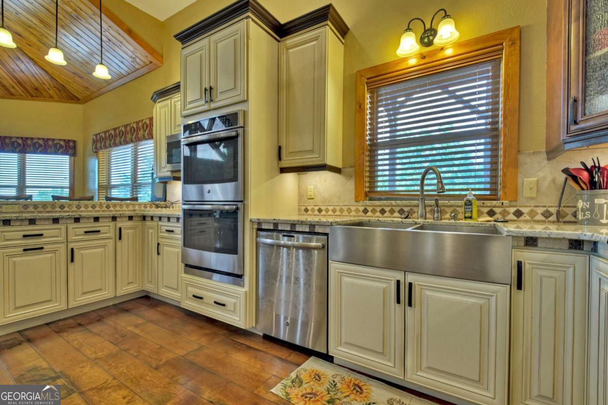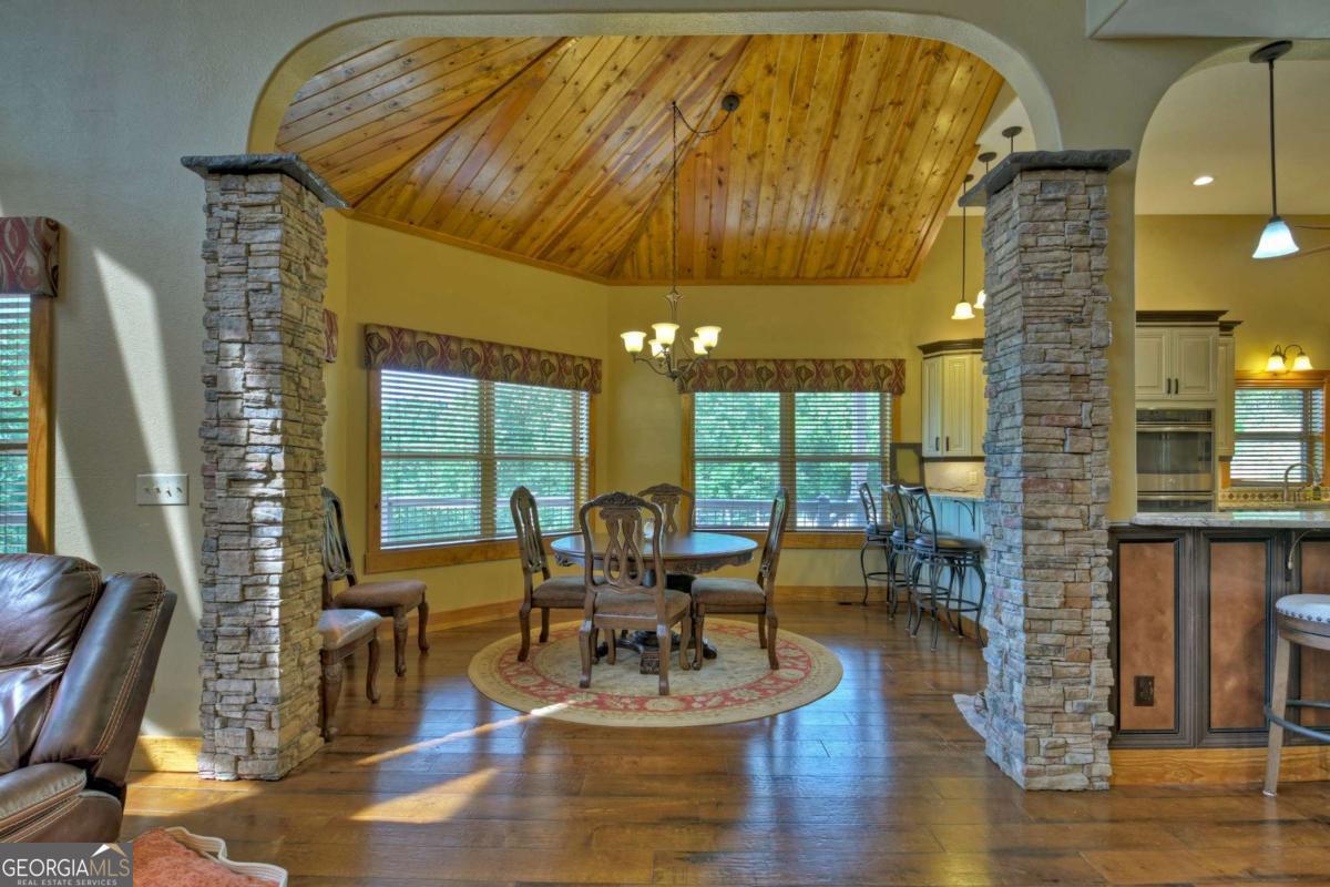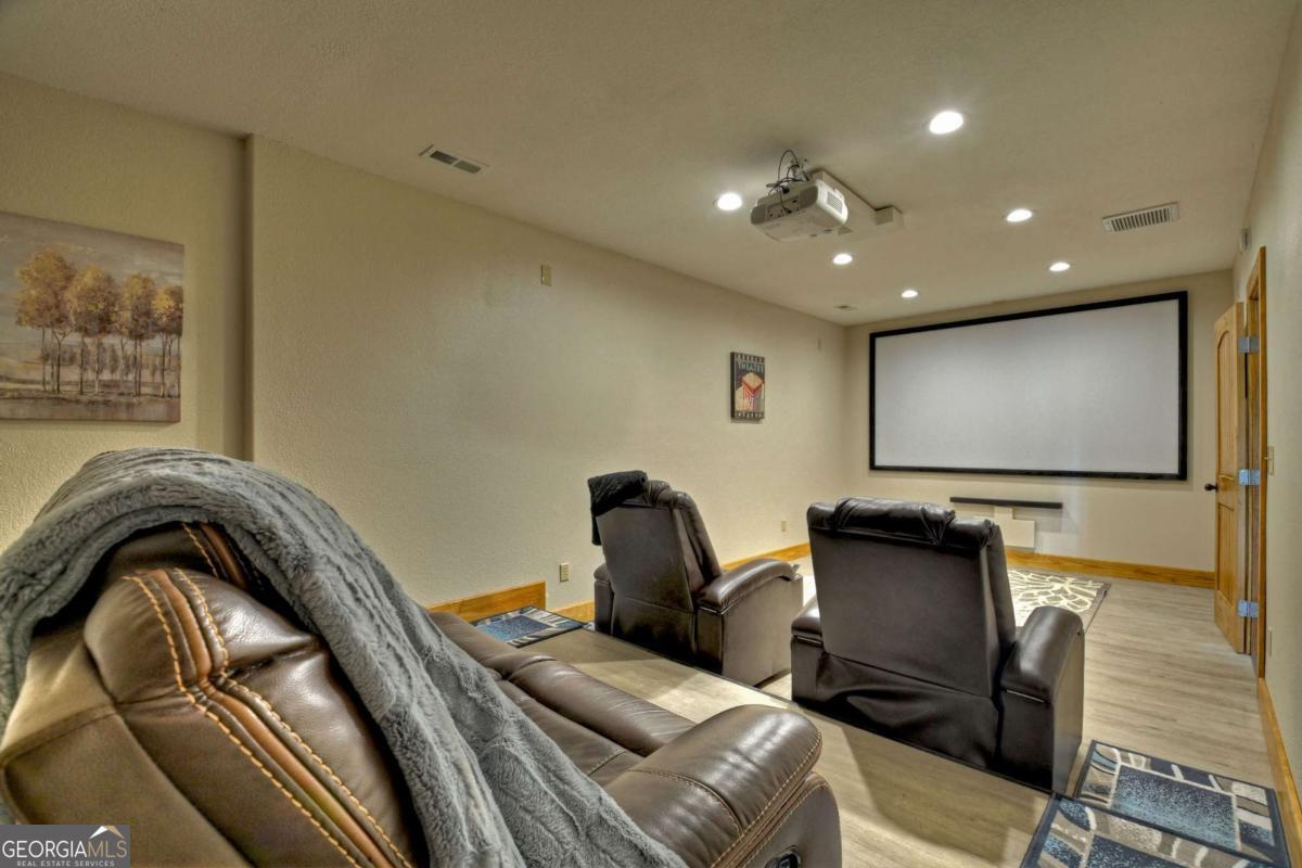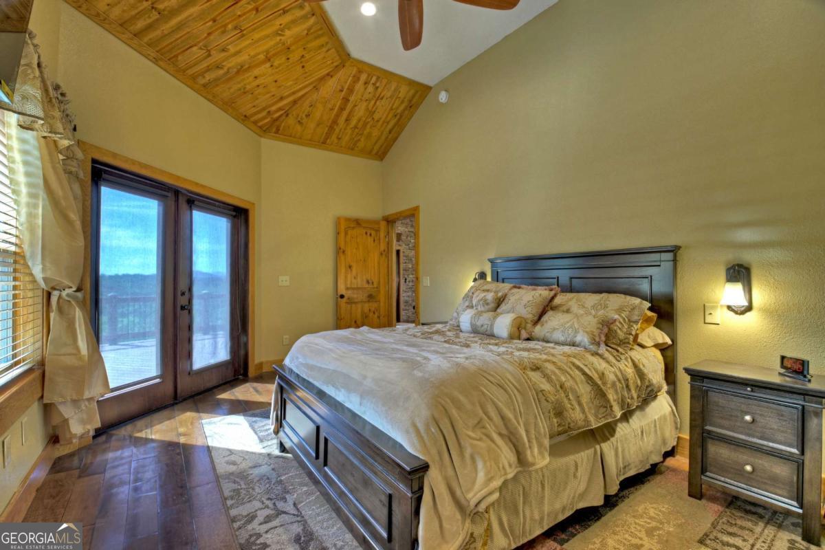 Breathtaking long range mountain views await you. Experience the charm of rustic luxury in this tastefully furnished and well-appointed cabin. Step into the impressive foyer, which offers ample storage. The interior boasts exceptional finishes and attention to detail. A stunning stone wall of windows elegantly captures the gorgeous views from the open-concept living, dining, and kitchen spaces, which also features a wine bar. Equipped with high-end appliances, stylish countertops, modern cabinets and a handy pot filler faucet, the kitchen is a chef's dream. The upper-level primary suite includes a cozy sitting room, a private balcony, and a convenient stackable washer/dryer. On the terrace level, you'll find another full kitchen, a spacious recreation area, and a contemporary media room perfect for movie nights with family and friends. Expansive decks provide an outdoor kitchen and plenty of space-both covered and uncovered-for entertaining guests. This home is practically new; though construction began in 2005, it was completed in 2023, when the certificate of occupancy was issued. Enjoy deeded creek access and a community pavilion that present endless opportunities for outdoor adventures. It is conveniently located near the delights of mountain living in North Carolina and North Georgia, including shopping, dining, trout fishing, boating, vineyards, hiking, tubing, and even Murphy's very own casino.