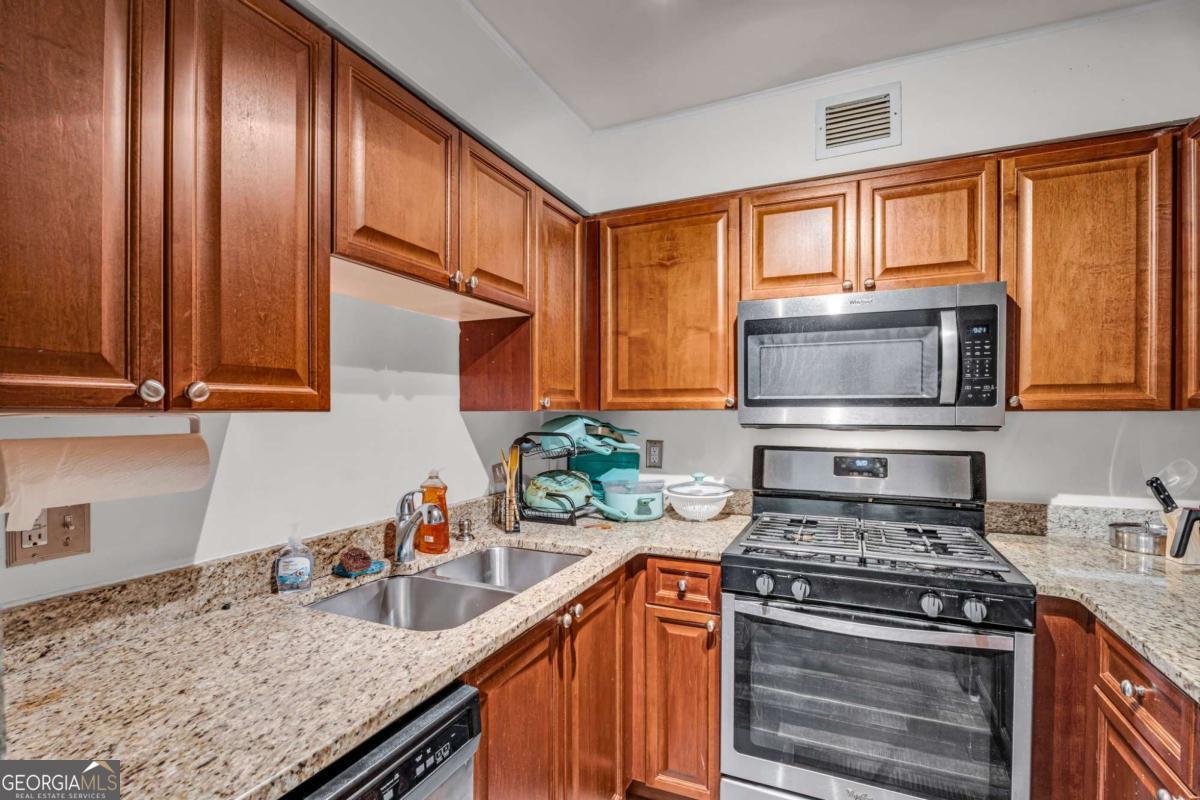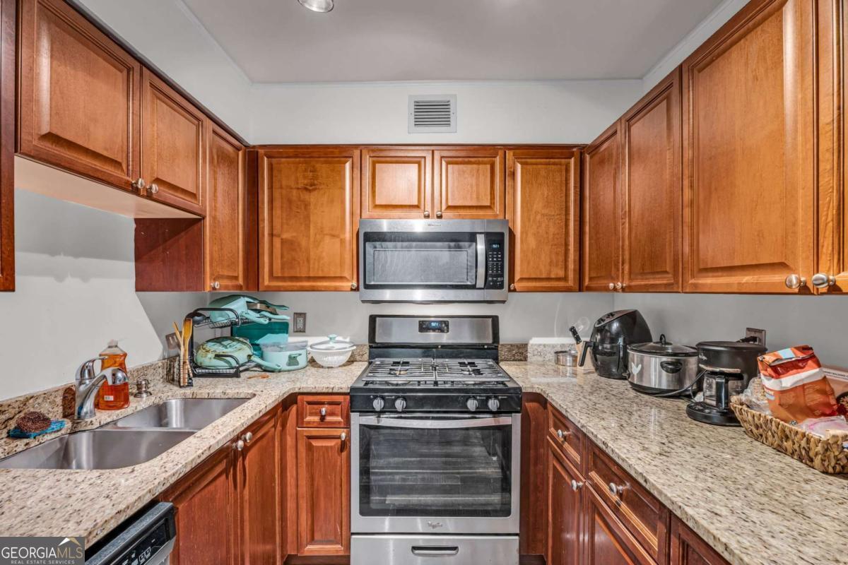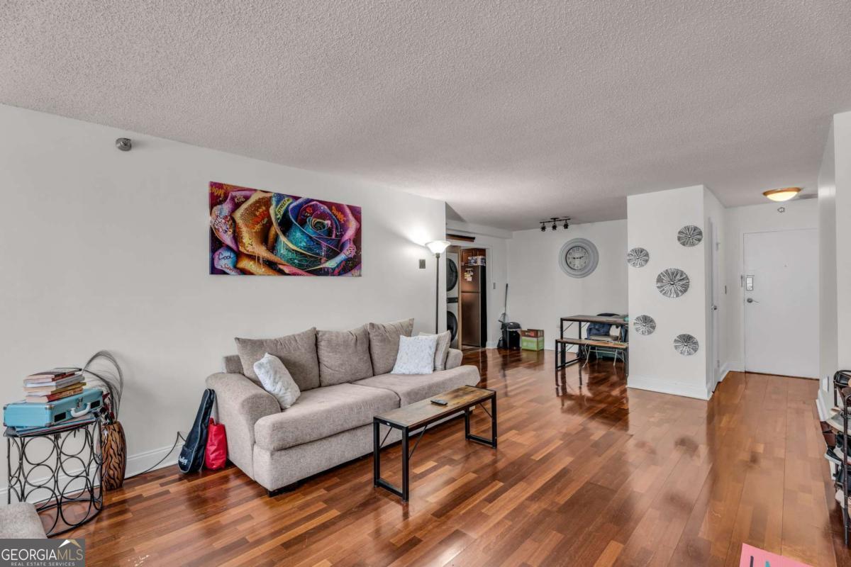 LOCATION, LOCATION!! AMAZING VIEWS OF THE CITY! AFFORDABLE Luxury Living in Buckhead with walking distance to Phipps Plaza and Lenox. This fabulous opportunity is conveniently located near all Buckhead has to offer to include shops at Buckhead, MARTA, walkable to bars, shops, restaurants, grocery stores, coffee shops, etc. This 1 bedroom, 1 bath Beauty has a large living room with beautiful engineered hardwood floors that runs into the dining room. The updated kitchen has granite counters and newer SS appliances. The hall laundry closet is hidden with a beauty barn door. The bathroom has been recently updated with a new vanity, toilet, ceramic floors, and full tiled shower walls. The generous bedroom has a walk-in closet with a barn door separate. This unit gets tons of natural light throughout the day. Did I mention the HOA covers ALL UTILITIES including gas, water, electricity, pest control, trash, as well as on-site amenities, 24hr concierge, pool, gym, clubhouse, meeting spaces, parking, dog park, and more! The Parking Deck Has Assigned Parking and Guest Spaces. Parklane is within easy access to expressways, Midtown, Downtown Atlanta and the Airport.