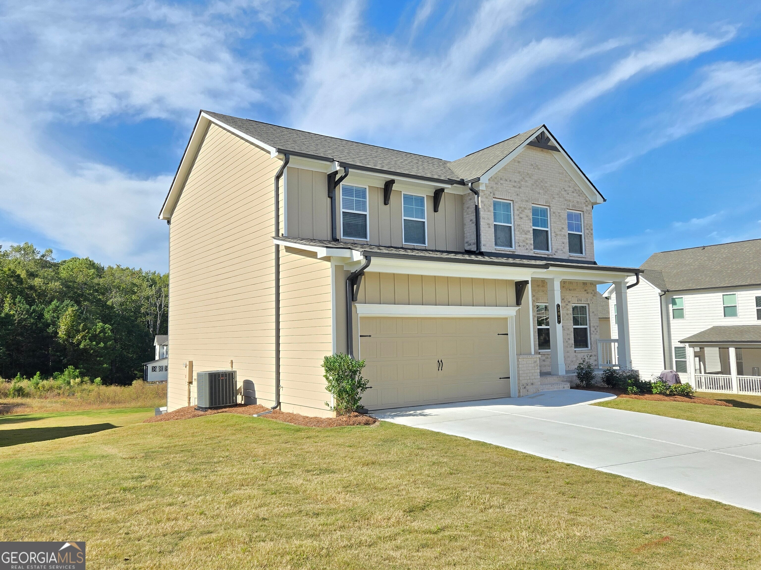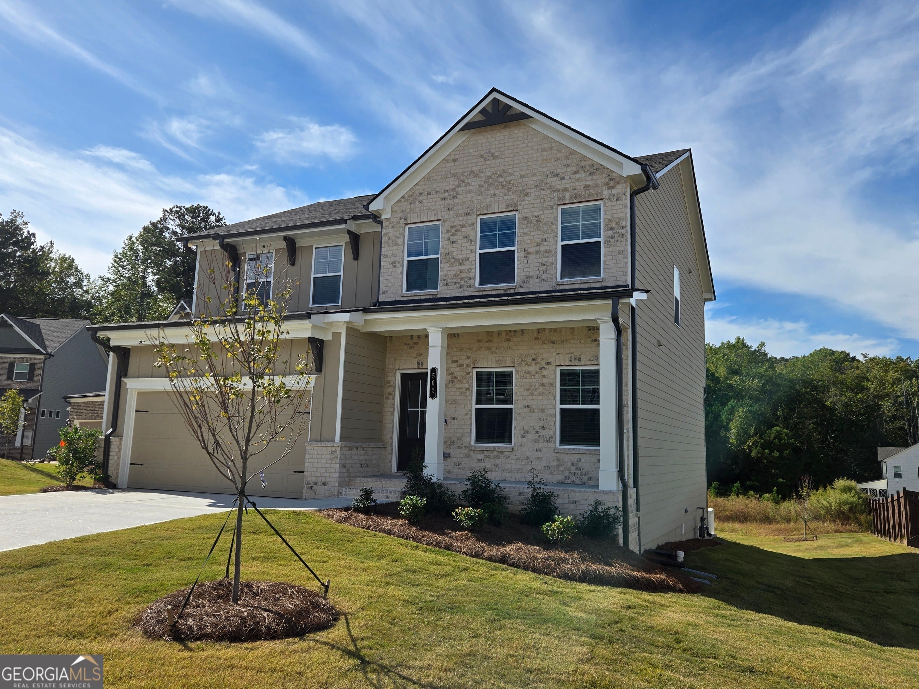 Stanford Welcome to this beautifully crafted move-in-ready new-construction home, located in a sought-after community featuring swimming pool amenities perfect for relaxation and recreation. This spacious residence offers 5 bedrooms and 3 full bathrooms, including a versatile flex space/bedroom on the main level-ideal for guests, a home office, or a playroom. The inviting Great Room seamlessly connects to the Breakfast area and Kitchen, creating an open layout perfect for everyday living. The Kitchen features granite countertops, a large island with bar stool seating, and a walk-in pantry for ample storage. Step outside to the covered porch with a privacy wall, providing a comfortable and secluded outdoor retreat. A convenient Mud Room with valet sits just off the garage entrance, keeping your home organized and clutter-free. Upstairs, the Primary Suite offers a relaxing escape with its private bathroom. The upper level also includes three secondary bedrooms and a secondary bathroom- three bedrooms sharing a hall bath. The laundry room is conveniently located upstairs, close to all bedrooms. For more details, availability, or to schedule a tour, please contact the listing agent.