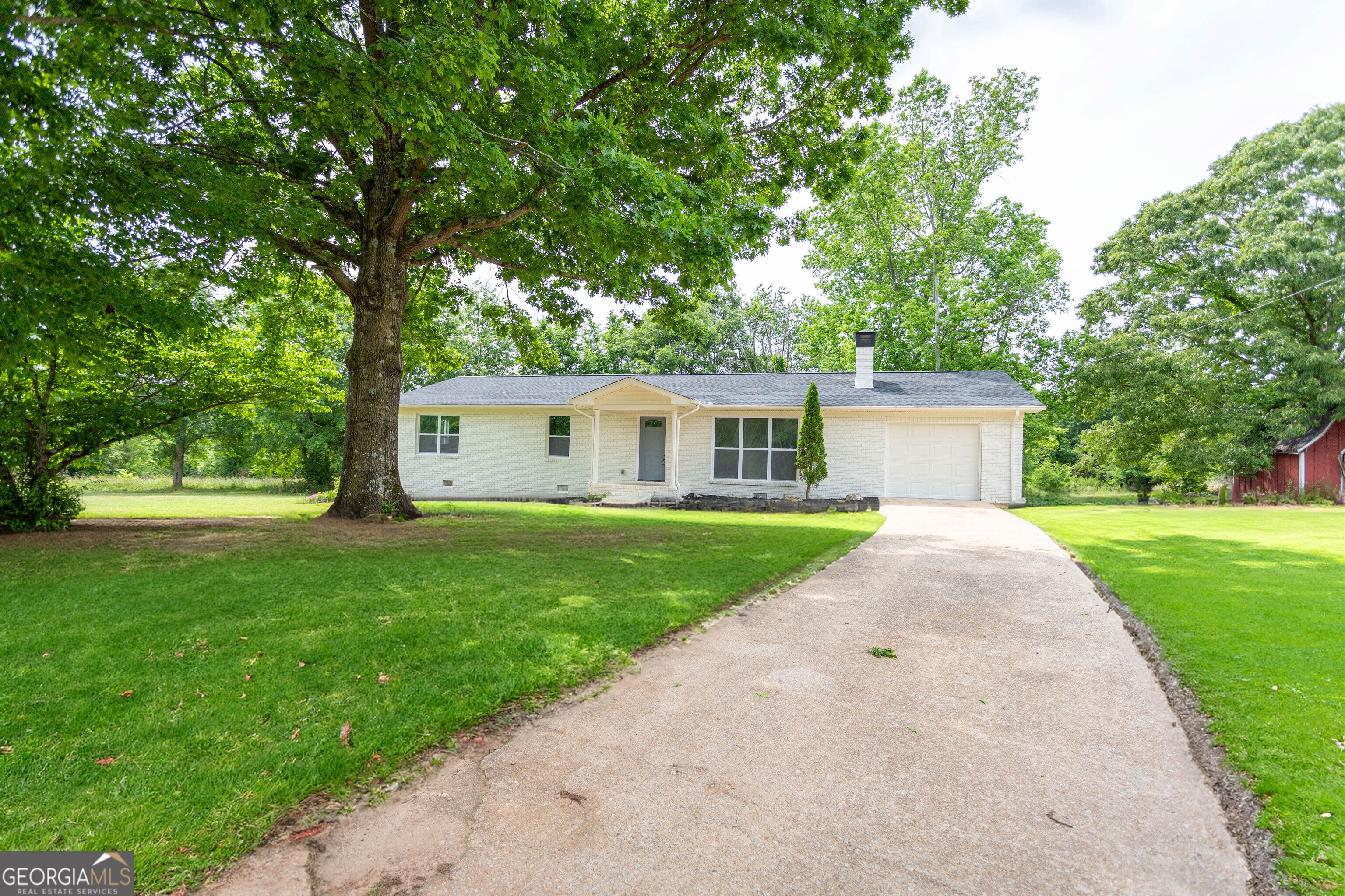 This classic four-sided brick home is ready for you to move in and make it your own! The home is sits on a 1.59 acre level lot. Don't miss this opportunity to live in a sought-after neighborhood with excellent schools and easy access to all the Commerce community has to offer. Enjoy spacious one-story living that features open plans and large windows throughout, making this home light and airy. The open floorplan that makes this home comfortable for active families and empty nesters alike. The foyer opens onto the great room with a wood-burning fireplace and a French door overlooking the green backyard. The great room flows into the kitchen and breakfast area. Great room has the original brick cozy fireplace and large glass windows for plenty of light to come in. The kitchen has stainless steel appliances, and a large peninsula for meal prep, baking, or entertaining, brand new quartz countertops and cabinets. The kitchen offers a breakfast area, the perfect spot for casual family meals. Down the hallway is the primary bedroom with plenty of sun in the morning and during the day, a large walk-in closet. Bedroom offers a beautiful view of the backyard. The ensuite bathroom features a state of the art modern bath with floor to ceiling ceramic tiles, double vanity and separate shower. The second bedroom is large enough for a guest room with a queen-size bed or a children's bedroom with twin beds and extra play space. Secondary bathroom across the hallway is fully renovated with glass tile. The owners converted the third bedroom to an office area but it also can be a cozy nursery or children's bedroom. The 3rd bedroom has its own cozy bathroom with a shower cabin. This home has a side-entry 1-car garage that includes a utility room and additional storage space. There is plenty space for parking on the cemented driveway and the side of the house. The open patio is the perfect spot for watching the trees and birds. The large backyard provides plenty of space for gardening and entertaining, and there is even room to add a pool! Absolutely everything is brand new including HVAC, roof, cabinets, floors, appliances, tiles and much more. Ideal House for working family or empty nesters. The house offers a quiet, serene place in nature and proximity at the same to shopping and restaurants in downtown Commerce, SK Battery, the Tanger Outlets Mall and few miles from I-85. No expense has been spared to ensure the new owner will have a maintenance-free home.