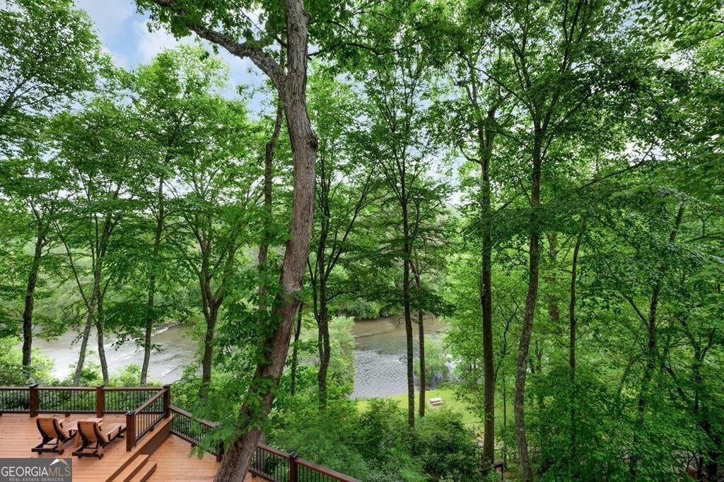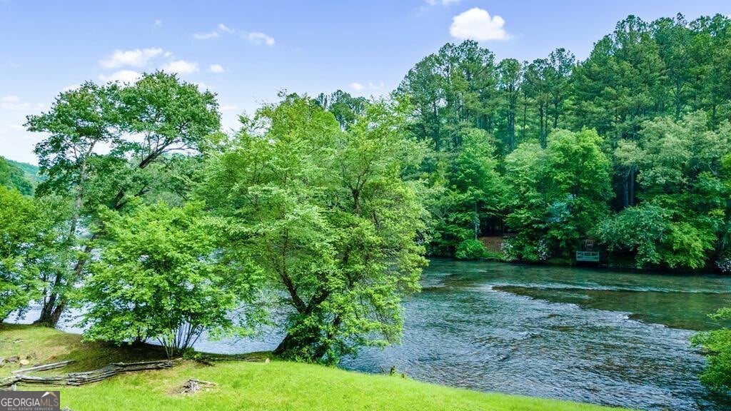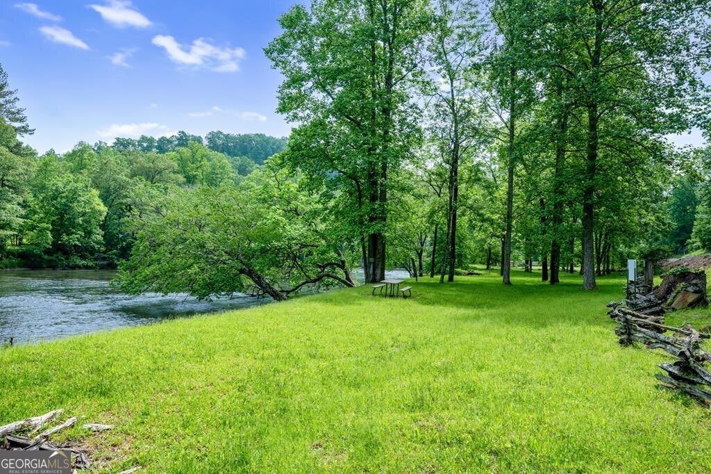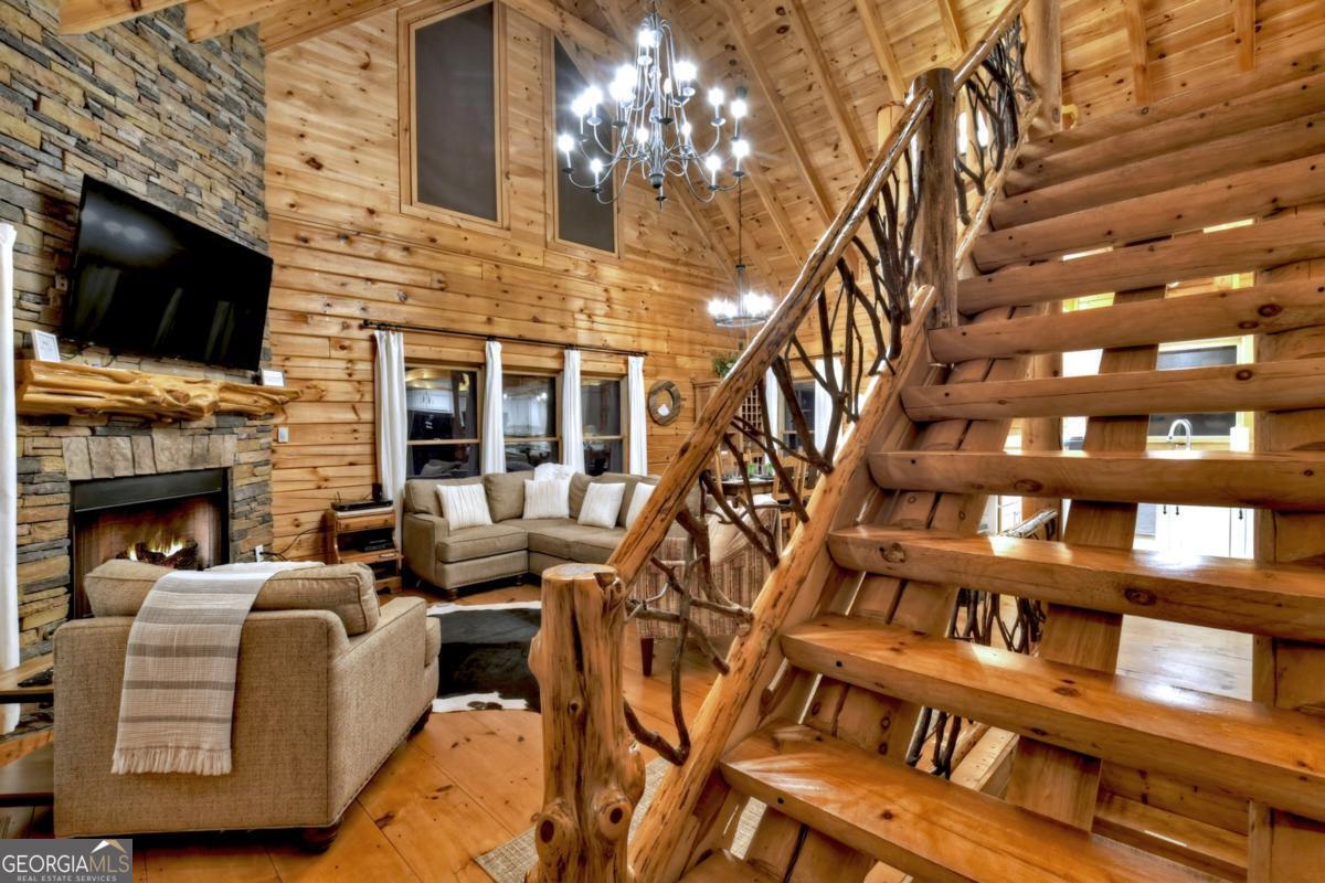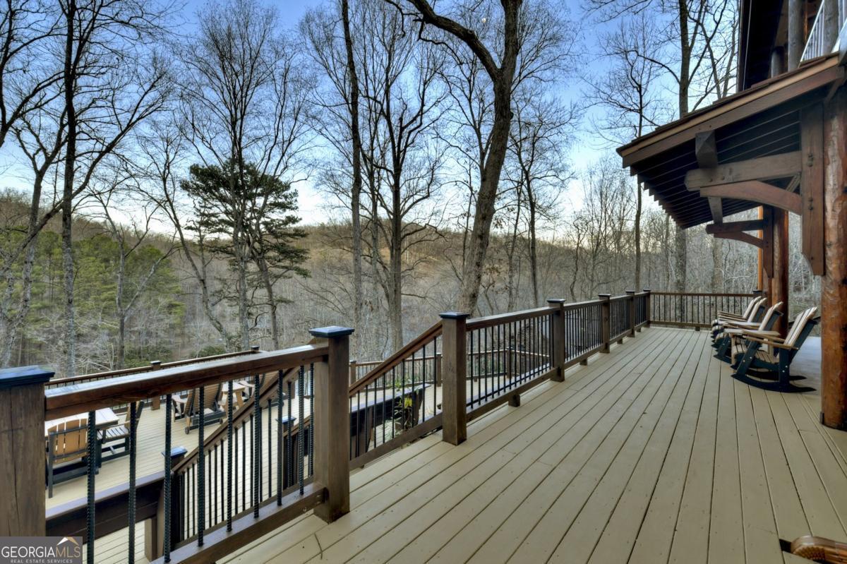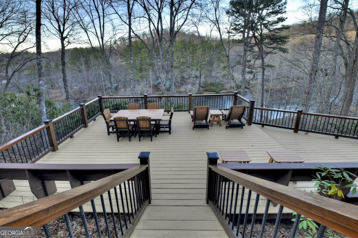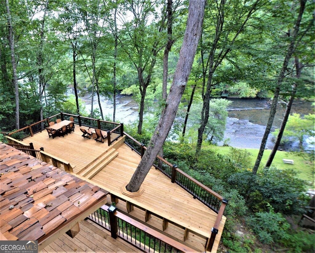 Prepare to be captivated by the CASCADING DECKS, BREATHTAKING VIEWS, and FULL RIVER ACCESS of Fishtrap Overlook! Listen to the SOOTHING SOUNDS of the river, watch bald eagles fish over the historic NATIVE AMERICAN "FISH TRAP" in the river below, and enjoy the charm of the Blue Ridge Scenic Railway passing by seasonally. This Turn-key, fully furnished cabin is a BEAUTIFULLY UPDATED and meticulously maintained REAL LOG CABIN that features custom designer details, a cabin-chic lighting package, vaulted ceilings, wide plank pine floors, and a cozy gas log fireplace. The RENOVATED KITCHEN offers GRANITE COUNTERTOPS and FARMHOUSE CABINETRY, perfect for entertaining. The main-level also includes a bedroom, full bath and linen closet, while the loft bedroom upstairs features custom wood & metal accent walls, ensuite bath, storage & office area backdropped w/ peaceful forest and mountain views. The finished terrace level features a game room with access to the party decks and hot tub area, a third bedroom, full bath, and a laundry room. This cabin has 10 closets for ample storage! Enjoy TWO LEVELS OF COVERED OUTDOOR LIVING SPACES, a NEWLY EXTENDED DECK, and a FIRE PIT AREA with STAIRS LEADING TO a park-like picnic area on the RIVERFRONT. Whether it's TROPHY TROUT FISHING, TUBING, or KAYAKING, this stretch of the TOCCOA RIVER (BELOW LAKE BLUE RIDGE) HAS IT ALL! Best of all, the home is ABOVE THE FLOODPLAIN-NO FLOOD INSURANCE NEEDED-and located JUST MINUTES FROM DOWNTOWN BLUE RIDGE. A ONE-OF-A-KIND RIVERFRONT RETREAT that BLENDS NATURE, HISTORY, AND MOUNTAIN LUXURY!