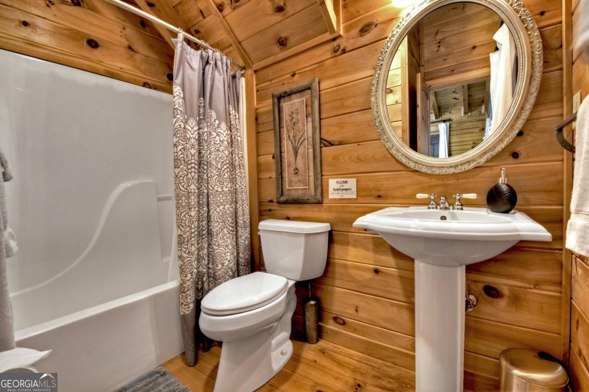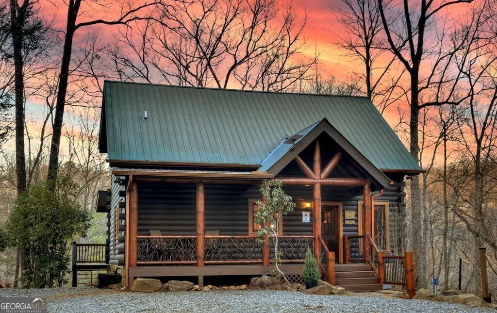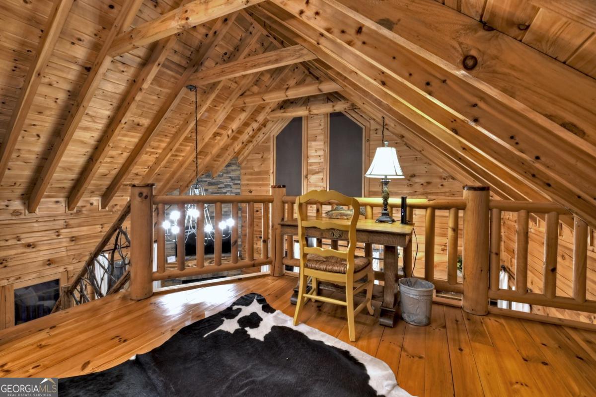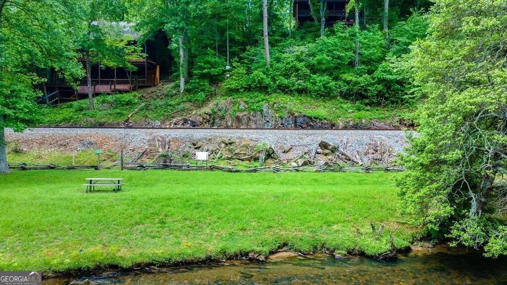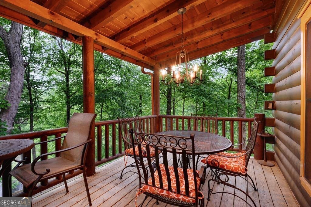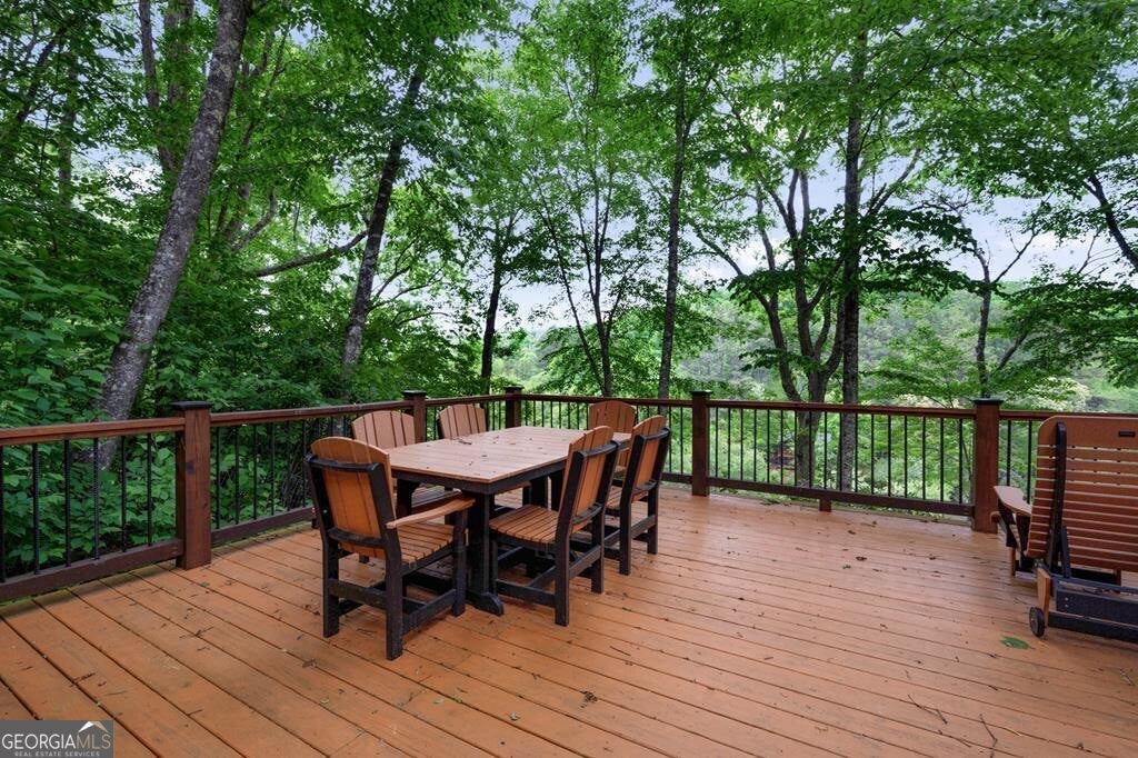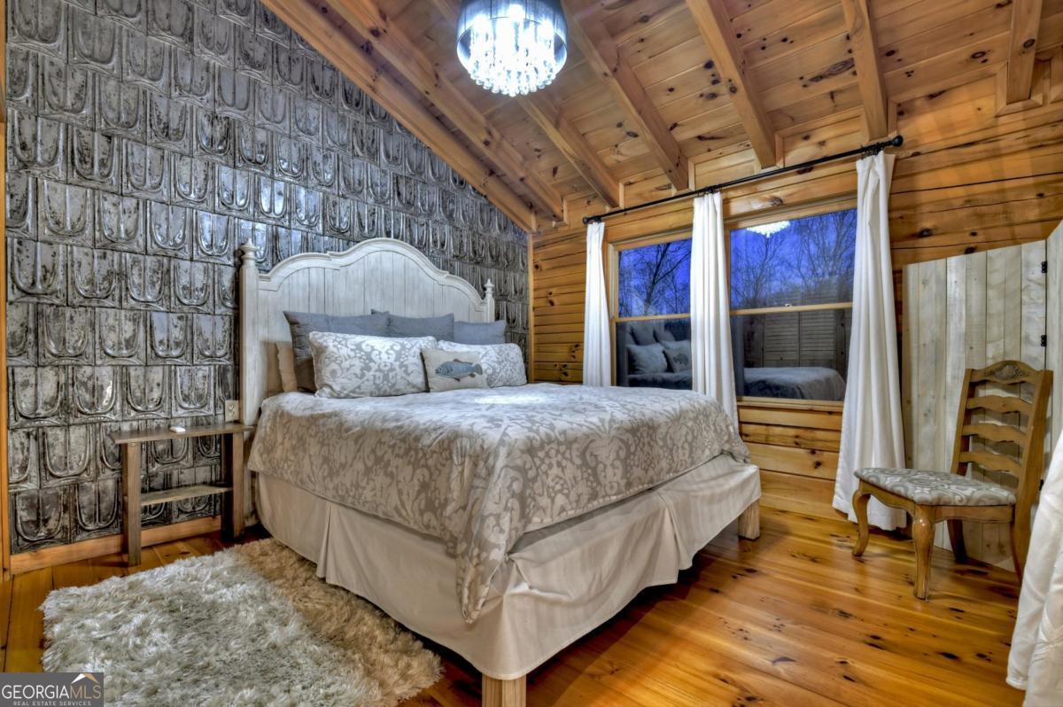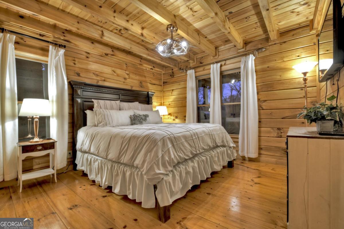Prepare to be captivated by the CASCADING DECKS, BREATHTAKING VIEWS, and FULL RIVER ACCESS of Fishtrap Overlook! Listen to the SOOTHING SOUNDS of the river, watch bald eagles fish over the historic NATIVE AMERICAN "FISH TRAP" in the river below, and enjoy the charm of the Blue Ridge Scenic Railway passing by seasonally. This Turn-key, fully furnished cabin is a BEAUTIFULLY UPDATED and meticulously maintained REAL LOG CABIN that features custom designer details, a cabin-chic lighting package, vaulted ceilings, wide plank pine floors, and a cozy gas log fireplace. The RENOVATED KITCHEN offers GRANITE COUNTERTOPS and FARMHOUSE CABINETRY, perfect for entertaining. The main-level also includes a bedroom, full bath and linen closet, while the loft bedroom upstairs features custom wood & metal accent walls, ensuite bath, storage & office area backdropped w/ peaceful forest and mountain views. The finished terrace level features a game room with access to the party decks and hot tub area, a third bedroom, full bath, and a laundry room. This cabin has 10 closets for ample storage! Enjoy TWO LEVELS OF COVERED OUTDOOR LIVING SPACES, a NEWLY EXTENDED DECK, and a FIRE PIT AREA with STAIRS LEADING TO a park-like picnic area on the RIVERFRONT. Whether it's TROPHY TROUT FISHING, TUBING, or KAYAKING, this stretch of the TOCCOA RIVER (BELOW LAKE BLUE RIDGE) HAS IT ALL! Best of all, the home is ABOVE THE FLOODPLAIN-NO FLOOD INSURANCE NEEDED-and located JUST MINUTES FROM DOWNTOWN BLUE RIDGE. A ONE-OF-A-KIND RIVERFRONT RETREAT that BLENDS NATURE, HISTORY, AND MOUNTAIN LUXURY!