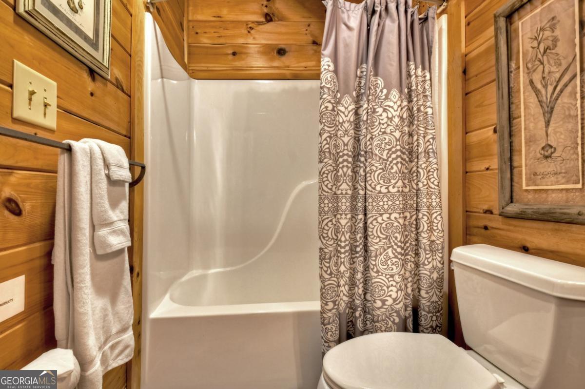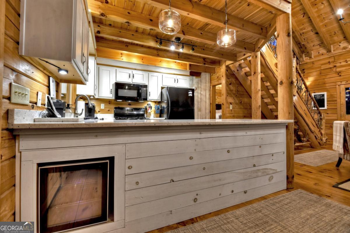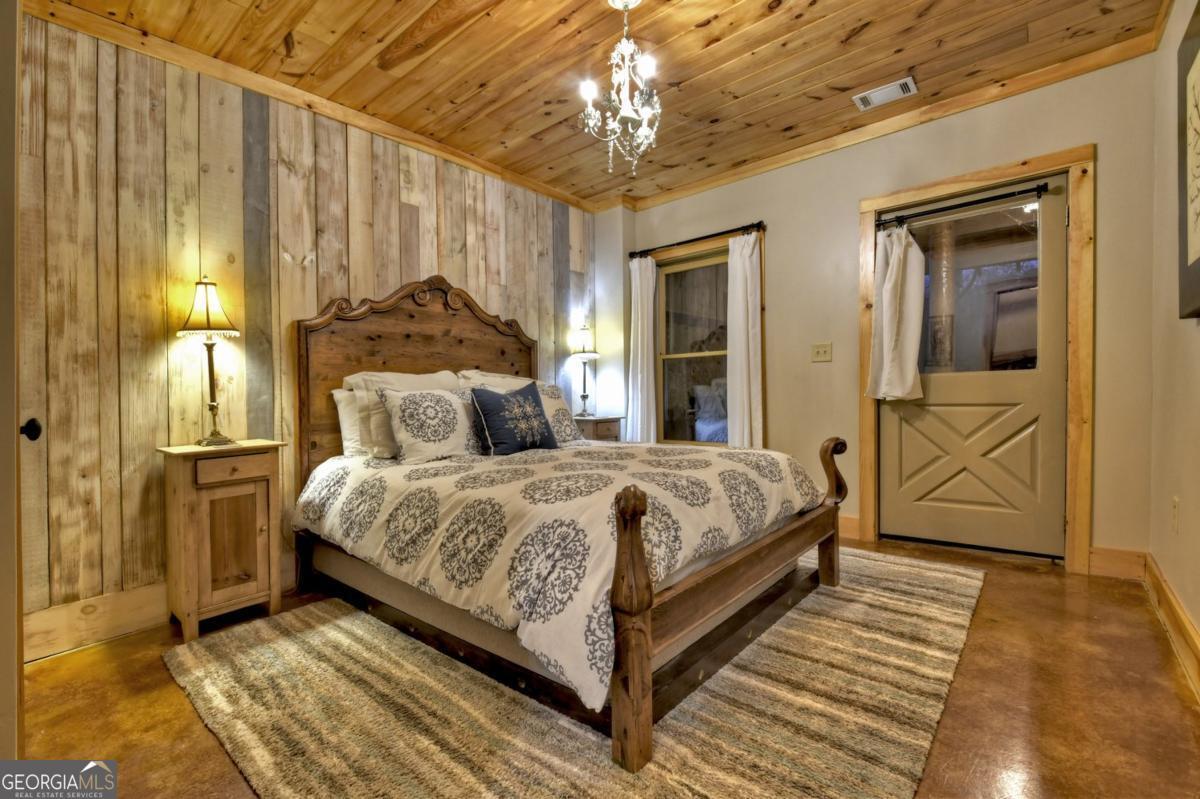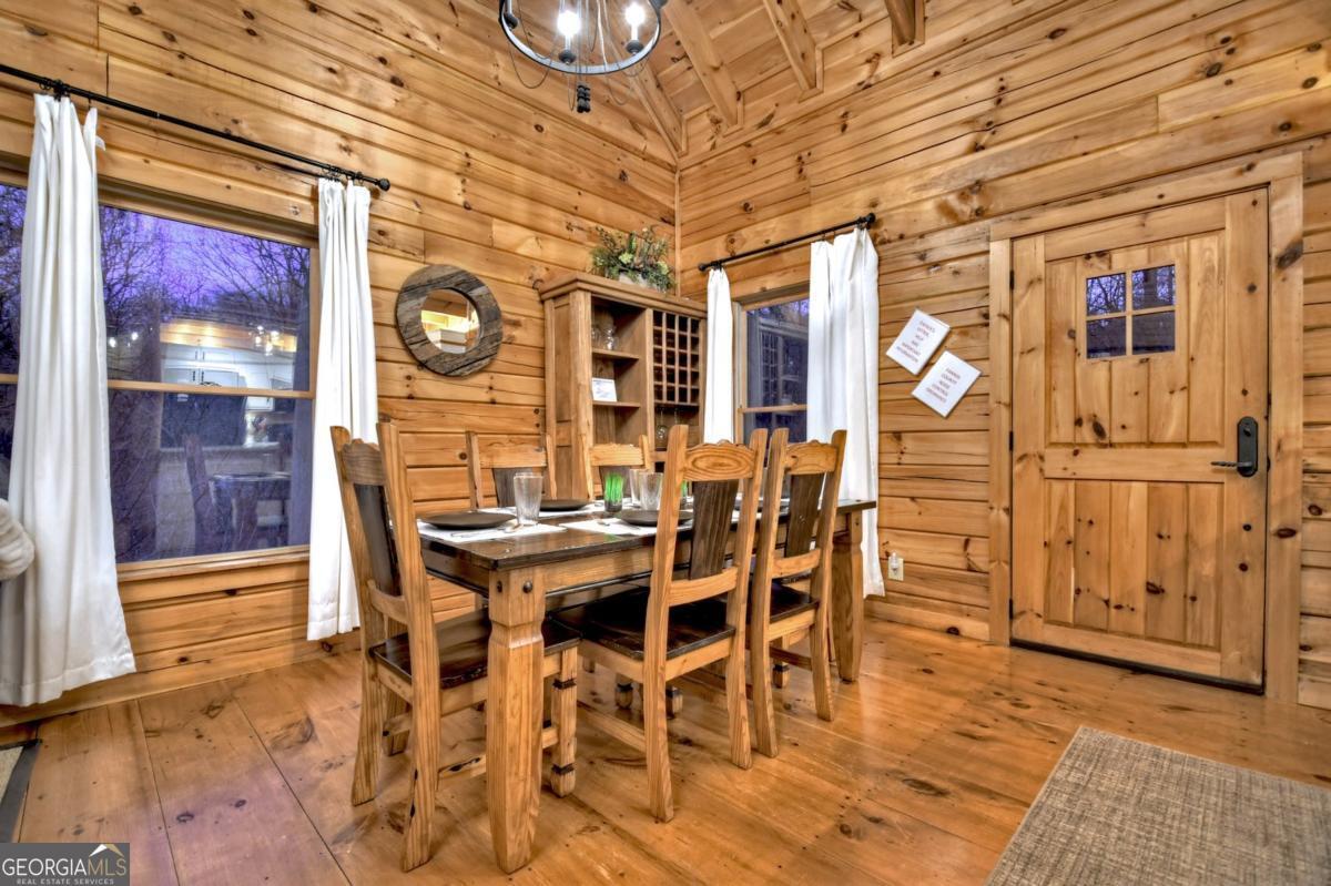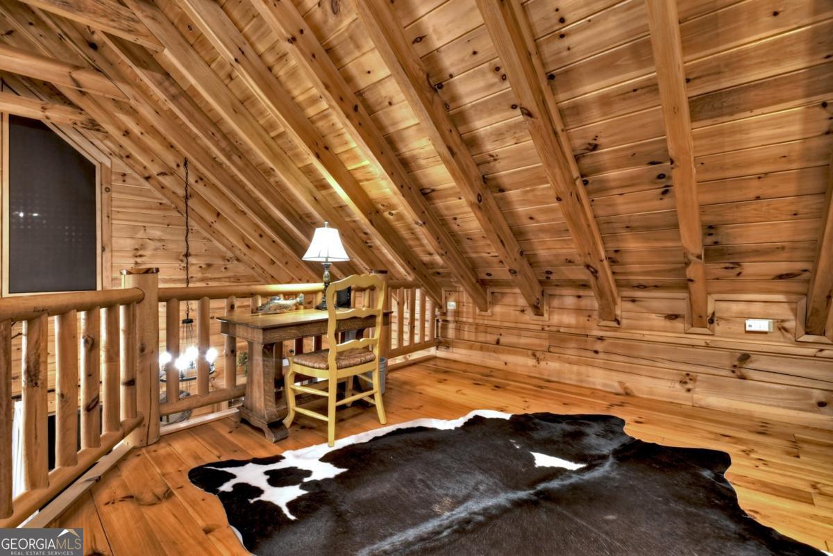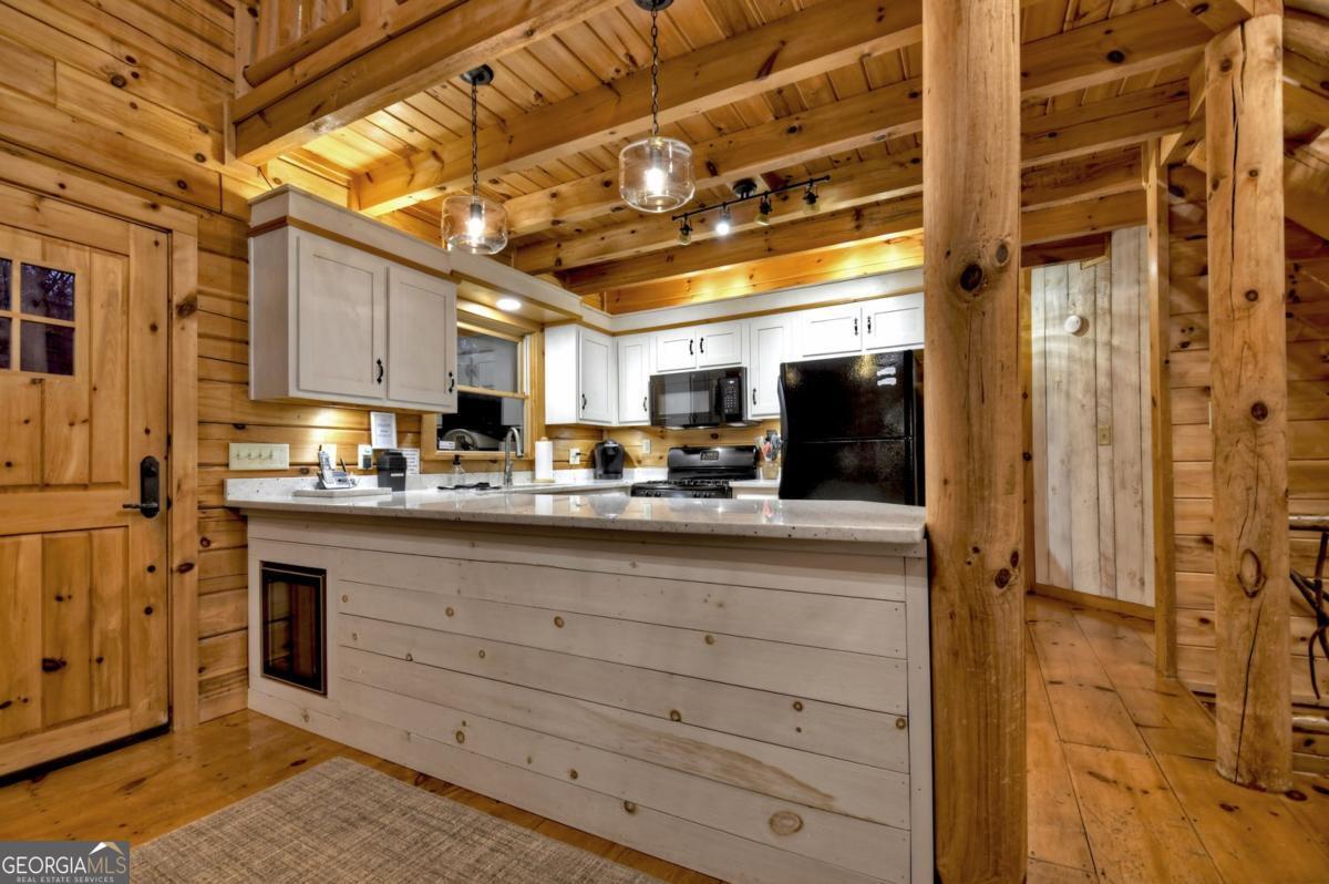 Prepare to be captivated by the CASCADING DECKS, BREATHTAKING VIEWS, and FULL RIVER ACCESS of Fishtrap Overlook! Listen to the SOOTHING SOUNDS of the river, watch bald eagles fish over the historic NATIVE AMERICAN "FISH TRAP" in the river below, and enjoy the charm of the Blue Ridge Scenic Railway passing by seasonally. This Turn-key, fully furnished cabin is a BEAUTIFULLY UPDATED and meticulously maintained REAL LOG CABIN that features custom designer details, a cabin-chic lighting package, vaulted ceilings, wide plank pine floors, and a cozy gas log fireplace. The RENOVATED KITCHEN offers GRANITE COUNTERTOPS and FARMHOUSE CABINETRY, perfect for entertaining. The main-level also includes a bedroom, full bath and linen closet, while the loft bedroom upstairs features custom wood & metal accent walls, ensuite bath, storage & office area backdropped w/ peaceful forest and mountain views. The finished terrace level features a game room with access to the party decks and hot tub area, a third bedroom, full bath, and a laundry room. This cabin has 10 closets for ample storage! Enjoy TWO LEVELS OF COVERED OUTDOOR LIVING SPACES, a NEWLY EXTENDED DECK, and a FIRE PIT AREA with STAIRS LEADING TO a park-like picnic area on the RIVERFRONT. Whether it's TROPHY TROUT FISHING, TUBING, or KAYAKING, this stretch of the TOCCOA RIVER (BELOW LAKE BLUE RIDGE) HAS IT ALL! Best of all, the home is ABOVE THE FLOODPLAIN-NO FLOOD INSURANCE NEEDED-and located JUST MINUTES FROM DOWNTOWN BLUE RIDGE. A ONE-OF-A-KIND RIVERFRONT RETREAT that BLENDS NATURE, HISTORY, AND MOUNTAIN LUXURY!