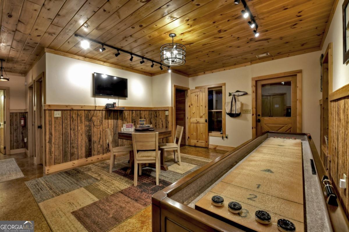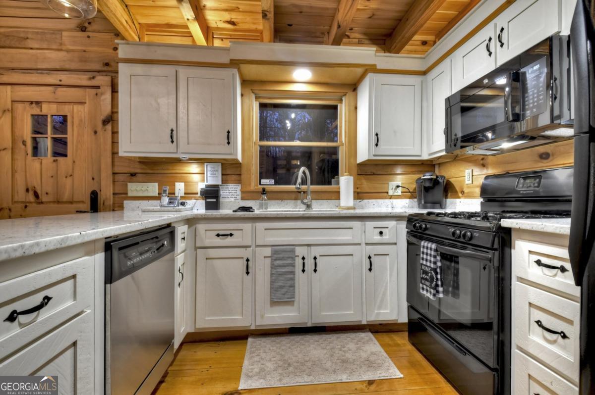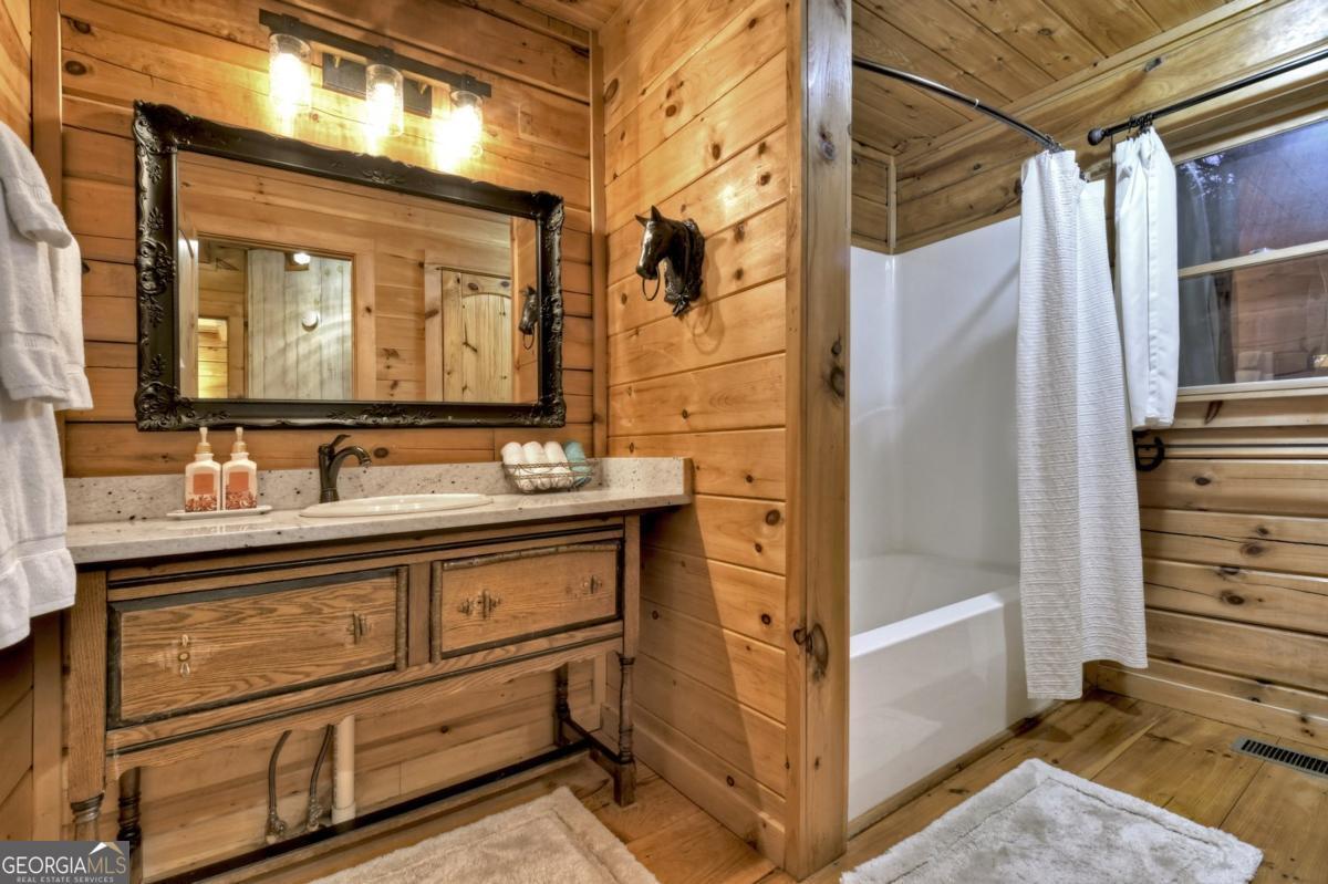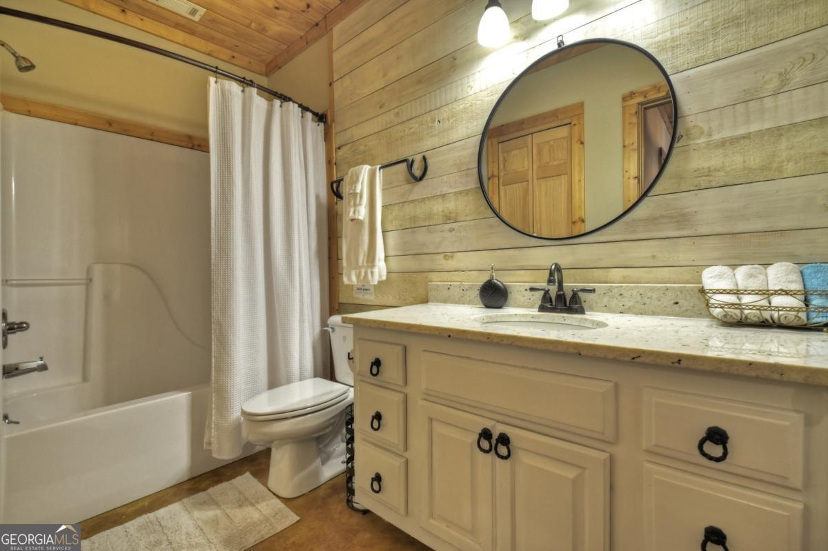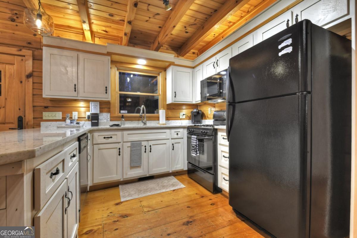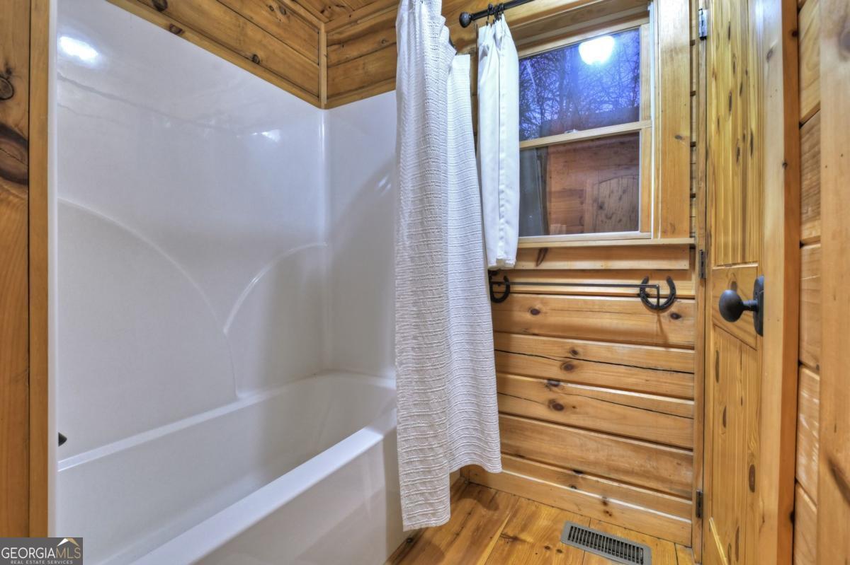Prepare to be captivated by the CASCADING DECKS, BREATHTAKING VIEWS, and FULL RIVER ACCESS of Fishtrap Overlook! Listen to the SOOTHING SOUNDS of the river, watch bald eagles fish over the historic NATIVE AMERICAN "FISH TRAP" in the river below, and enjoy the charm of the Blue Ridge Scenic Railway passing by seasonally. This Turn-key, fully furnished cabin is a BEAUTIFULLY UPDATED and meticulously maintained REAL LOG CABIN that features custom designer details, a cabin-chic lighting package, vaulted ceilings, wide plank pine floors, and a cozy gas log fireplace. The RENOVATED KITCHEN offers GRANITE COUNTERTOPS and FARMHOUSE CABINETRY, perfect for entertaining. The main-level also includes a bedroom, full bath and linen closet, while the loft bedroom upstairs features custom wood & metal accent walls, ensuite bath, storage & office area backdropped w/ peaceful forest and mountain views. The finished terrace level features a game room with access to the party decks and hot tub area, a third bedroom, full bath, and a laundry room. This cabin has 10 closets for ample storage! Enjoy TWO LEVELS OF COVERED OUTDOOR LIVING SPACES, a NEWLY EXTENDED DECK, and a FIRE PIT AREA with STAIRS LEADING TO a park-like picnic area on the RIVERFRONT. Whether it's TROPHY TROUT FISHING, TUBING, or KAYAKING, this stretch of the TOCCOA RIVER (BELOW LAKE BLUE RIDGE) HAS IT ALL! Best of all, the home is ABOVE THE FLOODPLAIN-NO FLOOD INSURANCE NEEDED-and located JUST MINUTES FROM DOWNTOWN BLUE RIDGE. A ONE-OF-A-KIND RIVERFRONT RETREAT that BLENDS NATURE, HISTORY, AND MOUNTAIN LUXURY!