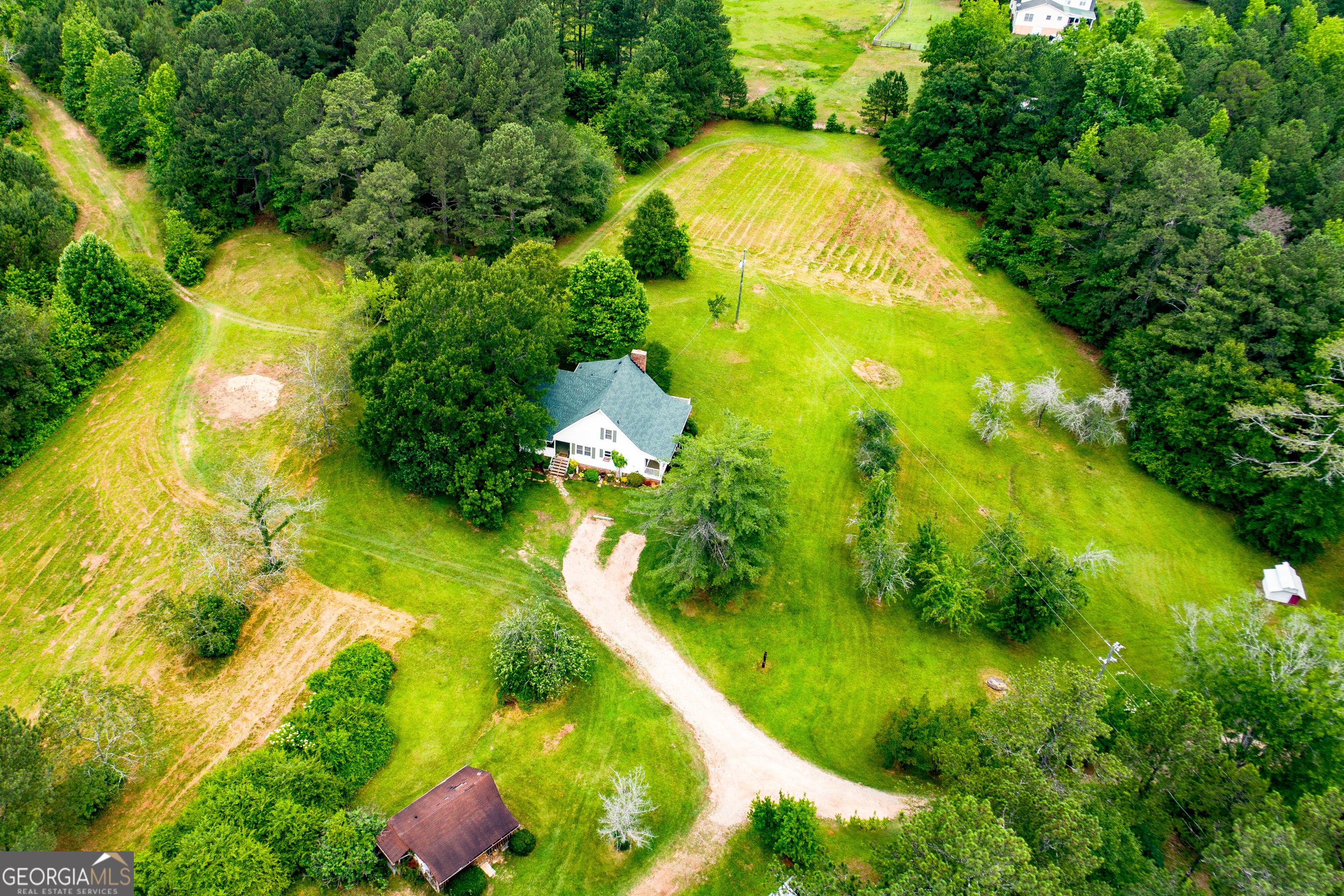 Discover your own piece of rural paradise with this expansive 14.33-acre property, perfect for agricultural pursuits or creating the horse farm of your dreams. The land is mostly flat and level, making it ideal for a variety of farming or equestrian activities. Included on the property is a 2-story farmhouse, sold as-is, that offers the opportunity for a restoration project. Live comfortably in the farmhouse while you design and build your forever home on this beautiful land. The classic front porch welcomes you home with its timeless appeal. Inside you will discover the family room featuring a cozy fireplace, master on the main, spacious kitchen, and 3 additional bedrooms with the 2nd bath all upstairs. This home is a canvas waiting for your personal touch. The property also has additional storage or potential workspace in the outbuilding. Open and cleared pasture area, offering endless possibilities for agriculture, recreation, or equestrian activities. Ideally situated just 2 miles from shopping, dining, and I-20, this property ensures an easy and convenient commute while providing a peaceful, rural lifestyle. Enjoy the best of both worlds-secluded, country living with the convenience of nearby local shopping, dining, and interstate access. With its prime location and expansive acreage, it's an opportunity you don't want to miss. Motivated seller says bring all reasonable offers! Schedule a tour today and envision the possibilities of making this property your forever home!