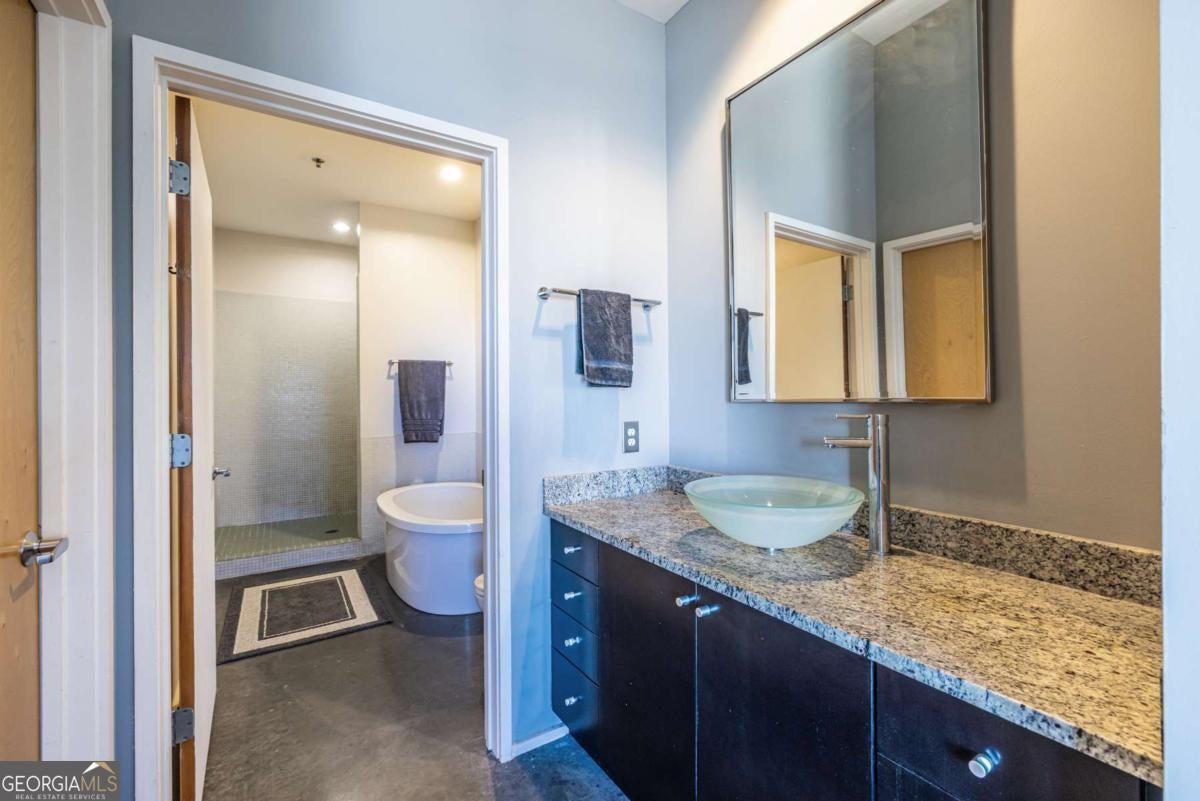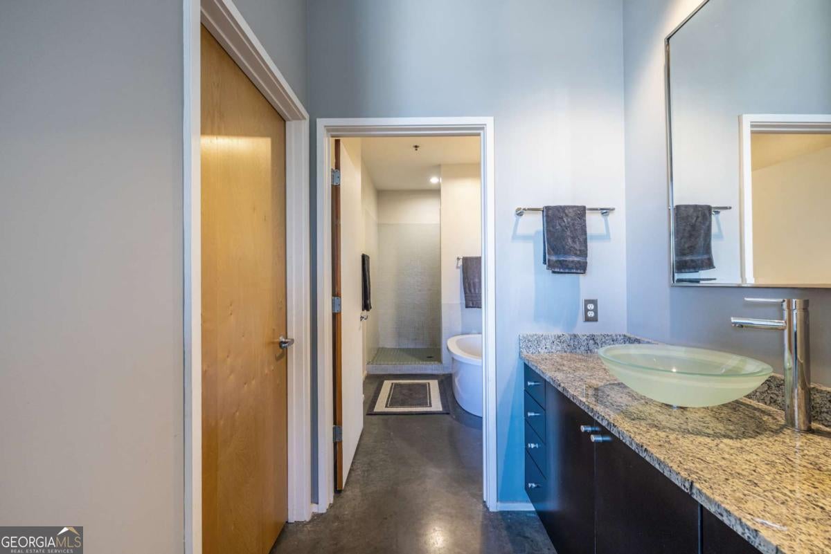 It's not too late to snag this incredible intown opportunity! Experience the best of modern loft living in this stylish 2-bedroom, 2-bath condo, perfectly positioned in one of Atlanta's most vibrant and walkable communities. Soaring 11' ceilings, polished concrete floors, and dramatic floor-to-ceiling windows flood the space with natural light, creating a bright and airy atmosphere throughout. The open-concept layout is ideal for entertaining, featuring a sleek kitchen with granite countertops, stainless steel appliances, and a generous breakfast bar overlooking the spacious living area. Step outside to your private, covered balcony with gorgeous views of the resort-style saltwater pools, lap pool, cabanas, and waterfall massage, your own vacation-style escape in the heart of the city. The oversized primary suite is a true retreat with a spa-inspired bathroom, freestanding Japanese soaking tub, walk-in shower, and custom walk-in closet. The second bedroom is generously sized, with its own large closet and access to a separate full bath. Recent upgrades include a newer HVAC system (just 1 year old!). Additional features include two covered, assigned parking spaces near the entrance, mailroom, and elevator-plus a deeded 8x10 storage unit. The gated community offers incredible amenities: multiple pools, fitness center, dog park, media lounge, rooftop deck, bike storage, and more. Unbeatable location-just steps from Pullman Yards and close to MARTA, the BeltLine, Kirkwood Village, Edgewood Shopping Center, Candler Park, Inman Park, and L5P. This home is move-in ready and priced with flexibility in mind. Don't miss your chance, schedule your showing today!