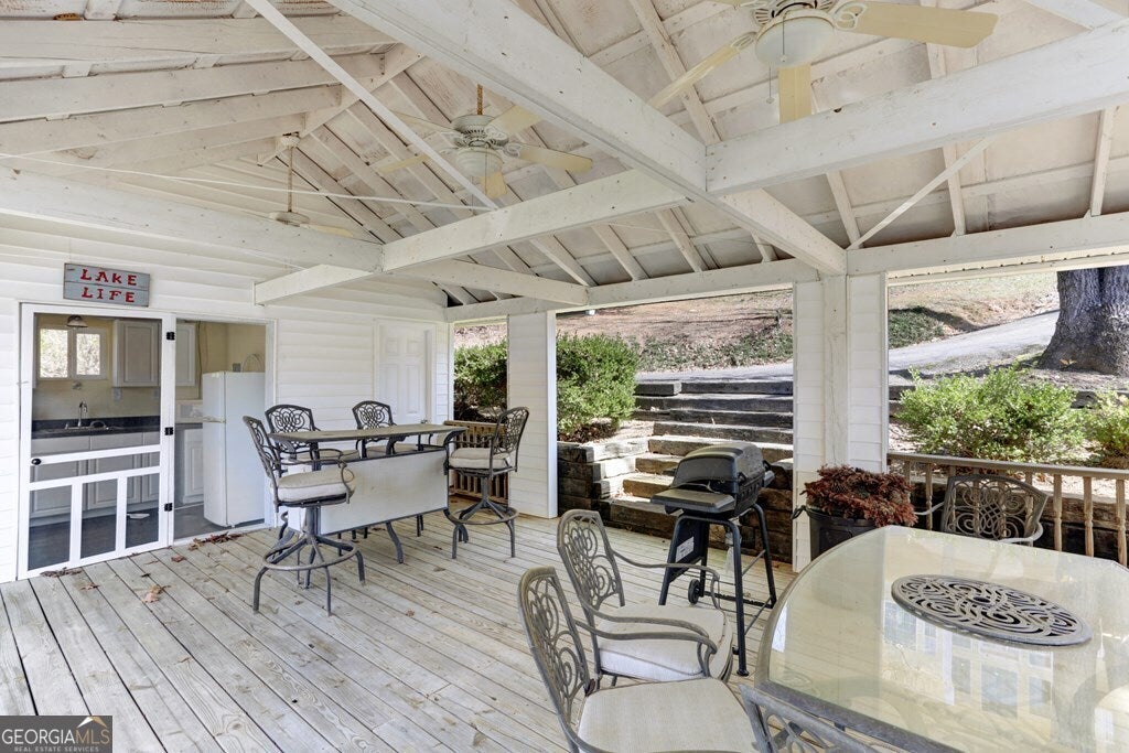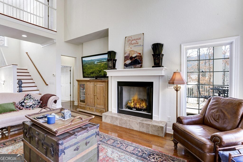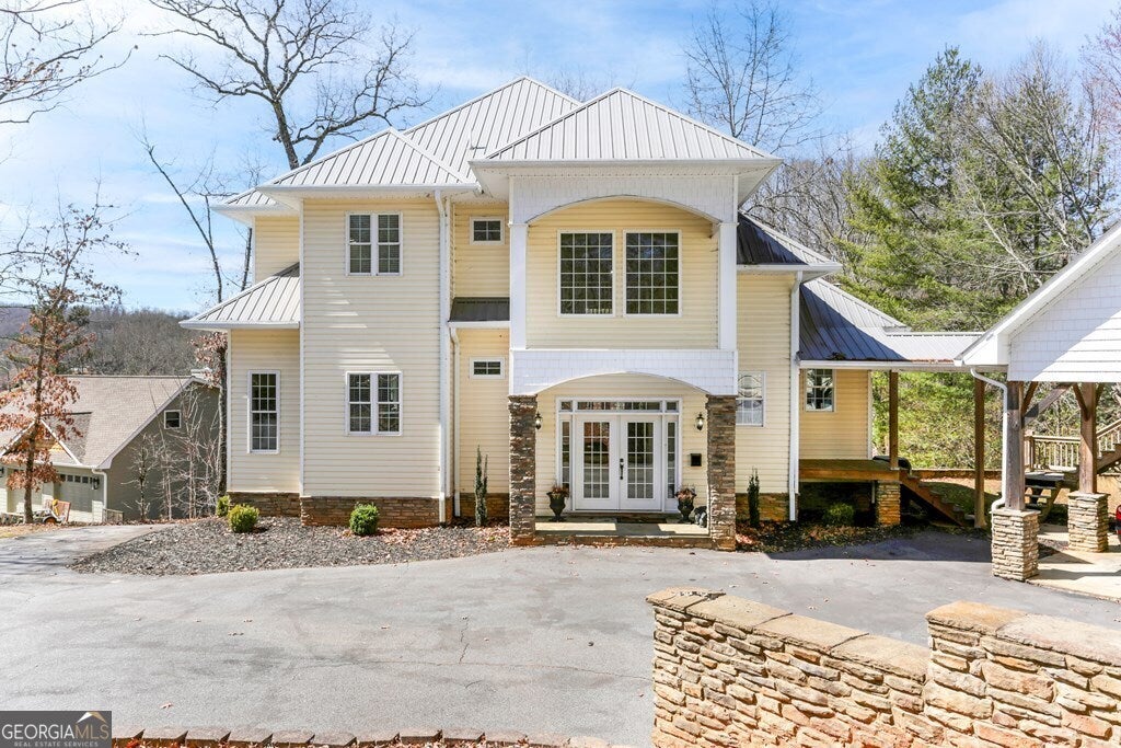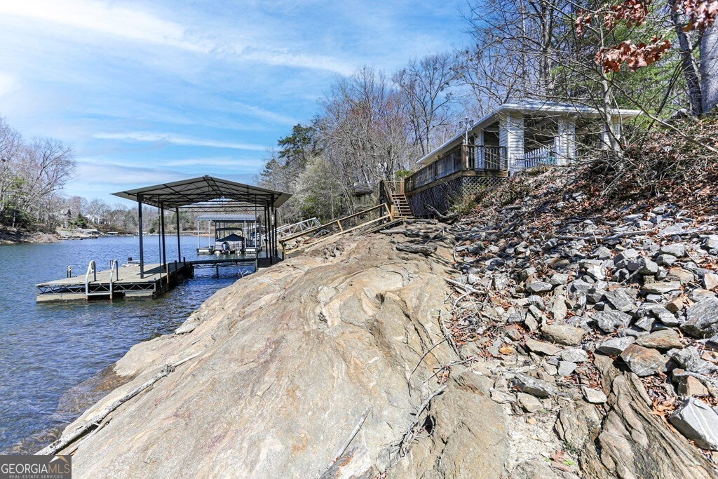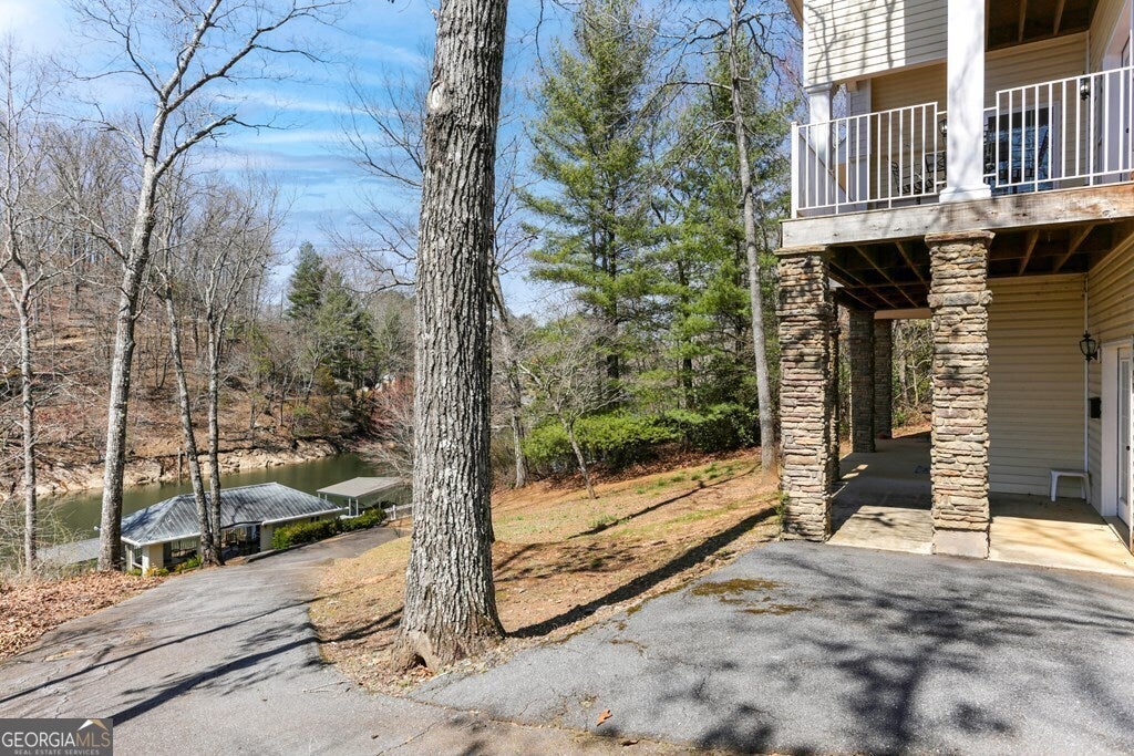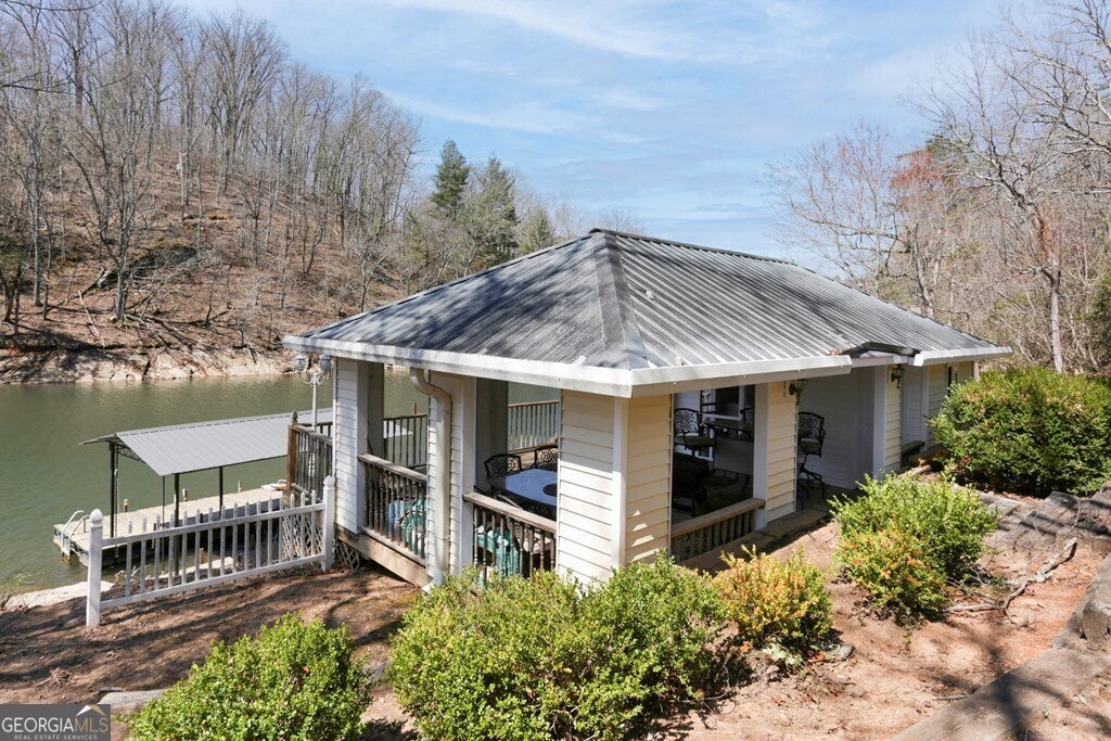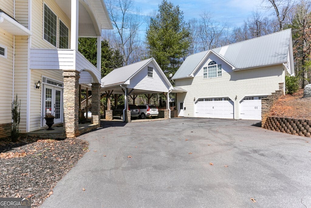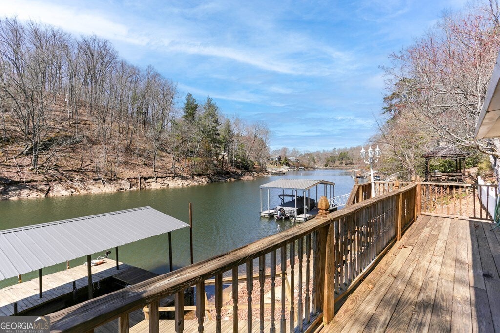 MOTIVATED SELLER ON LAKE CHATUGE!! Embrace the essence of lakeside living with this exceptional North Carolina mountain retreat, perfectly positioned along the serene shores of Lake Chatuge. This captivating 3-bedroom home is designed to maximize your enjoyment of the natural beauty that surrounds it. The open floor plan & great room with its cathedral ceiling and inviting gas log fireplace set the stage for comfortable living & entertaining. Stainless steel appliances in the kitchen pair with functionality & style, while the spacious back deck offers a tranquil vantage point to admire the lake. Accommodations include an indulgent master bedroom complete with a sitting area, and a secondary master suite on the upper level, each offering private havens within the home. The lower level extends your living space with an additional bedroom and bathroom, along with its own living room and second kitchen, perfect for guests or as an in-law suite. Outside, the property excels with a lakeside pavilion including a kitchen for outdoor gatherings, and a covered single slip boat dock for leisurely days on the water. Parking and storage are ample with a 2-car carport and a HUGE 3-bay garage featuring a 1 bedroom/1 bathroom apartment above, offering extra space for visitors. Located within minutes from the charming downtown areas of Hayesville, NC, and Hiawassee, GA, this home delivers both seclusion and convenience for the ultimate retreat. This enchanting property is more than just a home-it's an experience that promises a lifestyle of peaceful luxury and lakeside adventure.