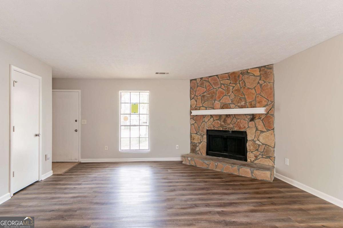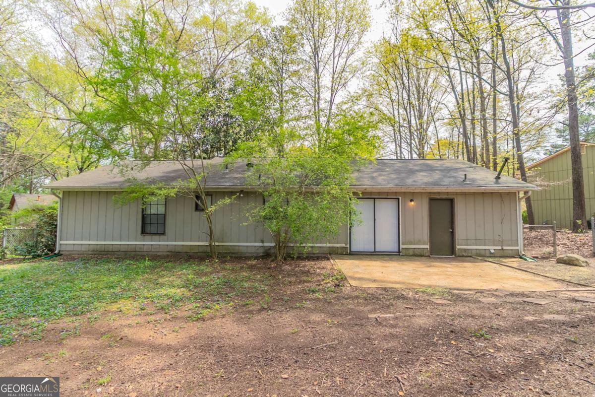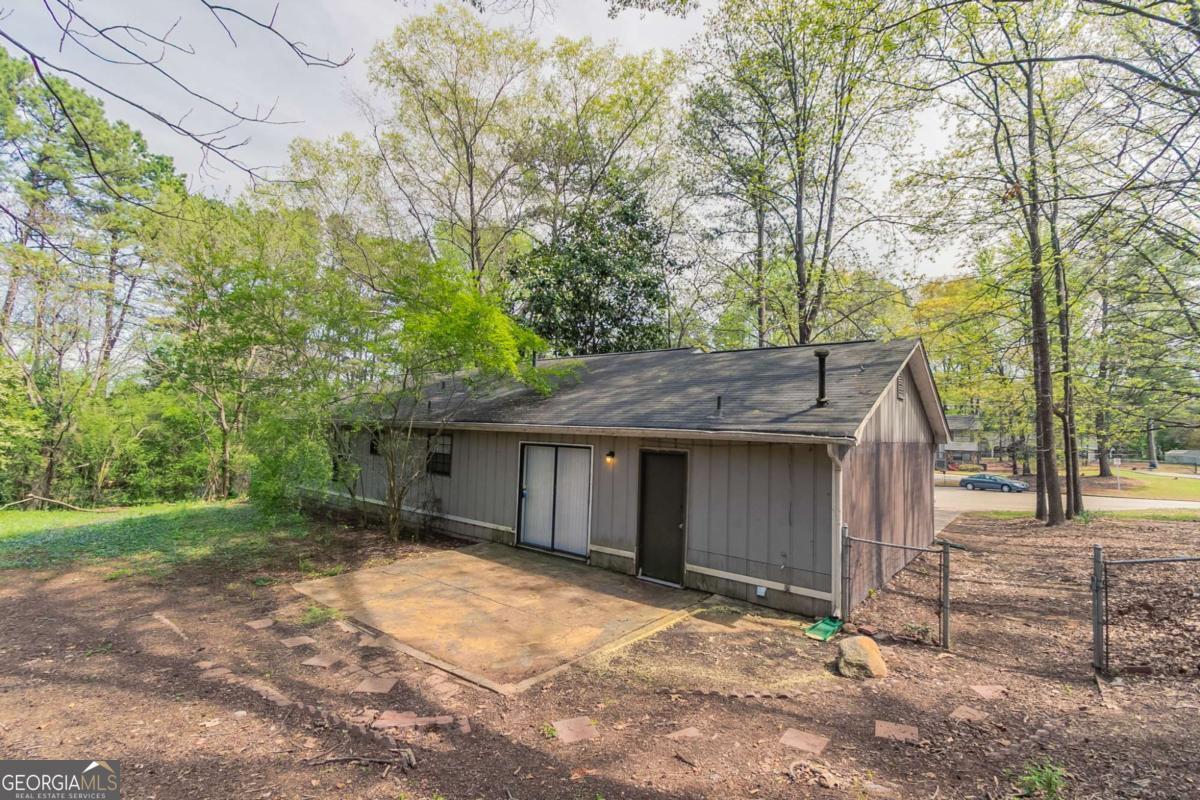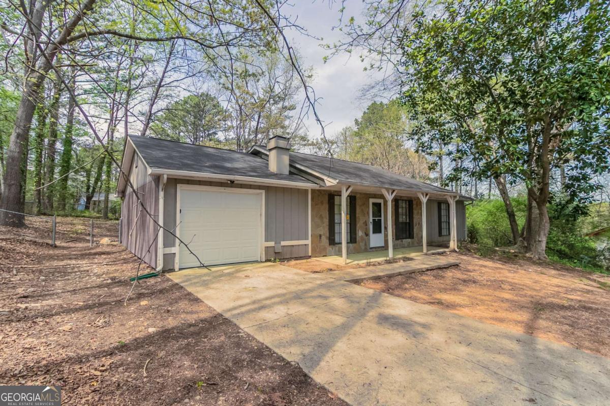 3-bedroom, 2-bathroom home in Lithonia cul-de-sac! This charming home features a long driveway leading to a 1-car garage and a fenced backyard with a covered concrete patioCoperfect for outdoor enjoyment. Step inside to a welcoming living room with a cozy fireplace, flowing into a kitchen with white cabinets, appliances, and a sliding glass door opening to the backyard. Kitchen is missing flooring. Down the hall, youCOll find two secondary bedrooms and a full bathroom with a single vanity and a shower/tub combo. The primary suite offers its own ensuite bathroom with a single vanity. Don't miss this well-maintained home ready for its next owner!
