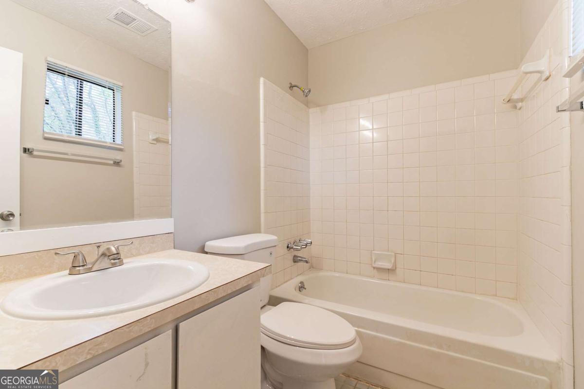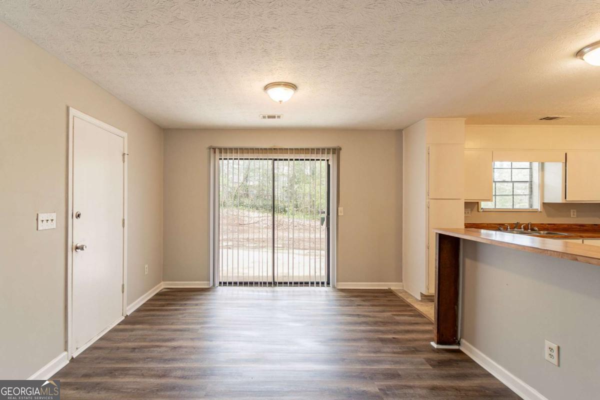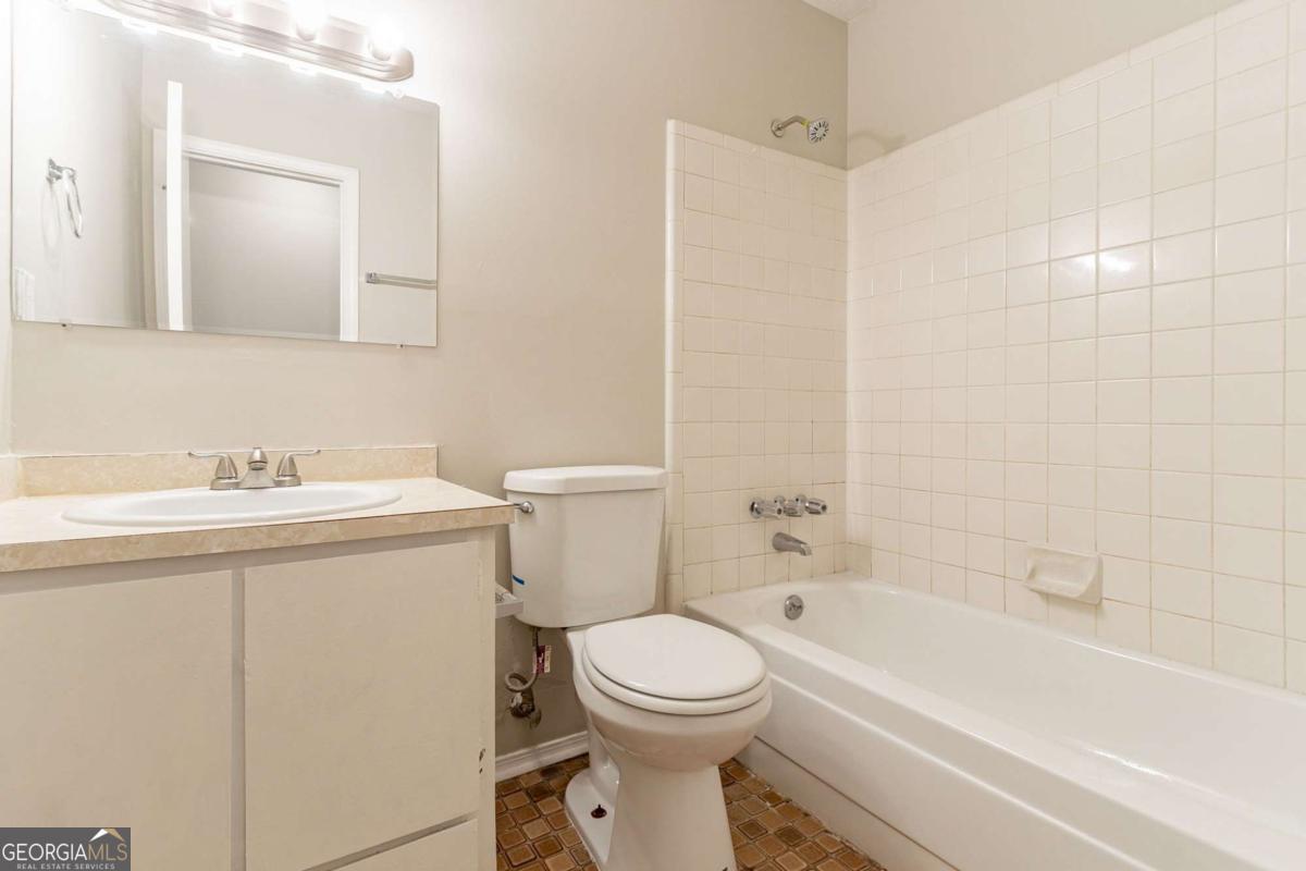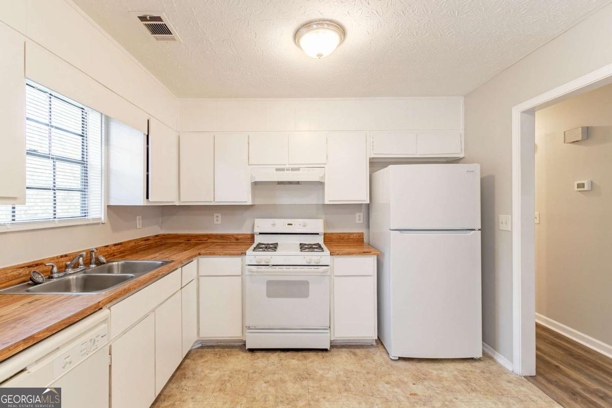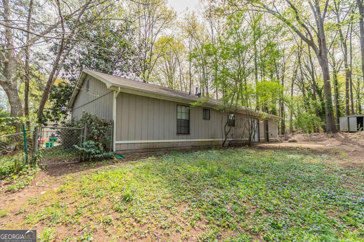 3-bedroom, 2-bathroom home in Lithonia cul-de-sac! This charming home features a long driveway leading to a 1-car garage and a fenced backyard with a covered concrete patioCoperfect for outdoor enjoyment. Step inside to a welcoming living room with a cozy fireplace, flowing into a kitchen with white cabinets, appliances, and a sliding glass door opening to the backyard. Kitchen is missing flooring. Down the hall, youCOll find two secondary bedrooms and a full bathroom with a single vanity and a shower/tub combo. The primary suite offers its own ensuite bathroom with a single vanity. Don't miss this well-maintained home ready for its next owner!