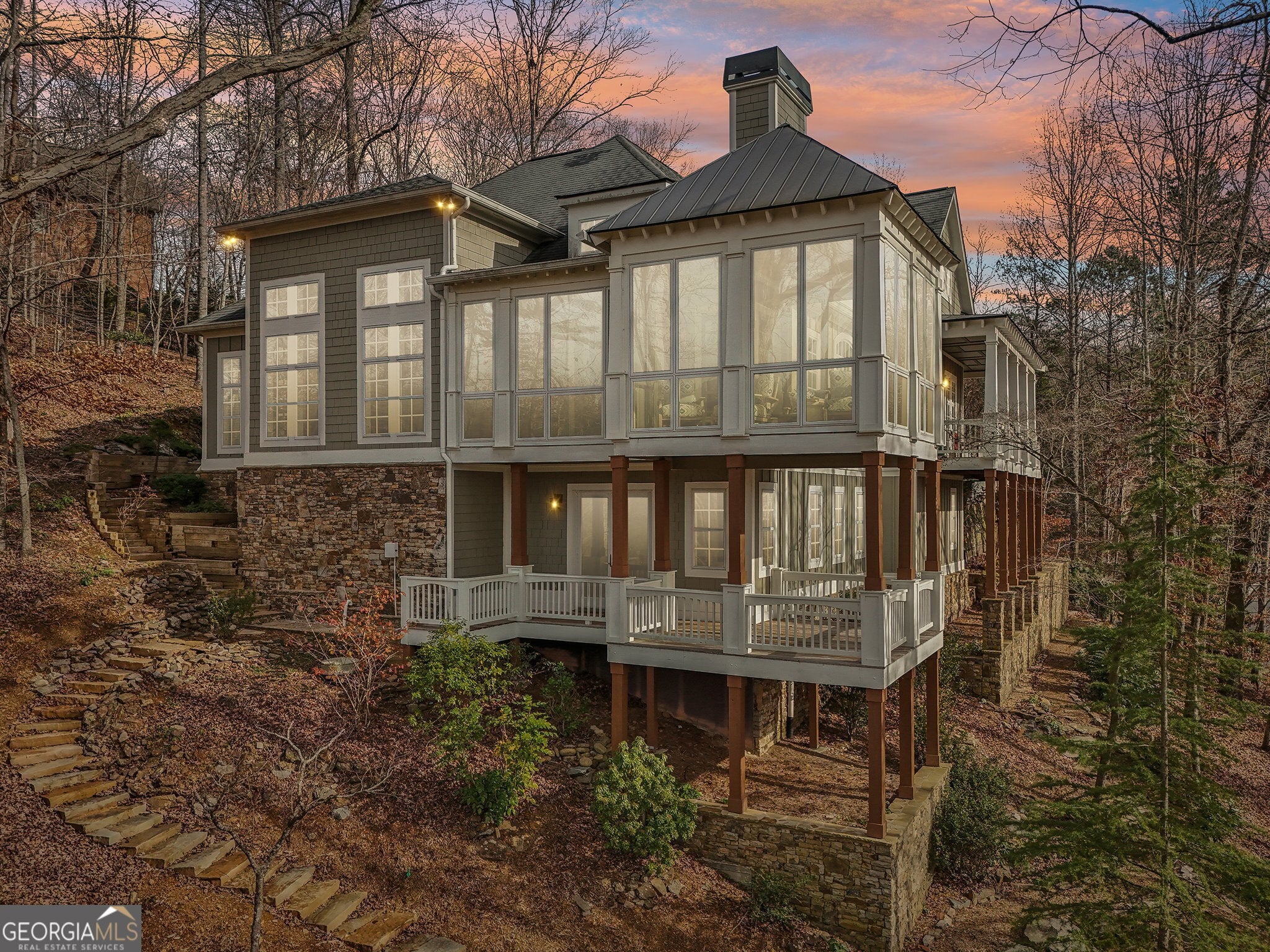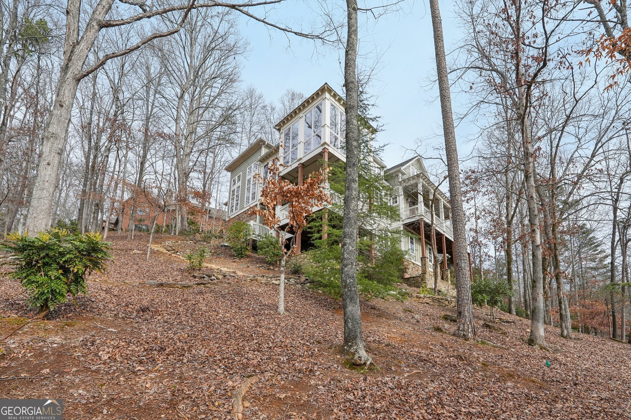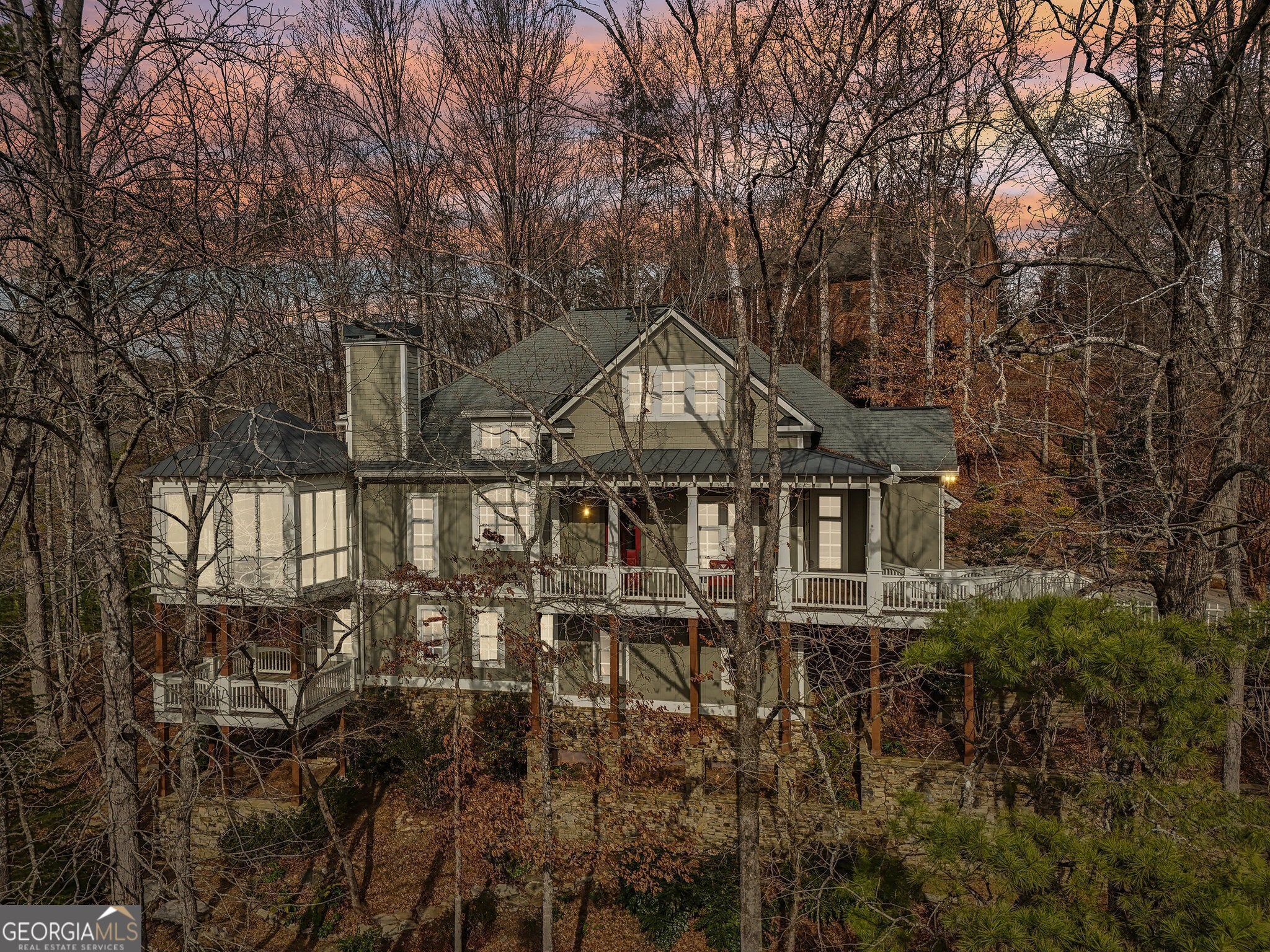 Welcome to 1259 Birch River Drive, a unique masterpiece nestled on a prime location within the prestigious Achasta Golf Community in Dahlonega, GA. This artist's haven is a one-of-a-kind custom-built home; it's a visionary blend of inspired design and masterful craftsmanship, offering an exquisite living experience like no other. Step into the main level, where a stunning open concept space with warm woods and custom-made hardware greets you. The spacious chef's kitchen is a culinary dream, featuring high-end appliances, a large walk-in pantry, and a grand island that invites gatherings. Enjoy the tranquility of nature from the multiple decks and the sunroom, which boasts floor-to-ceiling windows overlooking the Achasta golf course and the Chestatee River. The primary suite on the main level provides a serene retreat with a seating area for nature gazing and a spa-like bathroom. Descend to the lower level, where a second family room with a stone fireplace opens to its private deck, while the separate office and library/media room offer spaces for work and relaxation. Perfect for hosting guests in one of the three bedrooms, complete with a private entrance and a beautiful stone path. With beautiful stone paths and landscapes that tell a story of ancient history and meticulous care, the property's surroundings enhance its charm and timeless elegance. Just minutes from the clubhouse and community amenities, 1259 Birch River Drive is a haven for those seeking an artistically inspired lifestyle amidst nature and golf course living. Whether it's the breathtaking natural views or the luxurious interior spaces, every element of this home is designed to inspire and rejuvenate. Situated in the award-winning, gated Achasta community, this home offers access to world-class amenities, including the Jack Nicklaus-designed golf course, clubhouse, pro shop, restaurant, swimming pool, pickleball and tennis courts, hiking trails, and the Chestatee River for fishing and kayaking. Conveniently located just minutes from the charming Dahlonega Square, North Georgia wineries, and premium outlets, and only an hour from Atlanta. Don't miss your GOLDEN opportunity to own this exceptional home where luxury, comfort, and nature converge. Contact the listing agent for more information or to schedule a private showing. Disclaimer: All information is deemed reliable but not guaranteed and should be independently verified. Photos & lot lines may be virtually staged to assist buyers in visualizing the property's potential.