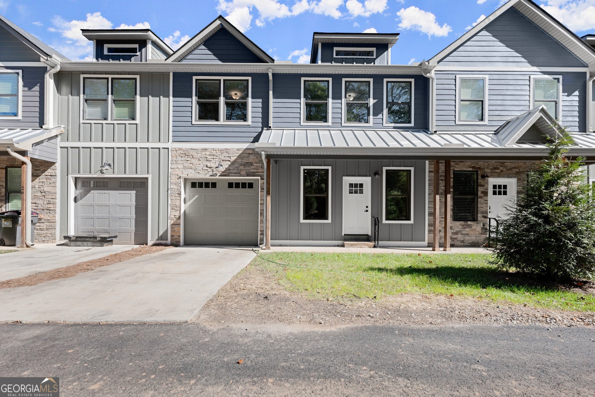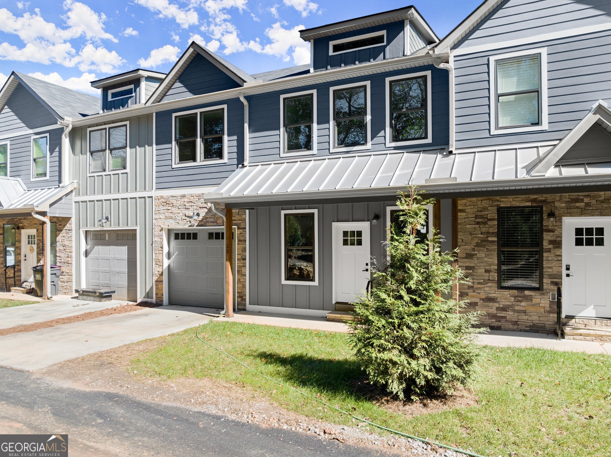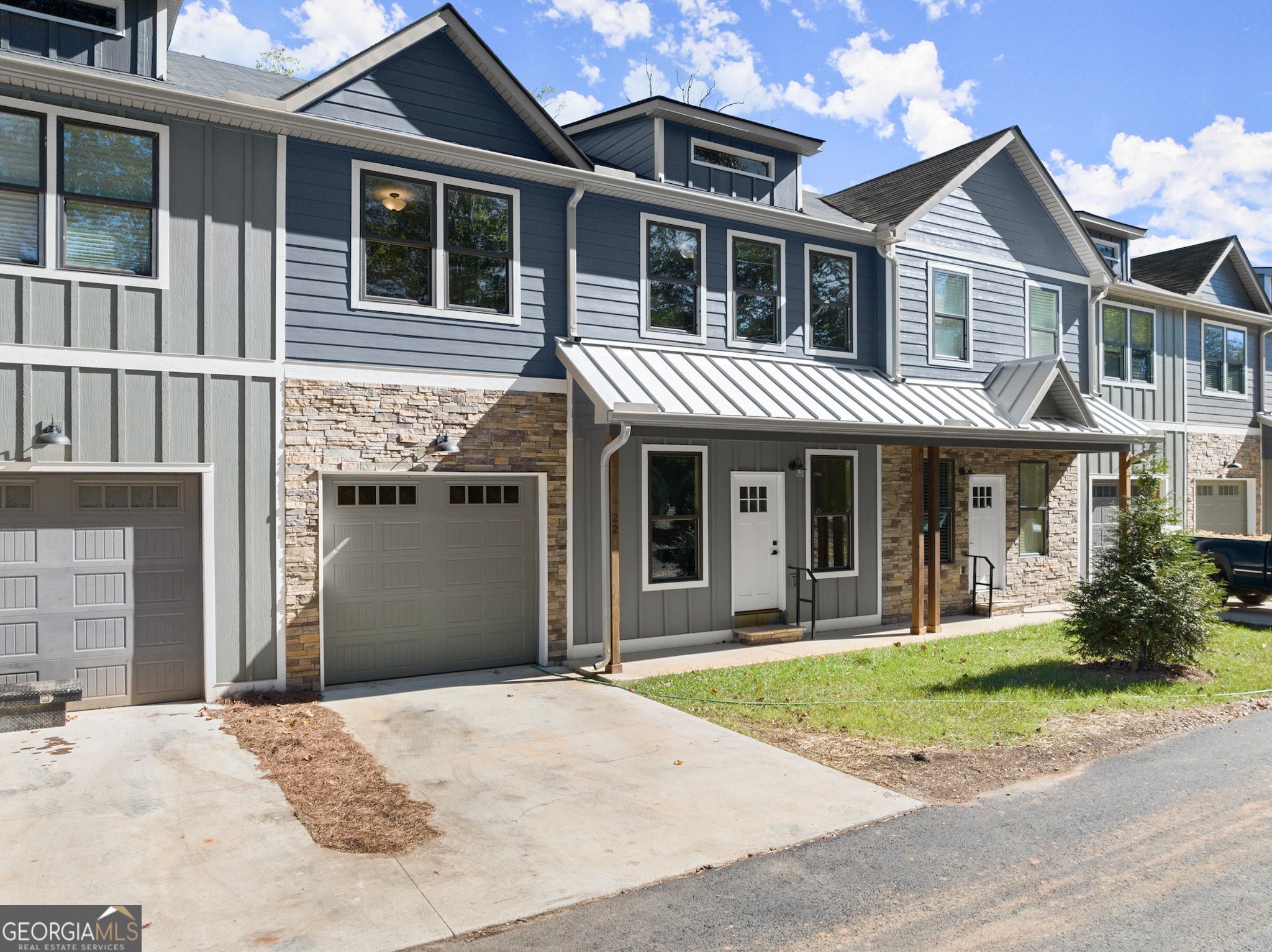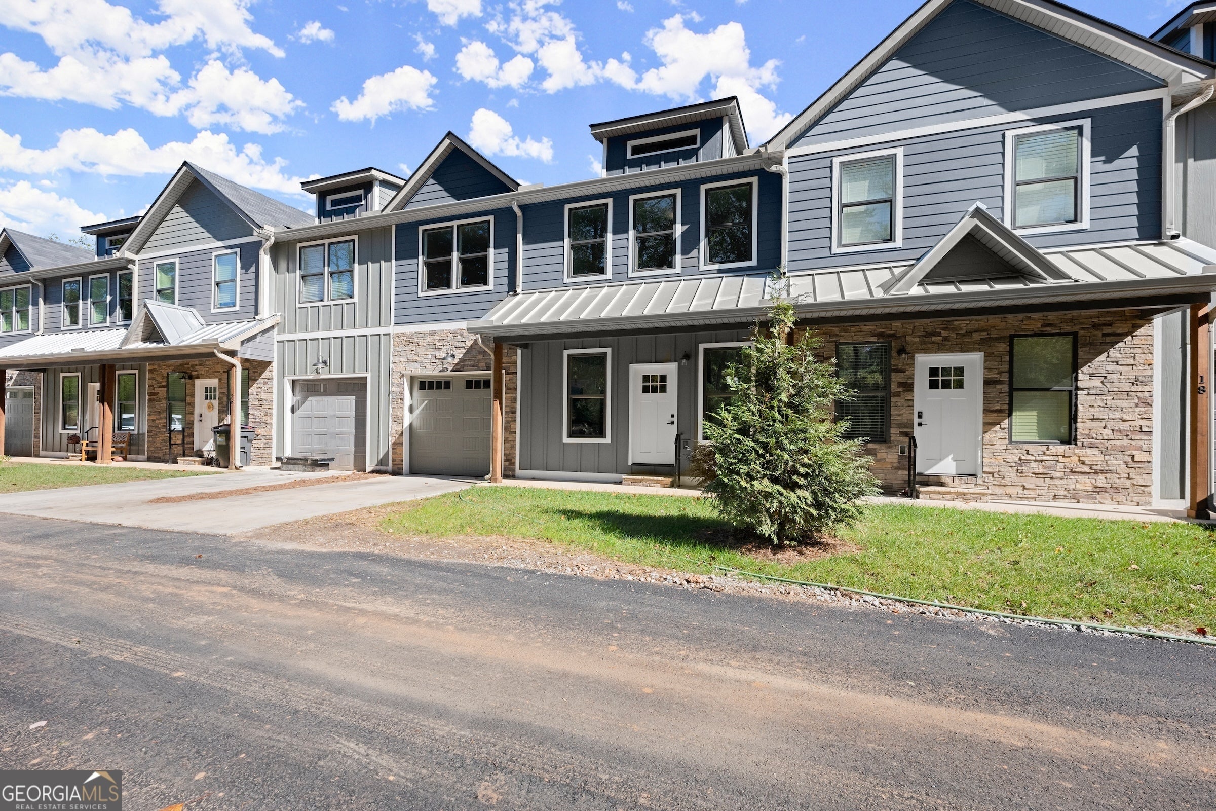 Discover the charm of Stekoa Village, nestled by the creek, where Building 2 boasts a nearly-new townhome. This exquisite property offers convenient walkability to downtown Clayton, combined with low-maintenance living and high-quality craftsmanship. The open floor plan is flooded with natural light, and the main level is designed for seamless living with ample space for guests. Whether you're looking for a full-time residence, a part-time retreat, or an investment property for short-term rentals, this townhome fits the bill. Key features include a primary bedroom on the main level, two garages (one on the main level and one at the basement/rear entry), a tankless hot water heater, and natural gas services that fuel a gas stove and fireplace. The home is adorned with high-end fixtures and finishes throughout. Additionally, the basement can be customized to add a fifth bedroom, bathroom, and kitchenette, ideal for in-laws, guests, or renters. A spacious, finished flex space/loft offers versatility for an office, exercise room, or more. Amenities include a fenced dog park, a bridge over Stekoa Creek that connects to city trails and parks, and a common area with seating and a fire pit overlooking the creek. The location is superb, with walking access to the hospital, gym, restaurants, and shopping-all within Clayton city limits.