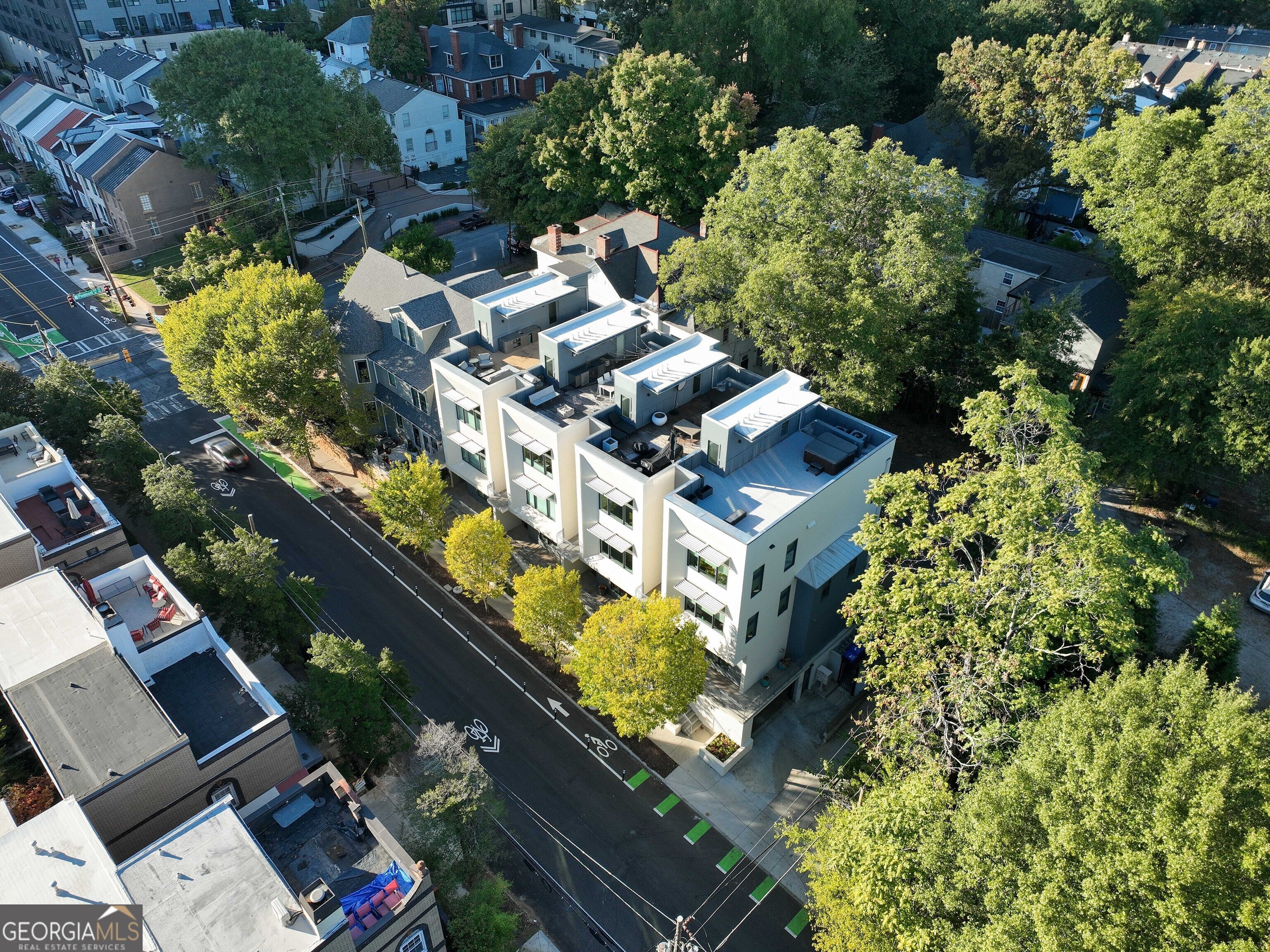 A Statement of Modern Luxury in the Heart of Midtown Step into unparalleled sophistication at 5th & Piedmont, an exclusive collection of six luxury townhomes designed by the award-nominated Smith Dalia Architects. Situated in vibrant Midtown Atlanta and a picturesque block, this modern four-level residence offers 3 bedrooms, 3.5 bathrooms, and a rooftop deck with skyline views that define upscale city living. The thoughtfully designed interior showcases views to the top floor from the open stairwell, a custom designer kitchen, crafted for both function and style, featuring an oversized island Wolf dual-fuel range, Sub-Zero refrigerator, and integrated Miele appliances, including a combo-steam oven and espresso machine. With storage systems and sleek cabinetry, this kitchen is a chef's dream. Wide-plank brand new hardwoods create warmth and sophistication. The second level is reserved exclusively for the owner's suite, offering a private oasis complete with a covered coffee balcony providing city views. The walk-through custom closet is thoughtfully designed, while the en suite bath boasts a freestanding soaking tub, marble double vanities, and an expansive frameless glass shower. The third level houses two additional sunlit bedrooms, each with its own en suite bath featuring frameless glass showers, floating vanities, and ample closet space. One bedroom has been beautifully transformed into a bespoke CUSTOM CLOSET with backlit displays, offering a refined dressing experience. The jewel of this home is the 650 sq ft rooftop deck, designed for unforgettable views. Soak in your private hot tub while enjoying panoramic views of Midtown's skyline, whether by day or night. An integrated home automation system, including remote-controlled blinds, music with in-ceiling speakers, a security system with remote access, and automated locks. Two assigned, access-controlled covered parking spaces with additional storage just a few steps from your door ensure convenience and security. Piedmont Park, The Beltline, and Midtown's best dining and shopping, this location offers a walkable lifestyle at its finest right outside the door. Enjoy proximity Buckhead, the Airport, Downtown and more Experience Midtown living at its finest-schedule your private showing today!