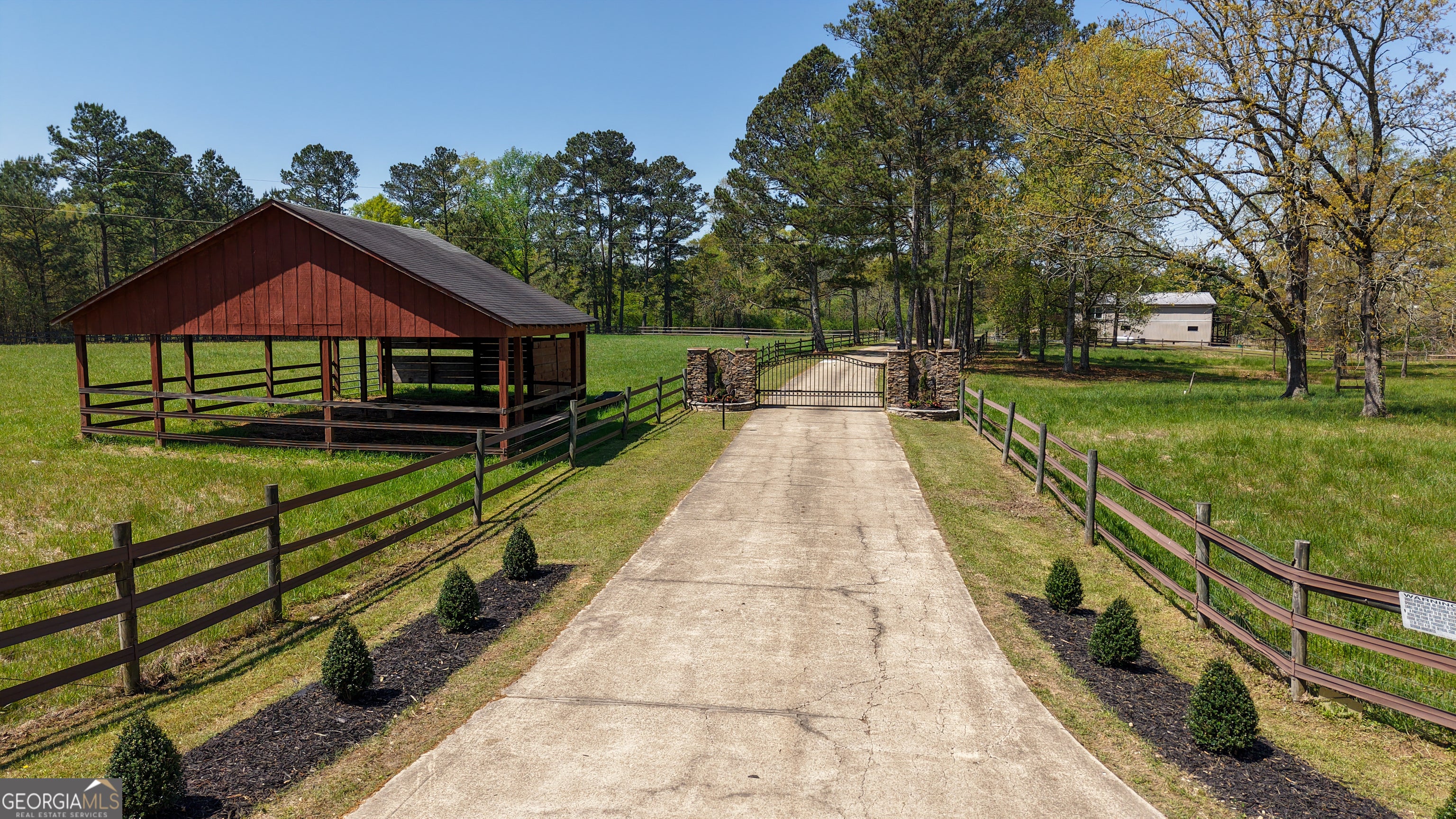 Oso Farm offers a rare opportunity to own a gated, one-of-a-kind dream equestrian estate on +/- 73 rolling acres in the heart of Rome, Georgia! This outstanding property is worthy of any equine discipline, cattle ranching, or just your own private agro oasis to get away from it all! With room to board up to 24 horses, this property has everything needed for the comfort of horses and their riders! Custom-designed +/- 5,000 sq ft rustic MAIN HOME includes four bedrooms, three bathrooms, two half bathrooms, two fireplaces, a hidden safe room and swimming pool. Main home features its own private gate entry, separate garage, kennel, two-stall owner's barn, and +/- 3 acre pond. With multiple porches and a deck, you'll enjoy panoramic views from sundown to sunset! Home has backup generator. DUPLEX GUEST HOUSE is +/- 2,000 sq ft and each side features one bedroom, one bathroom, living area, and kitchen. There is also an attached half bath/laundry only accessible from the outside. CARETAKER'S HOME is +/- 2,000 sq ft with front and back decks and features two bedrooms, one bathroom, kitchen, living room and laundry/utility room. Beneath is a 5-stall stable! Massive 120' x 150' METAL STABLE and COVERED RIDING AREA with 17 matted stalls, two hot/cold wash racks, feed room, and tack room with lockers. Your farrier can drive right though! Approximate 40' x 60' EQUIPMENT BARN with 12' x 12' sliding door access, two interior workshop areas and loft storage. METAL STORAGE BUILDING with two lean-to areas for equipment and a 30' x 40' enclosed area with two roll-up doors for hay/feed or trailer/RV. 12 PADDOCKS/TURN-OUT AREAS, some with run-in shelters. Larger paddocks have capability of cross fencing. This property is conveniently situated less than 12 miles from historic, Victorian-era downtown Rome, and only five miles from the Richard B. Russell Regional Airport. Home to Berry College, Rome has a passionate arts community and a great variety of outdoor recreation opportunities. Some properties are meant to be experienced, and this estate has so many special details that it is impossible to describe them all. Ride into Oso Farm and live your dream! *Note the virtual tour link in the listing.*