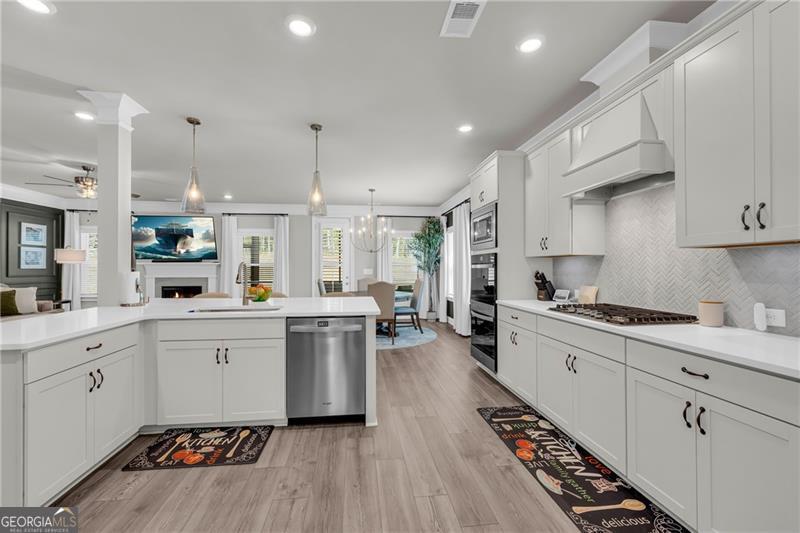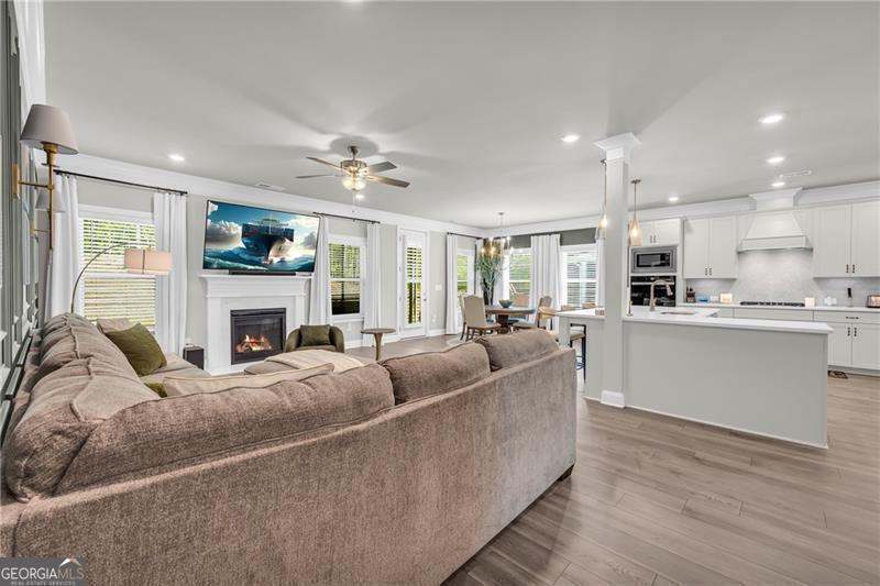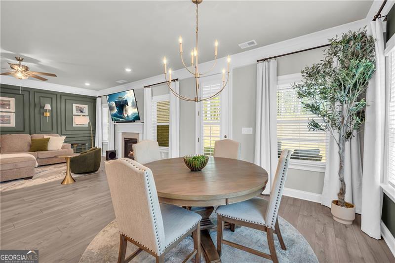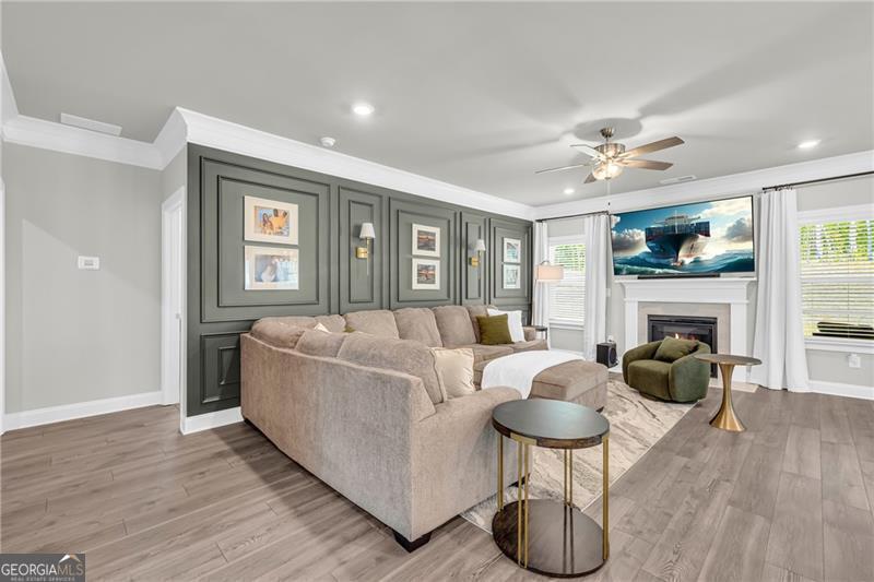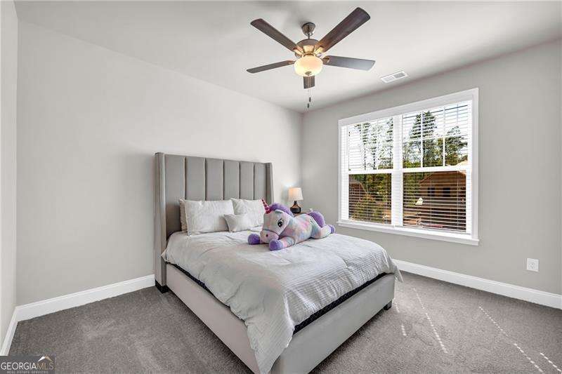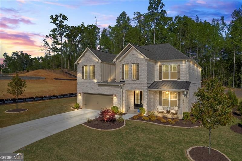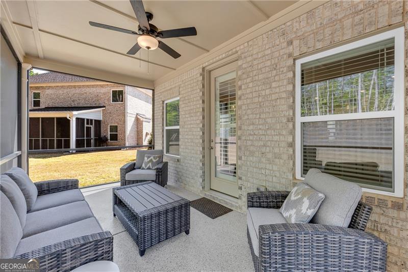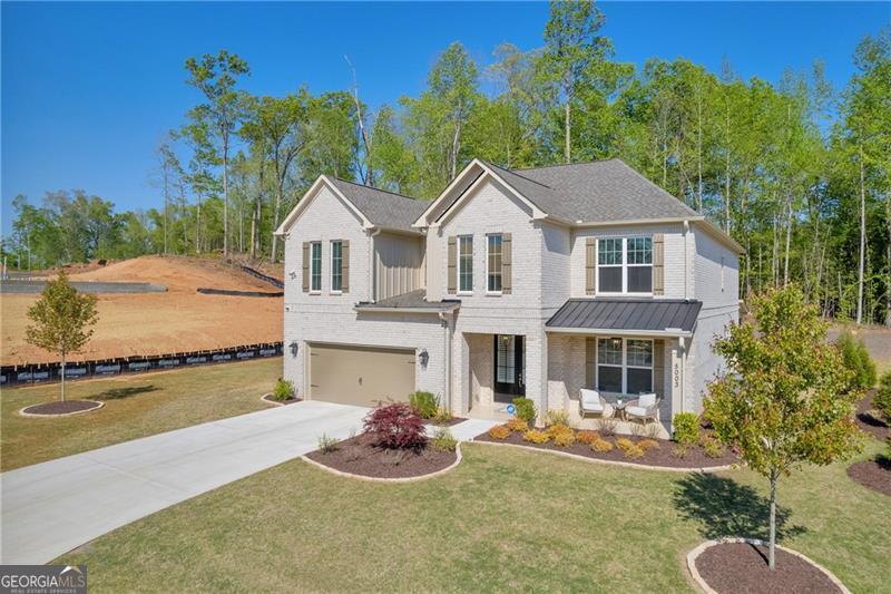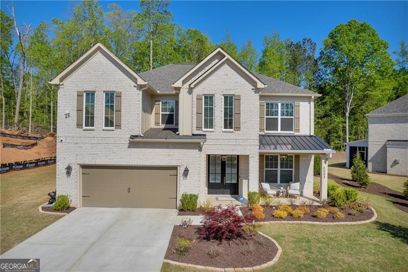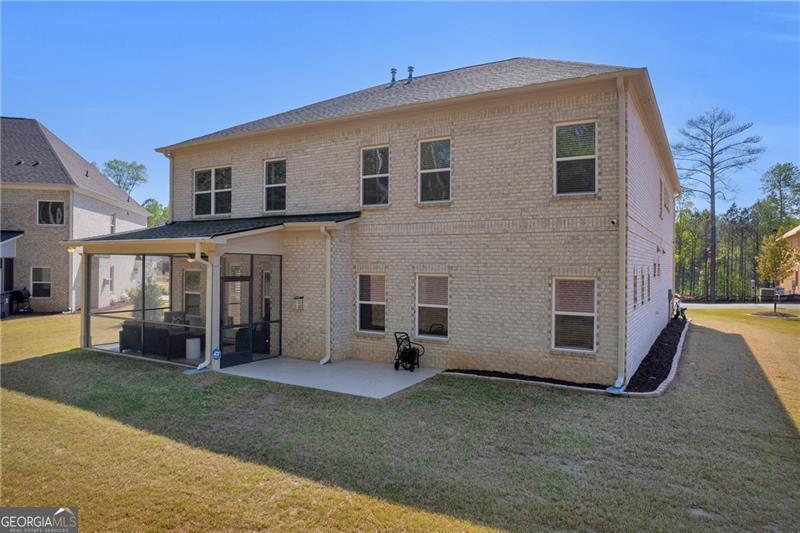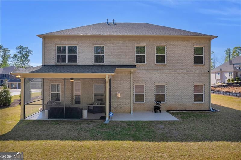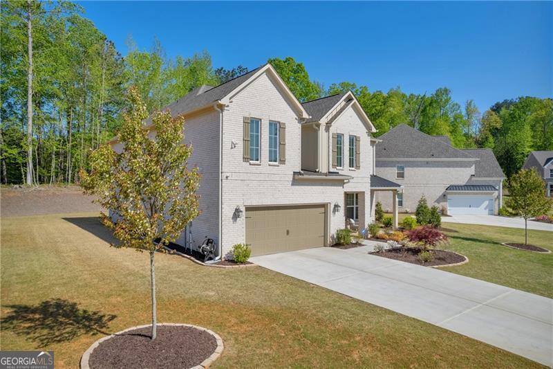 Welcome to The Marshall Plan by Heatherland Homes - where thoughtful upgrades meet timeless design. This stunning 5-bedroom, 3.5-bath brick home offers the rare and versatile feature of two primary suites - one on the main level and one upstairs - making it perfect for multi-generational living, extended guests, or ultimate privacy. Built in December 2023, the home has since been enhanced with numerous high-end upgrades that elevate both comfort and functionality. Inside, the main level showcases two-story foyer, separate dining room, a warm and inviting open concept family room with fireplace and coffered ceilings and a bright breakfast area. Also on the main level you will find the first of two oversized primary suites w/a primary bath with oversized shower w/upgraded tile and flooring. The chef's kitchen is the heart of the home, complete with a large island, quartz countertops, double ovens, and a generous walk-in pantry. Upstairs, enjoy movie nights in the media room, or retreat to the luxurious second primary suite featuring his-and-hers closets, and a spa-inspired bath with a frameless glass shower and upgraded tile. Significant owner-added enhancements include: Accent walls w/designer paint upgrades; screened-in back porch and extended patio, perfect for enjoying outdoor living in comfort; polyaspartic floor coating in the garage, front and back porches, and patio - durable, sleek, and easy to maintain; full ADT security system with doorbell camera and four exterior cameras, providing peace of mind; exterior accent lighting installed around the entire home, creating beautiful curb appeal after sunset; hardwired CAT 6 Ethernet connections in every room for reliable, high-speed connectivity. Other standout features include frameless showers in both primary suites, upgraded tile and shower flooring, a covered front porch, and a spacious 2-car garage. In addition this home is set in a vibrant community offering swimming, tennis, playgrounds, lake, fishing, optional country club/golf. This home truly blends style, security, and smart upgrades - ready for you to move in and enjoy.