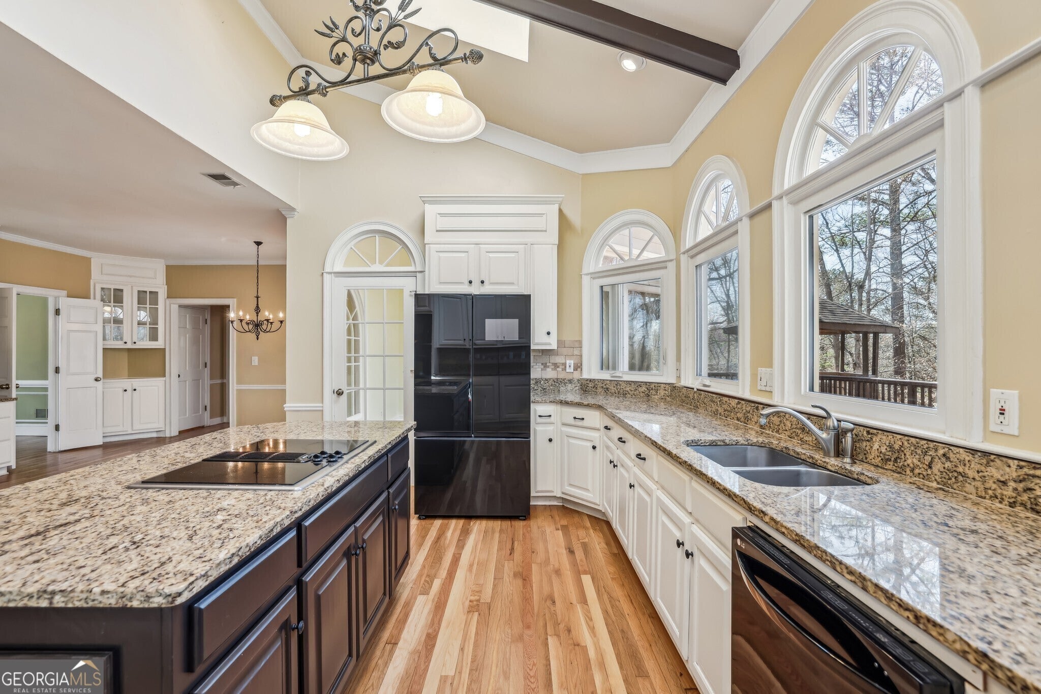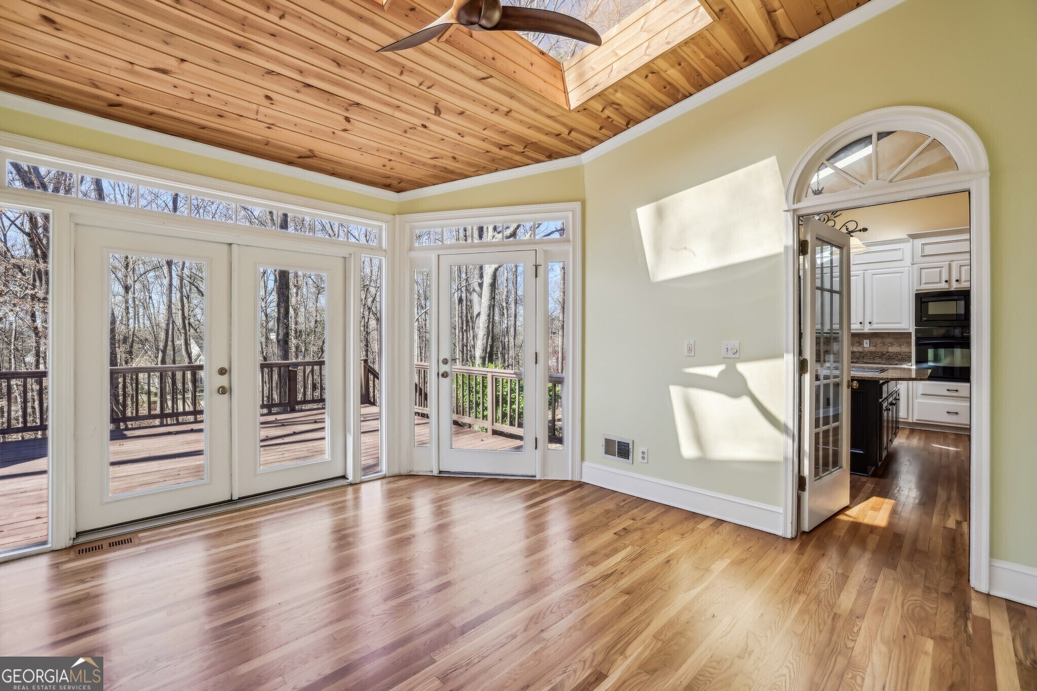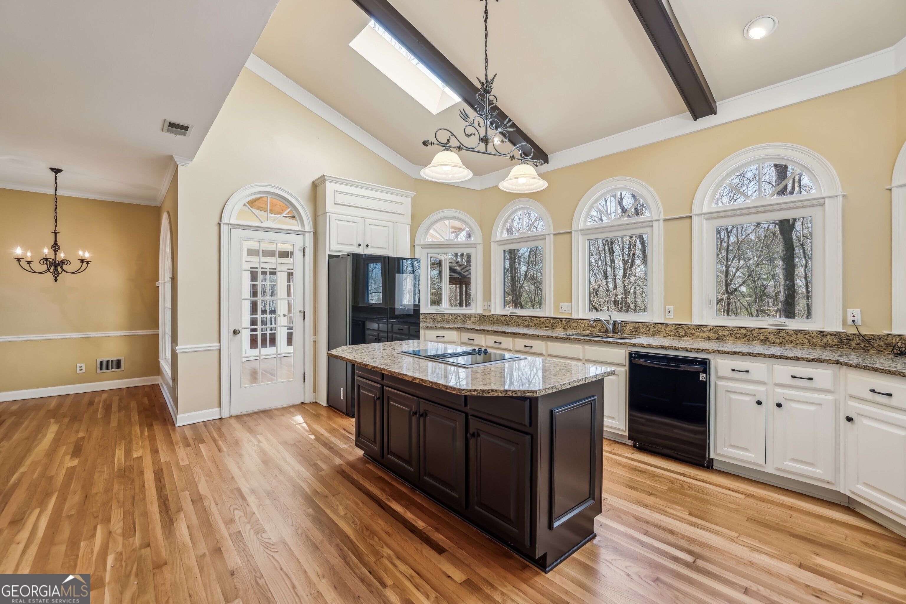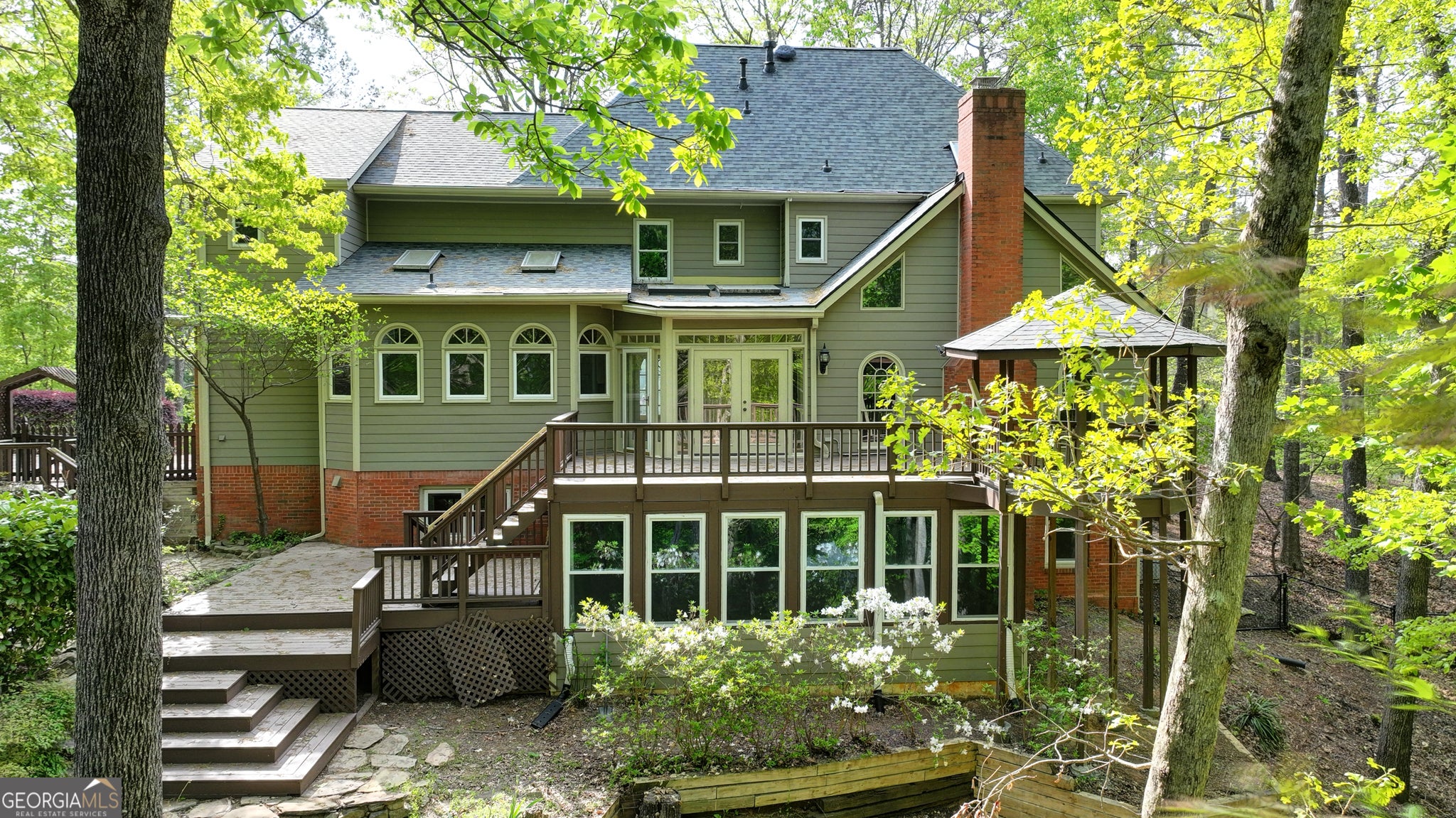 Discover Exceptional Living in the Prestigious Habersham Place Neighborhood of Sandy Springs! Set on nearly an acre of land in a tranquil, welcoming community, this remarkable home offers an ideal balance of space, privacy, and a prime location. Whether you're looking for room to grow, host extended family, or accommodate multigenerational living, this home offers Unmatched Flexibility with a Fully Finished Terrace Level featuring its own Kitchen, Living Area, and Private Entrance. The grand Red Brick Exterior and meticulously landscaped grounds provide an impressive first impression. A brand-New Roof has been installed, adding to the home's allure and ensuring lasting value. Upon entering the Elegant Foyer, you'll be welcomed by soaring ceilings, gleaming Hardwood Floors, Wainscoting, and Crown Molding, creating an atmosphere of sophistication. To your right, the Formal Dining Room features Floor-to-Ceiling Windows that fill the room with abundant natural light, perfect for hosting memorable meals. Across the hall, the Formal Living Room is versatile and ideal as a Dedicated Home Office or additional Sitting Area. At the heart of the home, the Fireside Family Room is an entertainer's dream, offering a Vaulted, Beamed Ceiling, Custom Built-Ins, and Rich Wood-Paneled Walls that create a warm and inviting atmosphere. Just off the family room, the Chef's Kitchen is a standout, complete with Granite Countertops, White Cabinetry, a Large Island, and Skylights that bathe the space in Natural Light. The adjacent Breakfast Nook is the perfect spot to enjoy casual meals or your morning coffee. Beyond the kitchen, the Sunroom features a tongue-and-groove ceiling, Skylights, and a Wall of Windows, creating a serene retreat for reading, unwinding with a drink, or simply relaxing. A convenient Laundry Room rounds out the main level. Upstairs, the luxurious Primary Suite is a true sanctuary, offering Tray Ceilings and a Private Sitting Room, which could serve as a Nursery, Additional Closet, or Home Office. The Spa-Like Ensuite Bathroom is equipped with a Soaking Tub, Separate Glass Shower, Double Vanity, and Walk-In Closet. Three additional Spacious Secondary Bedrooms and Two Full Bathrooms ensure comfort and privacy for family and guests. The expansive Daylight Terrace Level significantly increases the home's living space, featuring a Fireside Family Room with newly installed Luxury Vinyl Plank Flooring, a Full Kitchen, and a Sunroom with a Built-In Bar-perfect for entertaining, game nights, or simply enjoying the view of the backyard. A Private Bedroom and Full Bathroom complete this level, making it ideal for a Multigenerational Family or In-Laws Suite with its own separate living area, kitchen, and private entrance. Step outside to your own Backyard Oasis, featuring two levels of deck space for outdoor dining, barbecues, and entertaining. The Spacious, Flat, and Fully Fenced Backyard is perfect for play, while the Wooded Area offers tranquil, scenic views. Additional features include a Two-Car Garage and a spacious, Flat Driveway with a Large Parking Pad. Located just minutes from Dunwoody, Holcomb Bridge, Peachtree Corners, and the Chattahoochee River, this home offers easy access to Shopping, Grocery Stores, Dining, and Recreational Amenities. Don't miss out on the opportunity to make this extraordinary home yours!