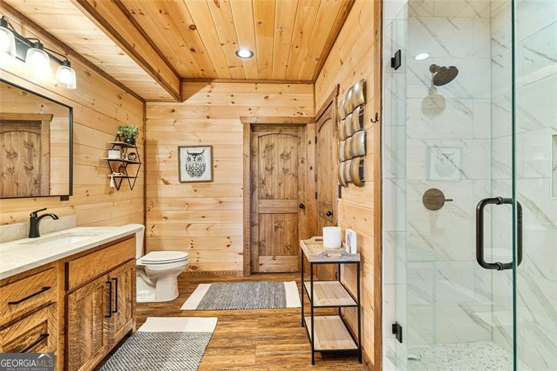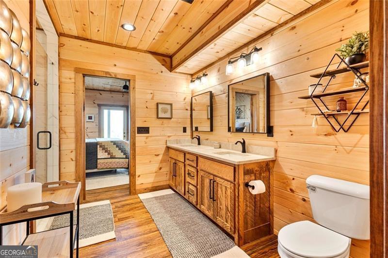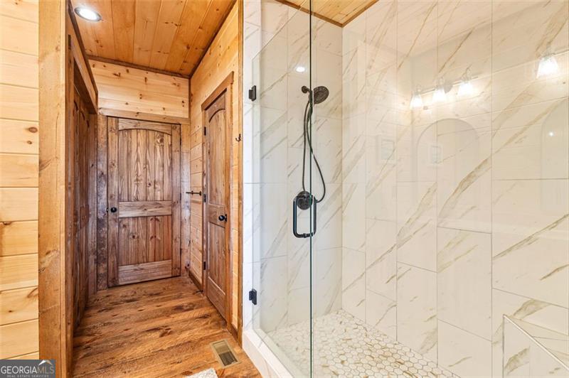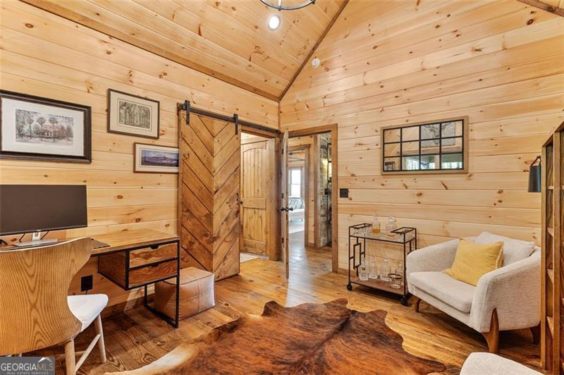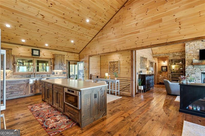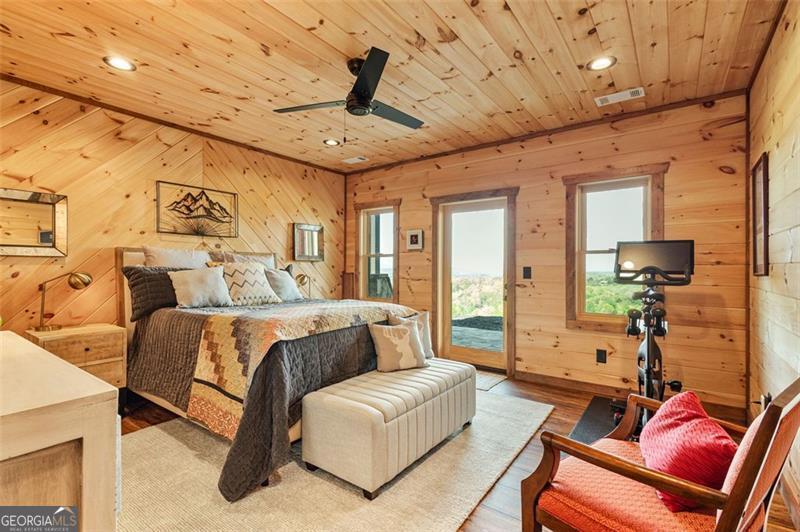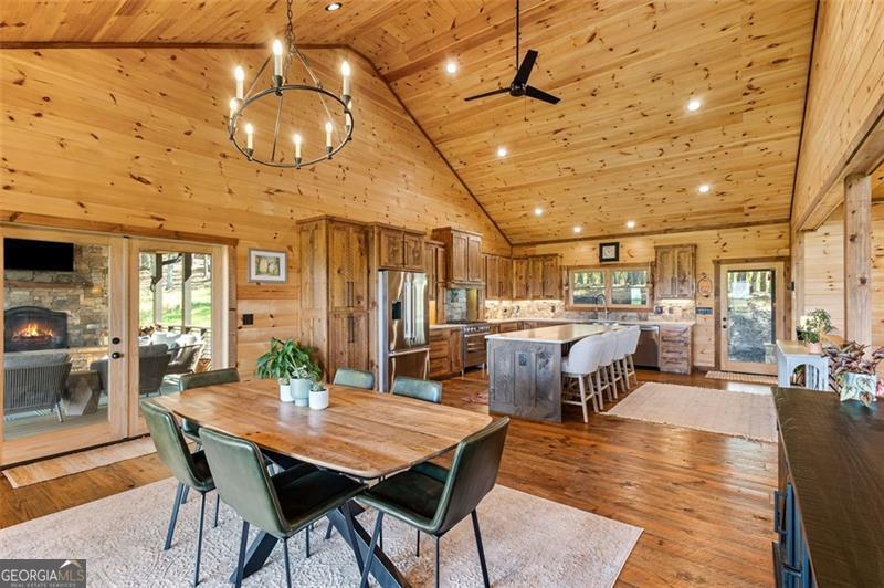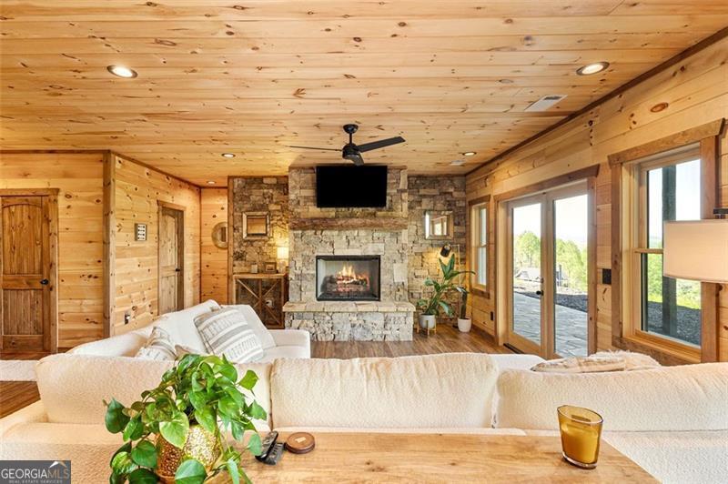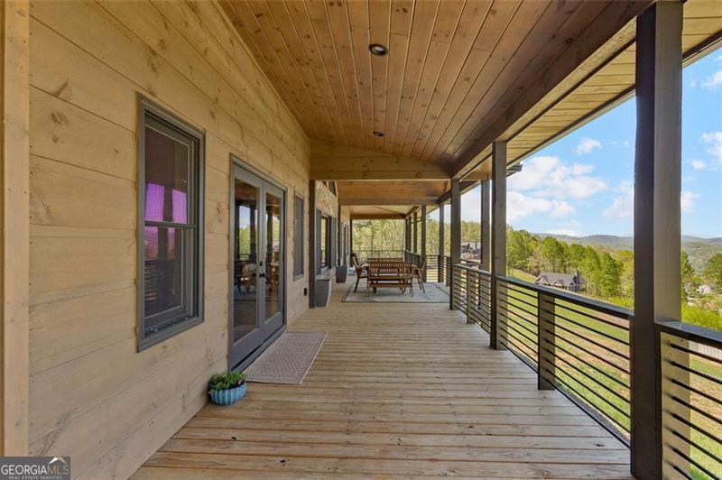 Where Blue Ridge mornings meet 5-star mountain evenings. Located only 10 minutes from downtown Blue Ridge & the shore of Lake Blue Ridge, you'll find 95 Upper Ridge Trail-an entertainer's dream & a retreat for the soul whose long-range mountain view goes cinematic at each sunset. Crafted in 2023 with warm wood textures & timeless mountain charm, this cabin-style, two-story lodge offers unobstructed long-range mountain views that stretch across the layers of the Blue Ridge Mountains. Whether you're sipping morning coffee from the massive party porch with its stone wood-burning fireplace, hosting friends at the downstairs bar, or enjoying quiet evenings by the soaring hearth in the great room-this home delivers more than features... it delivers feelings & unbeatable view. The main level includes a vaulted, window-wrapped living room, with a remote-controlled gas fireplace, open-concept dining area, a chef's kitchen with custom cabinetry & luxury Bosch appliances, & an oversized island that enables counter-top dining for four or more. The primary suite, which is privately tucked away from the great room, includes a stone-accent wall, spa-style bath, & porch access to soak in every sunset. Downstairs opens into a full entertainment space with a remote-controlled gas fireplace, stone wall bar, game zones (shuffleboard included), office niche, & walk-out terrace level overlooking the view. The downstairs also features a private second primary suite & a separate room for a second washer & dryer. Additional Features: The paved road, situated between maintained rolling hills, leads to the lodge's private drive, peaceful, private end-of-the-road setting, ensuite bath for every bedroom, wraparound covered porch for all-season entertaining & lower terrace plumbed for outdoor kitchen, tongue-and-groove walls & ceilings, hardwood floors, & designer lighting, wood-framed attached car port w/charging station, professionally installed water filtration system.