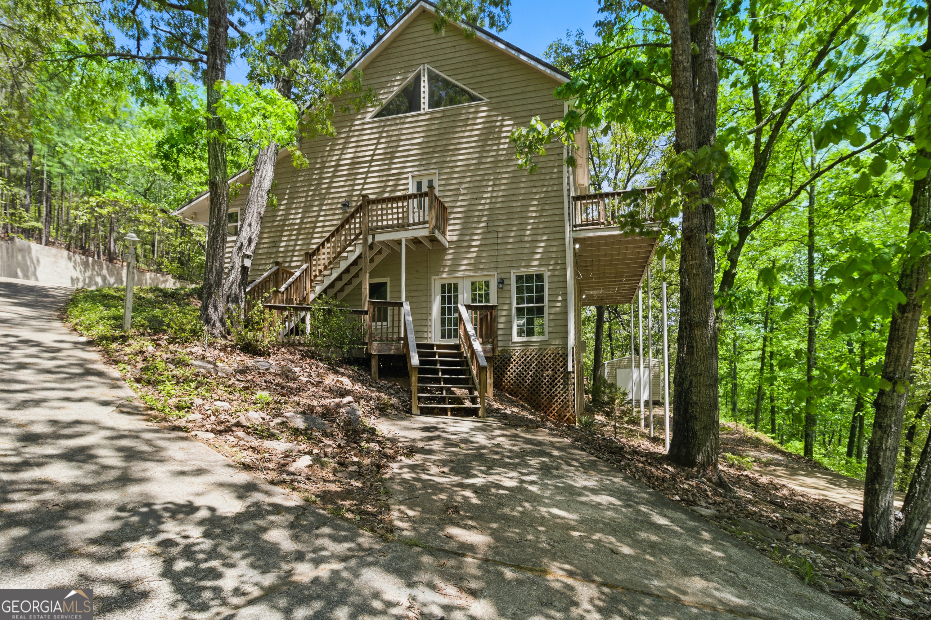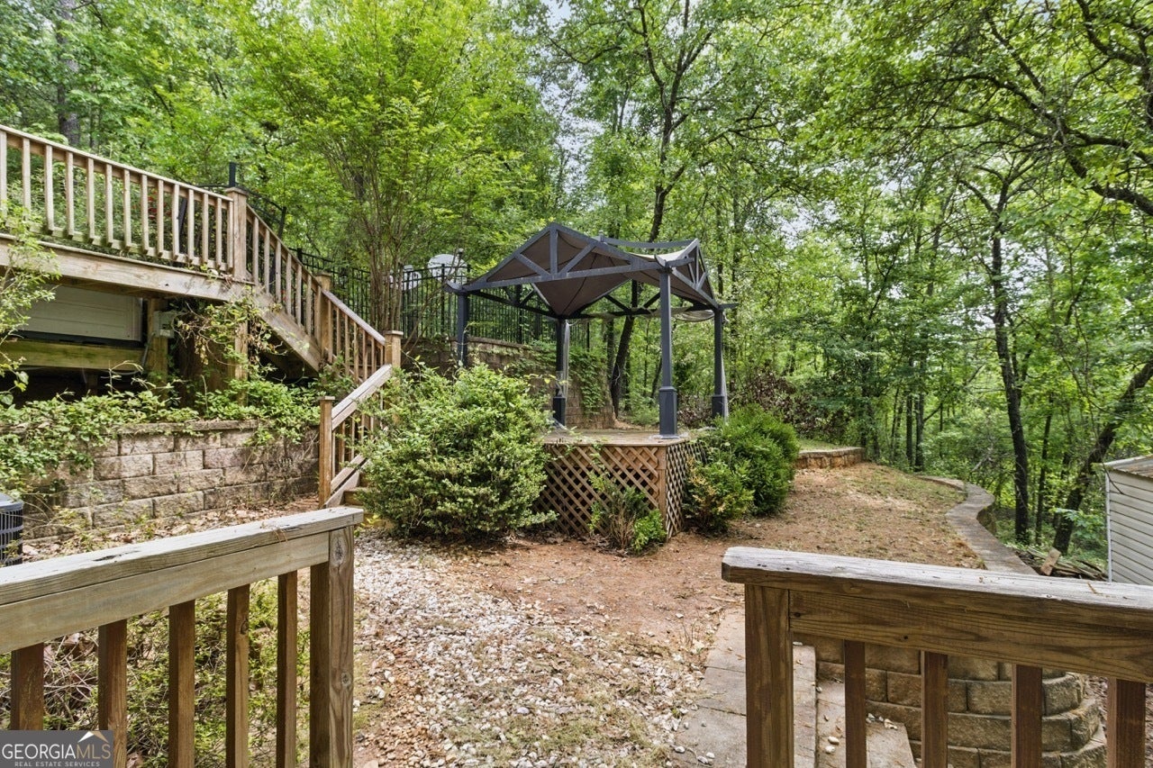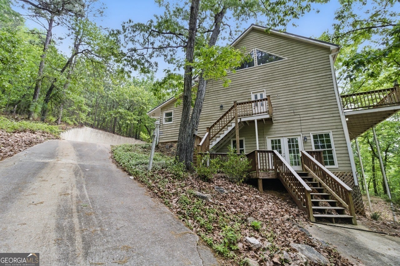 This mountain retreat is in need of some TLC & has a greatly reduced price! Enter the property through a beautiful metal gate w/deerhead onto a shared driveway. You'll see the house as the first & only property on the right. Enter the front doors into a foyer, breakfast rm and kitchen. The walk-in pantry and laundry rm are here as well. Kitchen has island w/gas cooktop, stainless steel appliances and farm sink, wall oven & microwave, granite countertops, tile floors, Some cabinet drawer & door fronts need replacing, as well as some appliances. Step up to the dining rm which flows into the great rm w/large windows, 2 story ceilings, a fireplace and doors out to a deck with treetop views. Master on the main also accesses the deck. Master closets are custom designed; master bath has tile floors, a sunken whirlpool tub, separate vanities w/makeup station, & a 11' wide walk-in tile shower with overhead rainshowerhead and showerheads on the wall, & 2 arched entries. Double French doors from master bath to the sunken hottub deck, hottub needs replacing. Gazebo just needs new canopies. The upper level of the home has 2 BR's, one of which has a small balcony to take in the views. Also upstairs is loft area overlooking the grt rm downstairs, as well as a full bath w/double sink vanity, In the lower level, you'll find a BR & bonus rm w/mini kitchen cabinets, small sink & space for a small fridge. Last but not least is a large exercise rm w/minisplit hvac system, and double doors to yet another deck. 5 yr. HVAC, 10 yr old metal roof. Home needs some work on fascia boards, some interior doors and door trim, cabinetry doors & drawer fronts; & appliances. Some of the hardwood floors need work. Siding could be cypress or cedar & appears in good shape. Perfect location is 1/2 mi. from FDR Park and 1.8 mi. from Callaway Gardens.