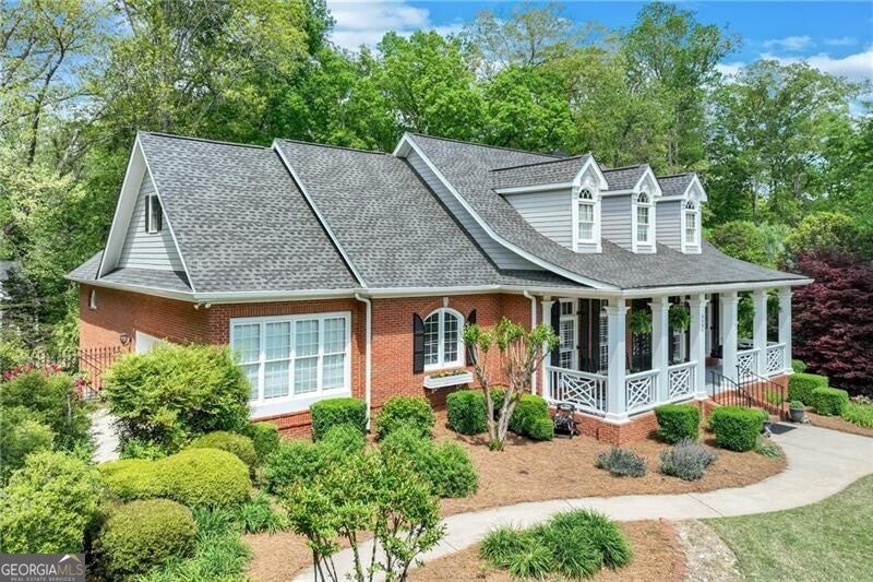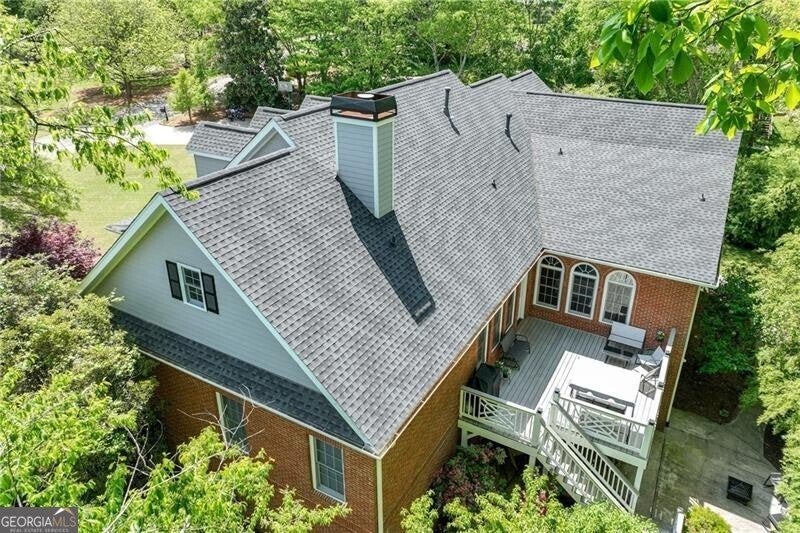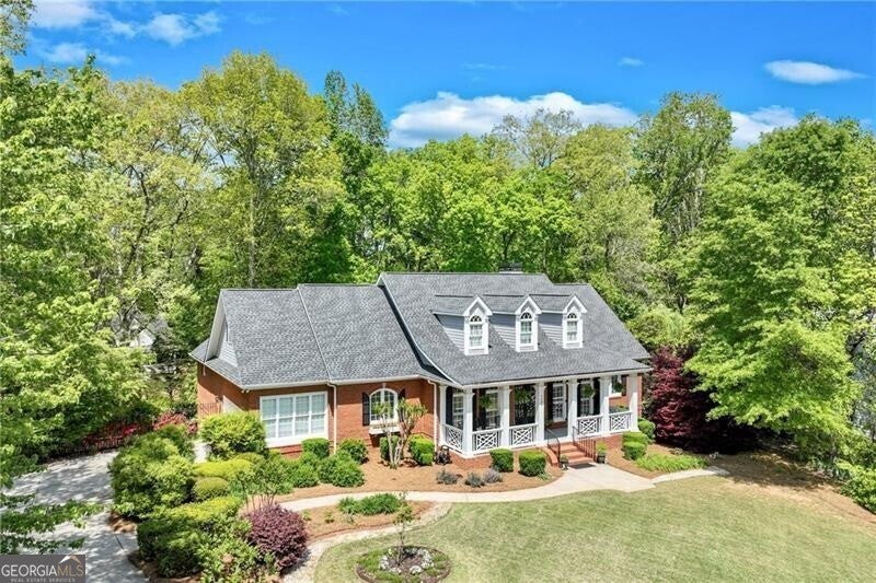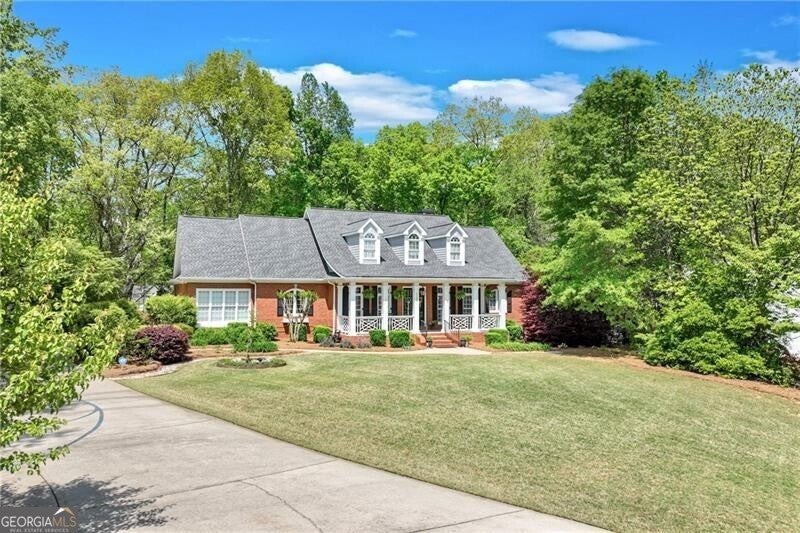Located in the well established and sought after Cherokee Forrest Lake Lanier neighborhood just north of Gainesville, this custom-built, four-sides brick home offers timeless quality and comfortable everyday living. Enjoy community amenities including a pool and tennis courts, all while coming home to a quiet cul-de-sac lot with a lush, landscaped front yard. Step inside through double doors into a beautifully trimmed foyer that sets the tone for the craftsmanship throughout-10-foot ceilings, custom cabinetry, and rich wood-paneled built-ins surrounding the fireplace. The main level features two spacious bedroom suites and a dedicated office/study ideal for work-from-home needs. A walkout deck from main level overlooks the private, fenced backyard. The finished terrace level includes a generous recreation or family room that opens to a patio, with unfinished space remaining for storage or future expansion. Practical features include two 2-car garages and permanent stairs from the garage to the attic. Truly a rare find in a well-established, amenity-rich neighborhood.
