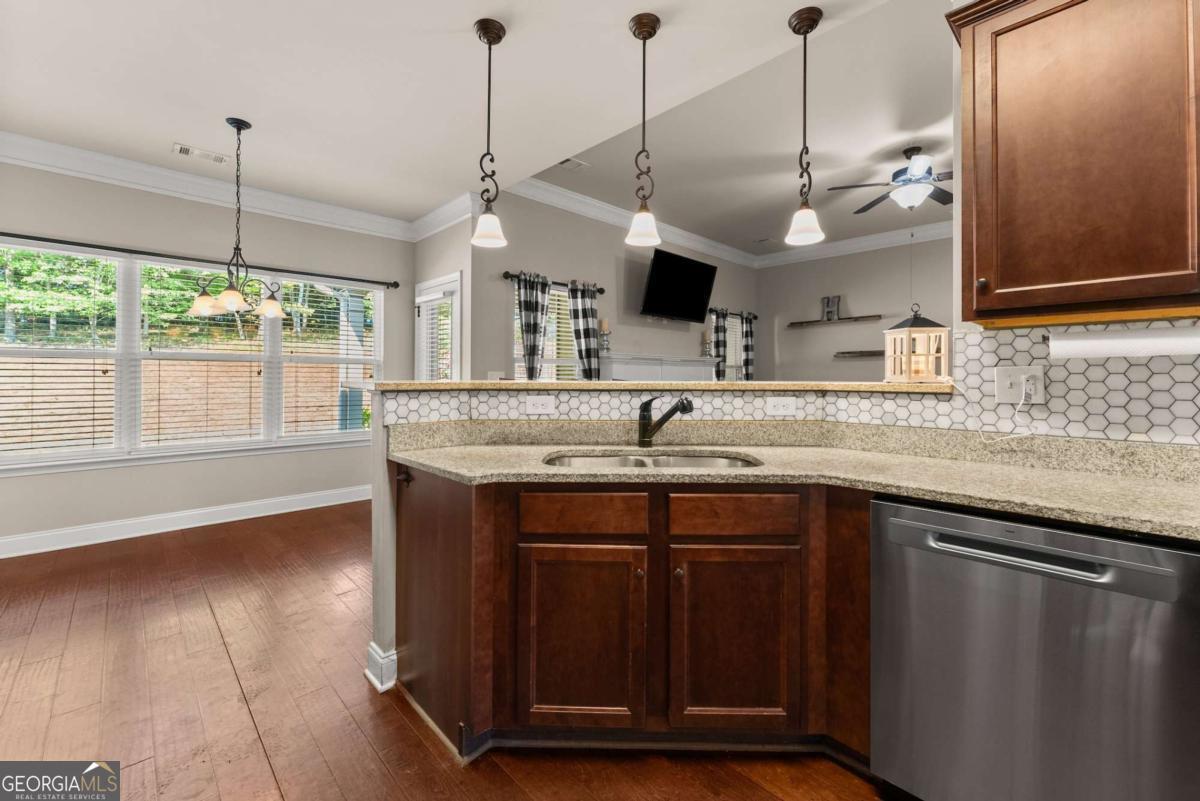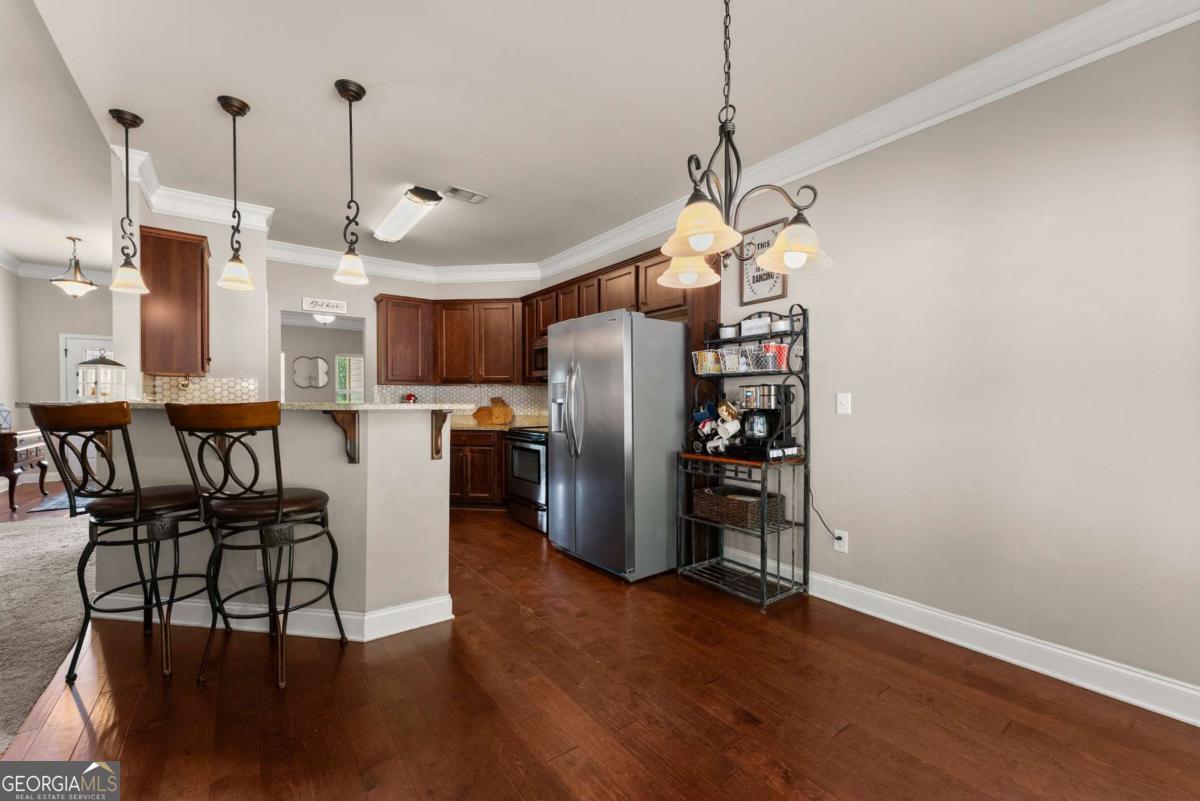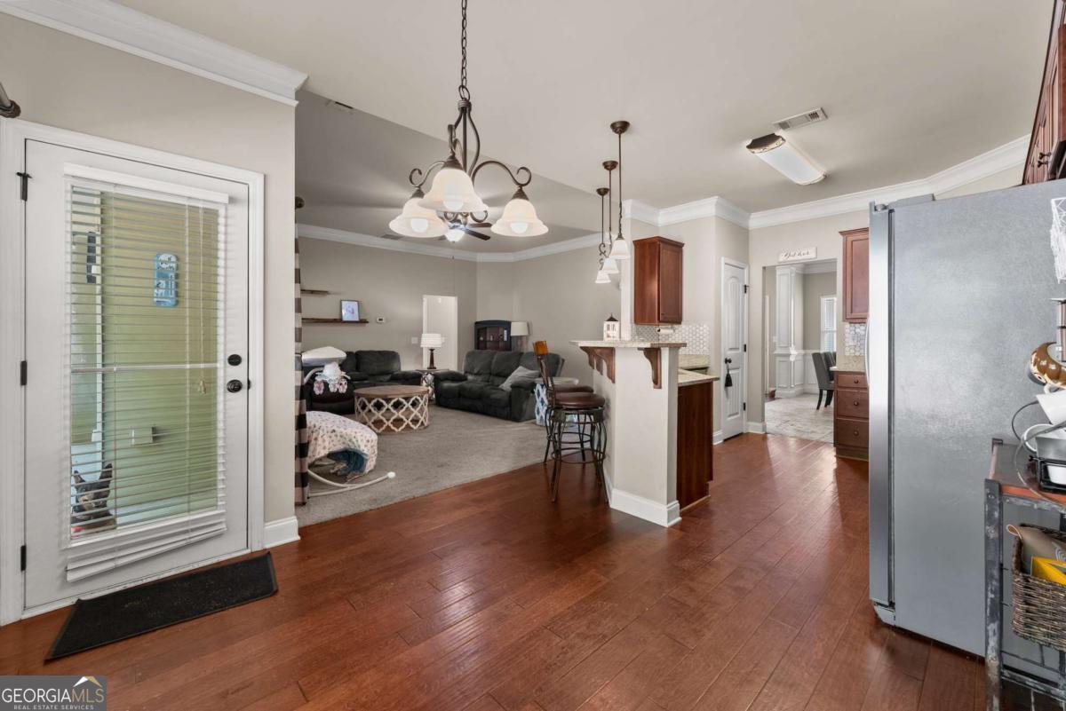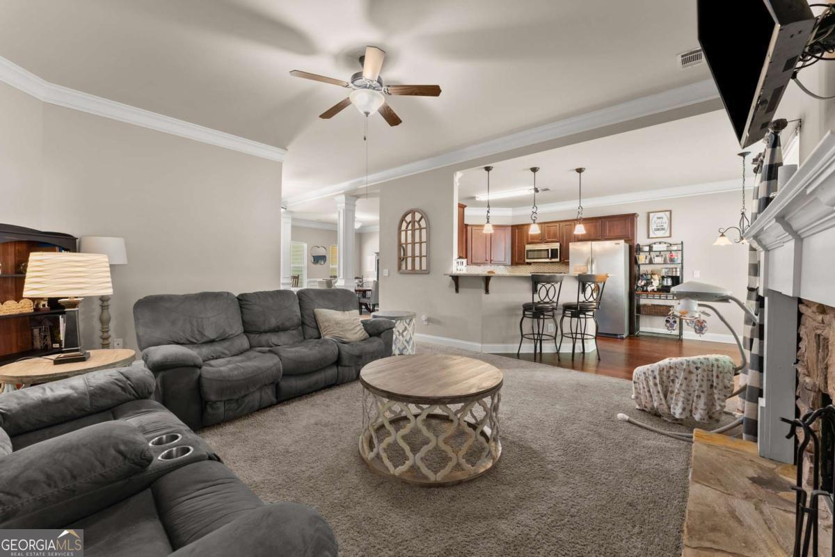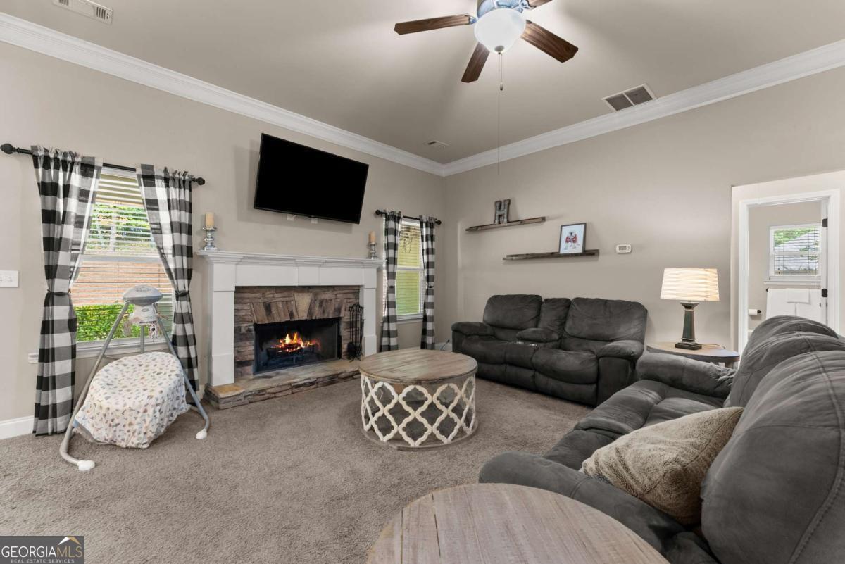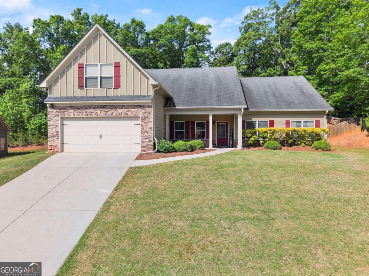 Welcome to this beautifully maintained 4-bedroom, 2-bathroom ranch sitting on a spacious .72-acre lot that offers the perfect blend of comfort, style, and convenience. Step inside to find upgraded trim details throughout and a bright, open floor plan that makes everyday living and entertaining a breeze. The heart of the home is the inviting kitchen, featuring stained cabinets, granite countertops, stainless steel appliances, and gleaming hardwood floorsCoall overlooking a cozy family room with a stacked stone fireplace. Relax and unwind in the spacious primary suite, complete with a peaceful sitting area, tray ceiling, and his-and-hers closets. The ensuite bath boasts a double vanity, tile flooring, a separate shower, and a garden tub for soaking the day away. The split-bedroom layout includes three additional bedrooms and a full bath, offering space and privacy for everyone. Need more room? Head upstairs to the large unfinished bonus room, already framed with a walk-in closet and bathroomCojust waiting for your custom touch! Outside, enjoy the covered patio with a ceiling fan overlooking the private, fenced backyardCoperfect for gatherings, games, or just a quiet evening under the stars. The 2-foot extended garage even includes a generous unfinished space above for storage. Located in a highly-rated school district and just minutes from I-85, shopping, dining, and more, this home checks all the boxes. DonCOt miss your chance to make this charming ranch your own!