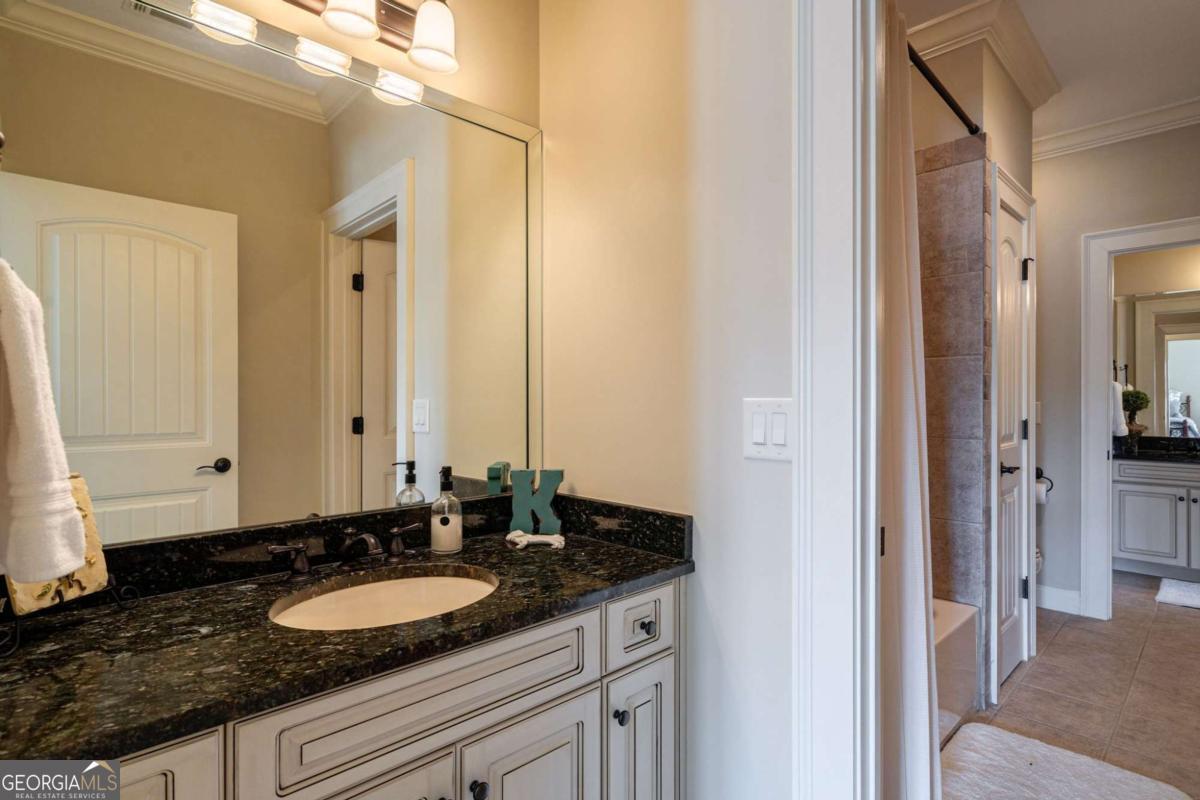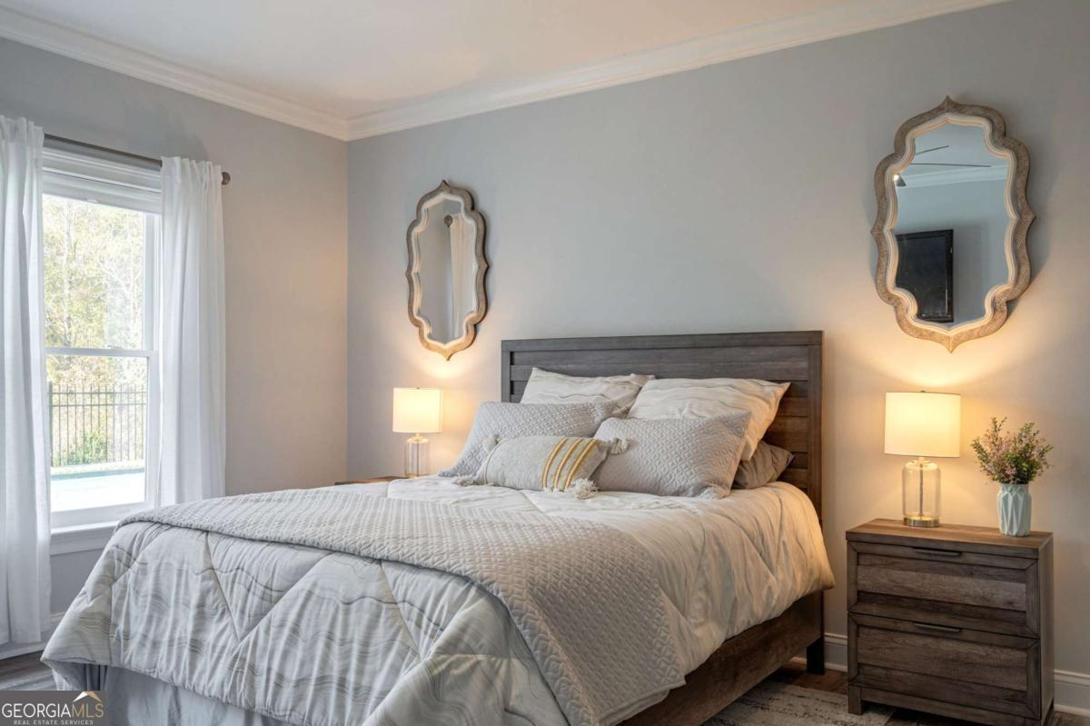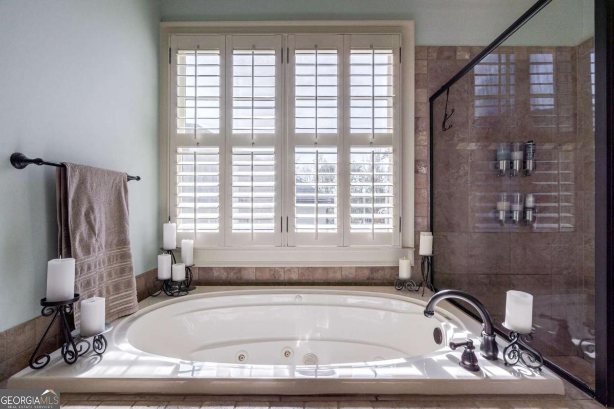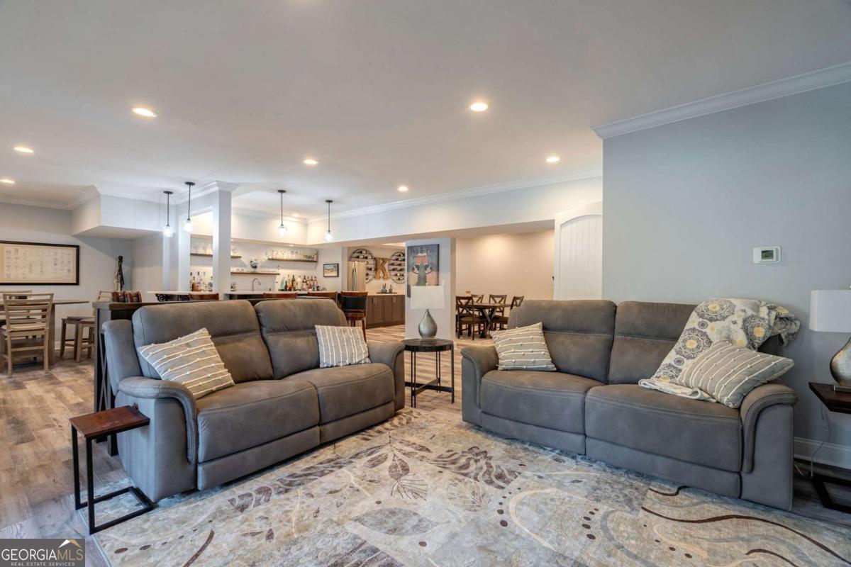 Nestled within the prestigious Georgia Club, this stunning 5-bedroom, 4-bathroom home offers an exquisite blend of luxury and comfort. The house sits on a beautifully landscaped lot, featuring a fully finished basement and a private backyard oasis complete with a shimmering pool, perfect for those warm Georgia days. The exterior, with its classic gray siding and white trim, exudes charm, complemented by a welcoming front porch that invites you into the house. As you step into the foyer, youre greeted by the rich, gleaming hardwood floors that lead your eyes towards the open layout ahead, with a staircase to the left inviting you upstairs. The formal dining room, visible to the right from the foyer, boasts elegant wainscoting, a soft green hue on the walls, and large windows that allow natural light to flood the space, creating an inviting atmosphere for gatherings. The kitchen, located to the right of the great room, features inviting design with rich wooden cabinetry, granite countertops, a central island, and stainless steel appliances, all complemented by pendant lighting and a stylish backsplash, creating a functional and aesthetically pleasing cooking space. On the left side of the main floor, you are greeted by a refined home office, distinguished by its built-in cabinetry and the warmth of hardwood flooring, ideal for work or contemplation. Steps away lies a practical full guest bathroom, enhancing the homes hospitality. Also on this side is the expansive master bedroom, a haven of comfort and elegance, which opens into a master bath designed for indulgence. The bathroom features a spacious walk-in shower, a soothing jacuzzi tub, his and her vanities for personal space, and a large custom closet that answers every storage need with style. Upstairs features two large bathrooms, a third bathroom, a spacious office, and ample attic storage space for all needs. The covered deck, accessible from both the breakfast area, great room and the master bedroom, offers a tranquil retreat with its expansive deck area. Its designed for relaxation and entertainment, featuring ample space for seating and dining, all under the protection of a awning. The newly renovated basement presents a versatile and inviting space, featuring a bar area with countertops and pendant lighting, perfect for social gatherings. Adjacent to the bar, the open layout seamlessly transitions into various functional areas, including a full bathroom for convenience, a dedicated workshop for DIY projects, a designated workout area for fitness enthusiasts, and a cozy bedroom for guests or family. Additionally, the basement includes a practical storage garage specifically for pool equipment and a golf cart, ensuring all leisure needs are catered to within the home. The overall design combines utility with comfort, making it an ideal space for both relaxation and productivity. This outdoor area features a sparkling pool for refreshing dips, a soothing hot tub for relaxation, and an outdoor bar setup perfect for entertaining. The space is designed for leisure and social gatherings, offering a blend of comfort and luxury with ample seating and shade. The Georgia Club itself is a paradise for those who love the outdoors and community activities. With a championship 27-hole golf course designed to challenge and delight players of all skill levels, a club house for social gatherings, a remodeled fitness center, and not one but two pools for community enjoyment, theres always something to do. Add to this the convenience of on-site pickleball and tennis courts, playgrounds, and beautifully maintained parks, and you have a community that supports an active and engaged lifestyle. The houses location within this gated community offers both privacy and security, making it an ideal retreat for families or anyone looking for a serene environment. The Georgia Clubs amenities and this homes features make it not just a residence, but a lifestyle choice. Dont miss out!
