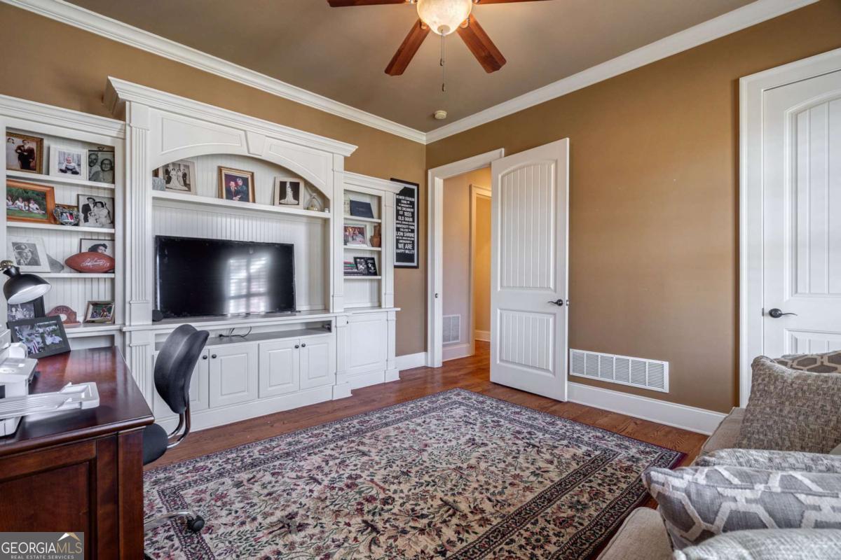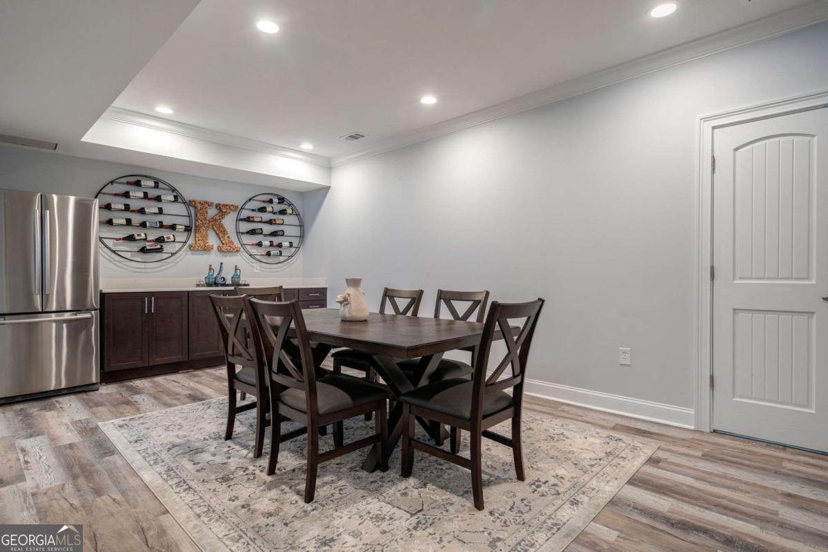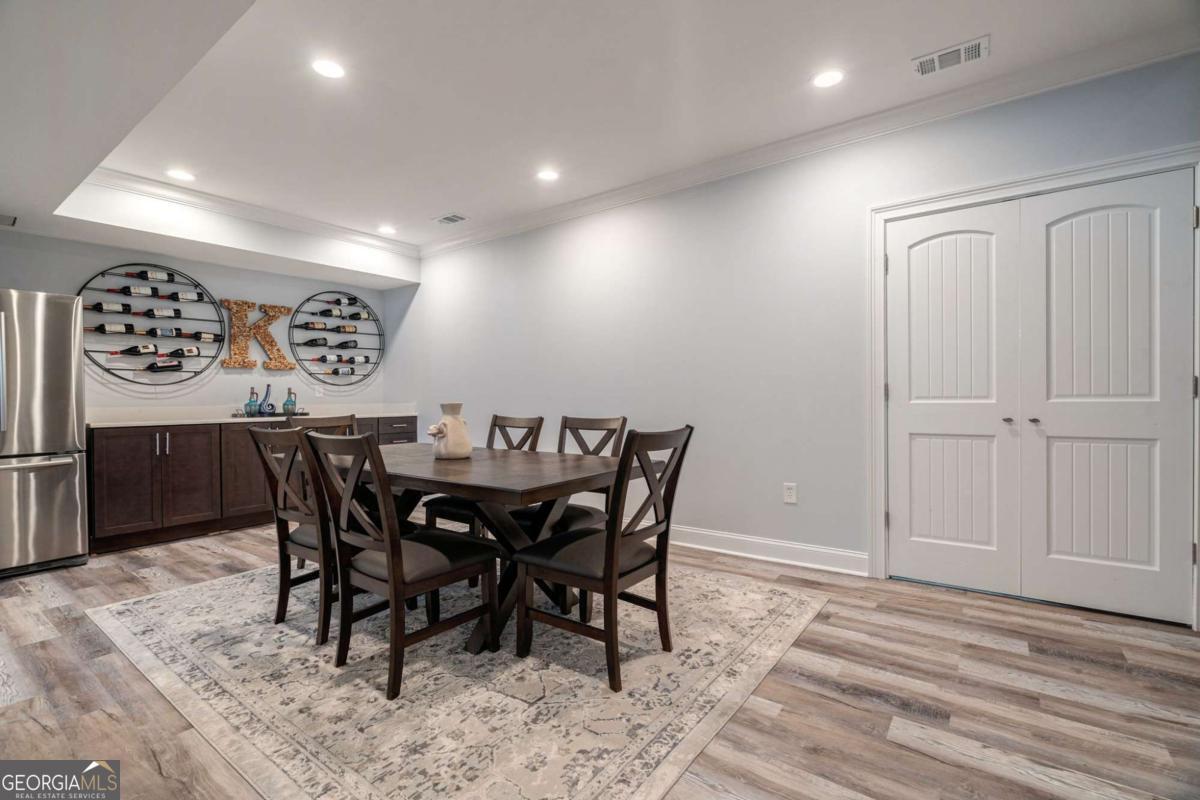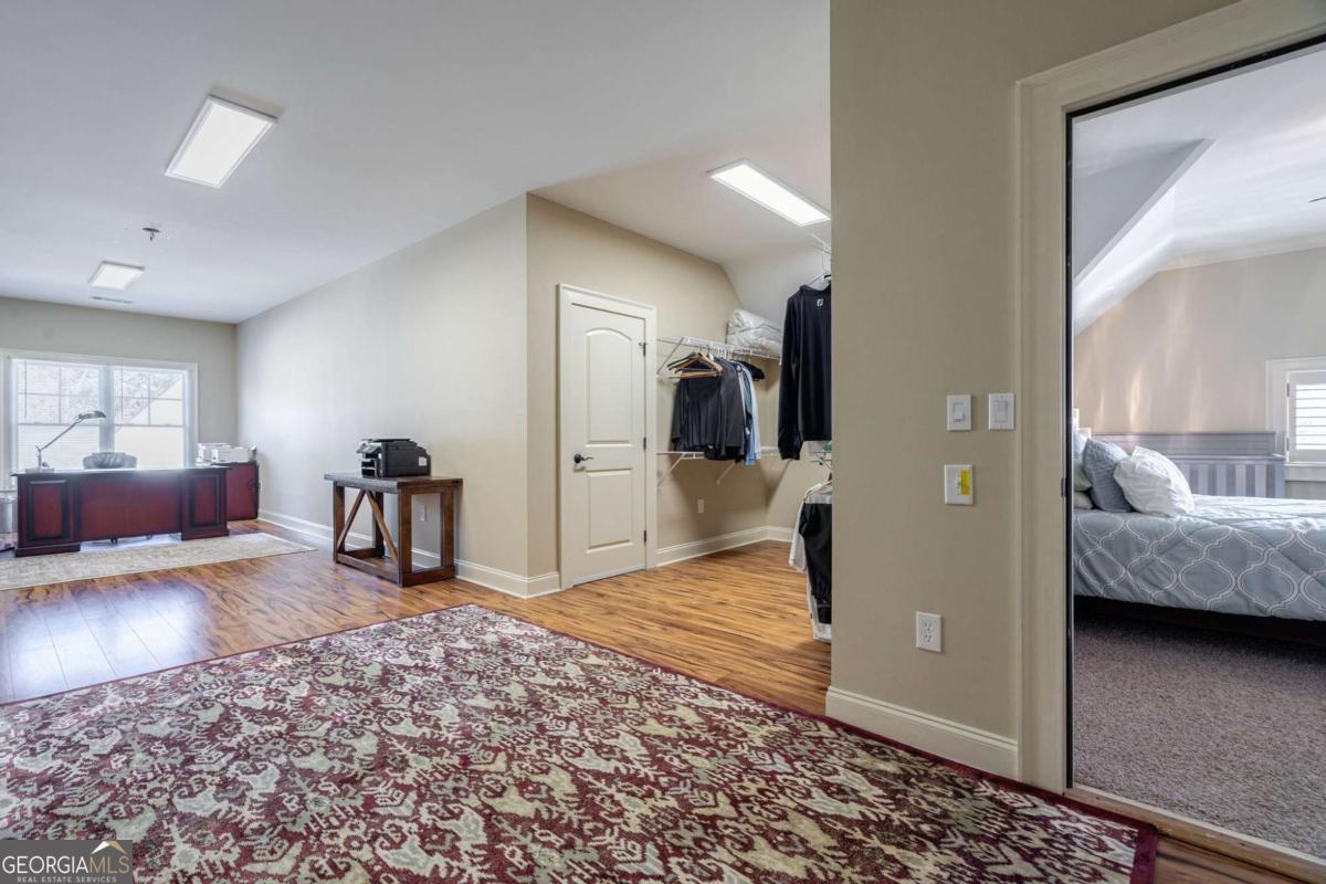 Nestled within the prestigious Georgia Club, this stunning 5-bedroom, 4-bathroom home offers an exquisite blend of luxury and comfort. The house sits on a beautifully landscaped lot, featuring a fully finished basement and a private backyard oasis complete with a shimmering pool, perfect for those warm Georgia days. The exterior, with its classic gray siding and white trim, exudes charm, complemented by a welcoming front porch that invites you into the house. As you step into the foyer, youre greeted by the rich, gleaming hardwood floors that lead your eyes towards the open layout ahead, with a staircase to the left inviting you upstairs. The formal dining room, visible to the right from the foyer, boasts elegant wainscoting, a soft green hue on the walls, and large windows that allow natural light to flood the space, creating an inviting atmosphere for gatherings. The kitchen, located to the right of the great room, features inviting design with rich wooden cabinetry, granite countertops, a central island, and stainless steel appliances, all complemented by pendant lighting and a stylish backsplash, creating a functional and aesthetically pleasing cooking space. On the left side of the main floor, you are greeted by a refined home office, distinguished by its built-in cabinetry and the warmth of hardwood flooring, ideal for work or contemplation. Steps away lies a practical full guest bathroom, enhancing the homes hospitality. Also on this side is the expansive master bedroom, a haven of comfort and elegance, which opens into a master bath designed for indulgence. The bathroom features a spacious walk-in shower, a soothing jacuzzi tub, his and her vanities for personal space, and a large custom closet that answers every storage need with style. Upstairs features two large bathrooms, a third bathroom, a spacious office, and ample attic storage space for all needs. The covered deck, accessible from both the breakfast area, great room and the master bedroom, offers a tranquil retreat with its expansive deck area. Its designed for relaxation and entertainment, featuring ample space for seating and dining, all under the protection of a awning. The newly renovated basement presents a versatile and inviting space, featuring a bar area with countertops and pendant lighting, perfect for social gatherings. Adjacent to the bar, the open layout seamlessly transitions into various functional areas, including a full bathroom for convenience, a dedicated workshop for DIY projects, a designated workout area for fitness enthusiasts, and a cozy bedroom for guests or family. Additionally, the basement includes a practical storage garage specifically for pool equipment and a golf cart, ensuring all leisure needs are catered to within the home. The overall design combines utility with comfort, making it an ideal space for both relaxation and productivity. This outdoor area features a sparkling pool for refreshing dips, a soothing hot tub for relaxation, and an outdoor bar setup perfect for entertaining. The space is designed for leisure and social gatherings, offering a blend of comfort and luxury with ample seating and shade. The Georgia Club itself is a paradise for those who love the outdoors and community activities. With a championship 27-hole golf course designed to challenge and delight players of all skill levels, a club house for social gatherings, a remodeled fitness center, and not one but two pools for community enjoyment, theres always something to do. Add to this the convenience of on-site pickleball and tennis courts, playgrounds, and beautifully maintained parks, and you have a community that supports an active and engaged lifestyle. The houses location within this gated community offers both privacy and security, making it an ideal retreat for families or anyone looking for a serene environment. The Georgia Clubs amenities and this homes features make it not just a residence, but a lifestyle choice. Dont miss out!
