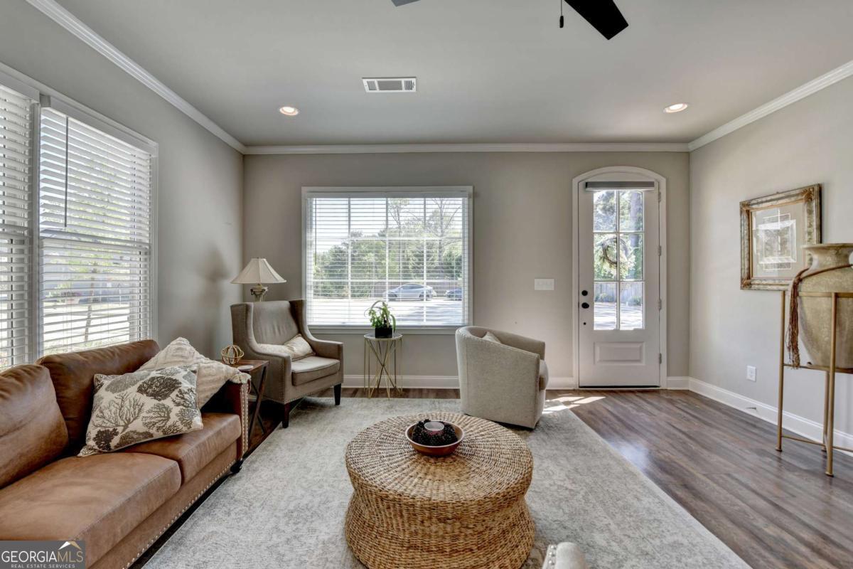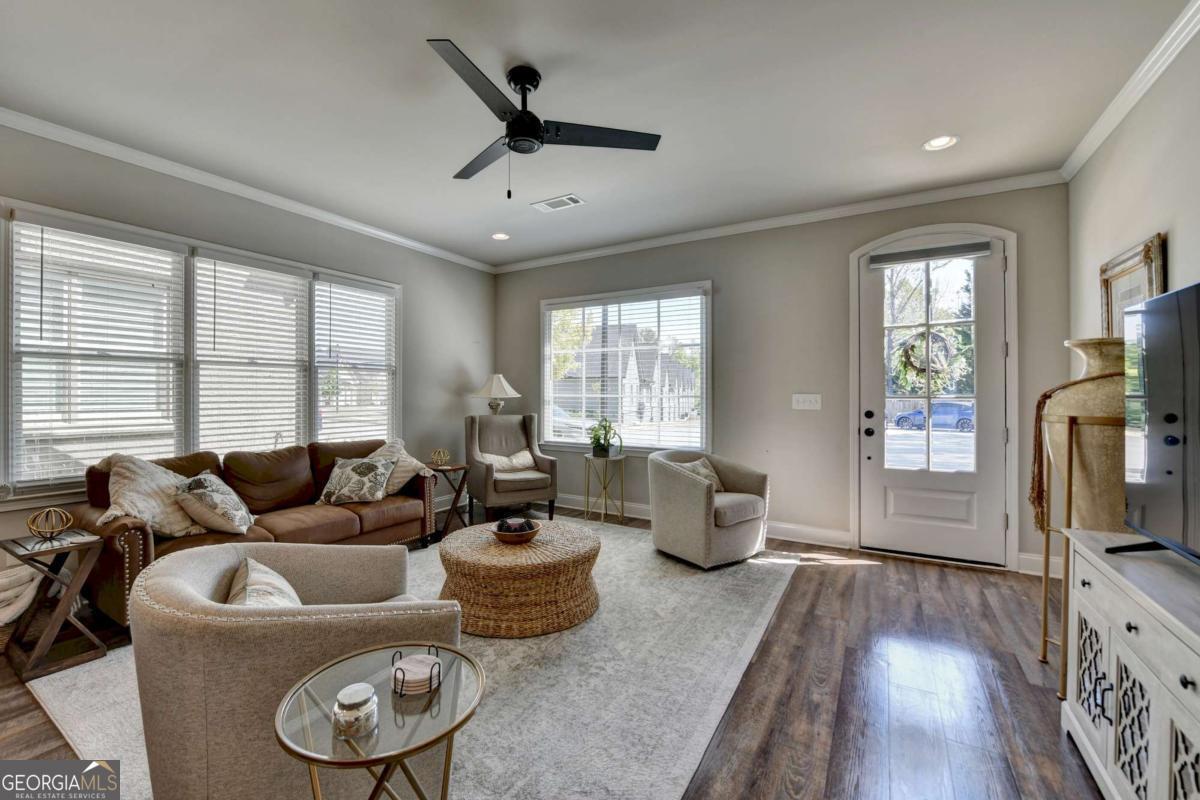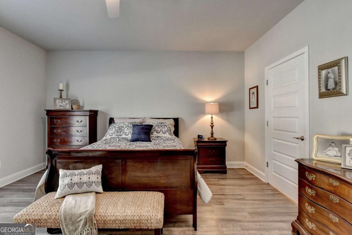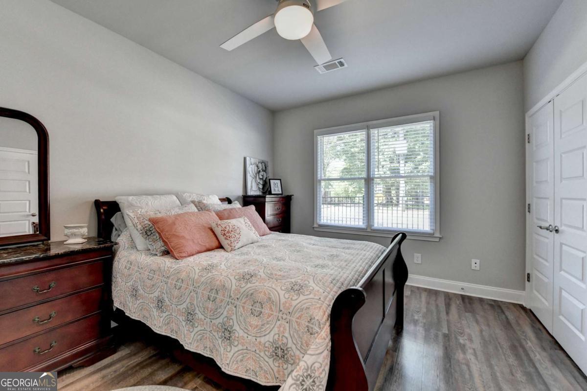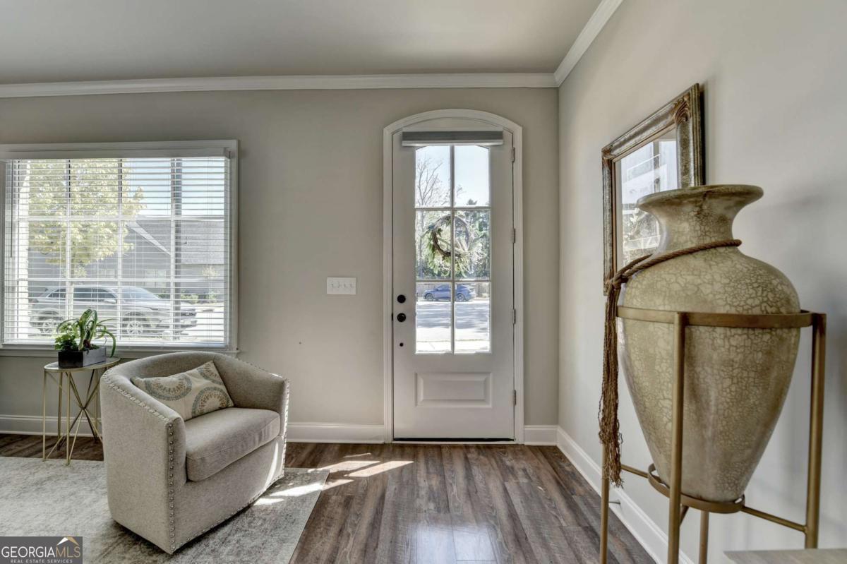 Discover comfortable, low-maintenance living in this beautiful 2-bedroom, 2-bath home located in the sought-after Cottages at Noble Village, an active adult gated community in the heart of downtown Lilburn. Designed with ease and elegance in mind, this home features an open layout perfect for entertaining, a modern kitchen with granite countertops, a spacious island, and stainless steel appliances. Throughout the home, luxury vinyl plank flooring complements the wide hallways and doorways, providing both style and accessibility. The oversized ownerCOs suite offers a spa-like experience with a double vanity, a zero-entry tiled shower with a built-in bench, and ceramic tile flooring. A large walk-in laundry room with a linen closet adds everyday convenience. Residents enjoy a secure, sidewalk-friendly neighborhood with level homesites and beautifully maintained grounds. The community clubhouse includes a fitness center, lounge with barn doors, a full kitchen, and welcoming spaces to gather with friends and neighbors, including an outdoor fire pit. Located just steps from local shops, restaurants, Lilburn City Hall, and the public library, this home offers both comfort and connection in a vibrant setting.