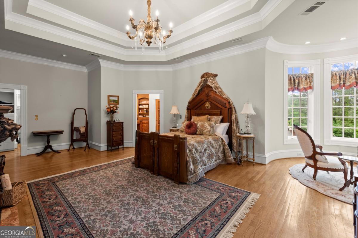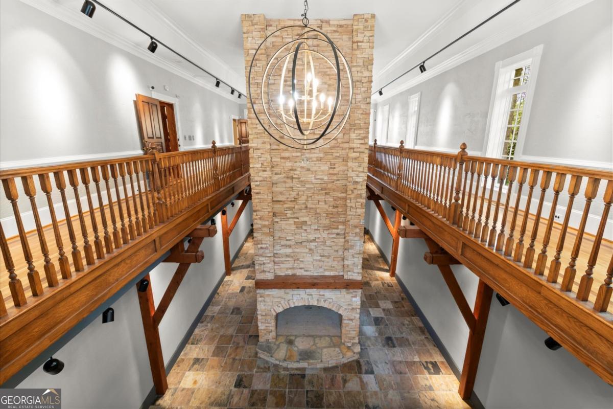 The Lion Manor - Majestic Estate Inspired by the Castles of England and Scotland - Sale Includes Adjoining Lot - two parcels, see last picture! Buy all and sell or build on the other! Bordering the National Park and nestled beside scenic Sope Creek, this breathtaking estate draws inspiration from the timeless castles of England and Scotland. Meticulously crafted over three years, this architectural masterpiece combines old-world grandeur with modern luxury and includes the adjoining two lots for added privacy and expansion potential. From the moment you enter, you're surrounded by masterful details: rare Honduran mahogany, hand-carved doors, antique imported mantels from 200-300-year-old English manors, and European chandeliers throughout. A soaring 25-foot Great Room with hand-hewn beams offers a dramatic central gathering space, while the richly paneled Library/Office and elegant Dining Room with fabric-paneled walls exude character and sophistication. The gourmet Kitchen features a large island, walk-in Pantry, Butler's Pantry, and a cozy Keeping Room with fireplace, all opening into a Breakfast Room with tranquil views of the natural beauty of Sope Creek. A main-level Suite with fireplace provides comfort and privacy for owners or visitors. The grand two-story Entry Foyer features a sweeping mahogany staircase, complemented by a rear staircase accessing all levels. Upstairs, the expansive Second Primary Suite includes its own fireplace and private Laundry, along with two additional ensuite Bedrooms. A private hallway leads to the Carriage House, offering independent living space complete with Living Room, Kitchen, Bedroom, Bathroom, and Laundry. Two lower levels overlook a show-stopping, two-story Recreation and Gaming Hall featuring a massive 30-foot stone fireplace-perfectly suited for entertaining, art displays, or hosting grand events. The home is elevator-ready, with a shaft already in place, and includes existing plumbing for a future pool featuring cascading waterfalls from the main house. Car enthusiasts and collectors will appreciate the oversized five-car Garage, with two climate-controlled bays and generous storage. The Carriage House is accessible via an interior staircase for convenience. This one-of-a-kind estate was constructed with only the finest materials and an uncompromising attention to detail. It's more than a home-it's a legacy property, ready for you to make your own. Note: Bedroom/Bathroom count includes 1BR/1BA in the Carriage House Apartment. Pool design plans available.