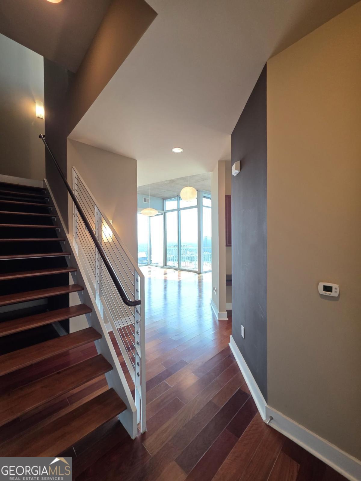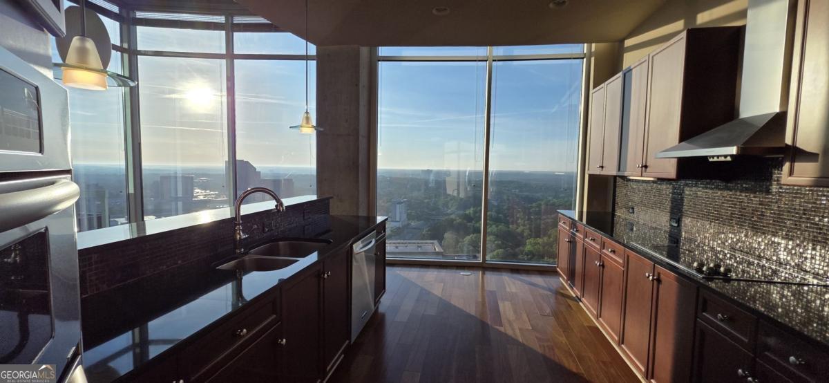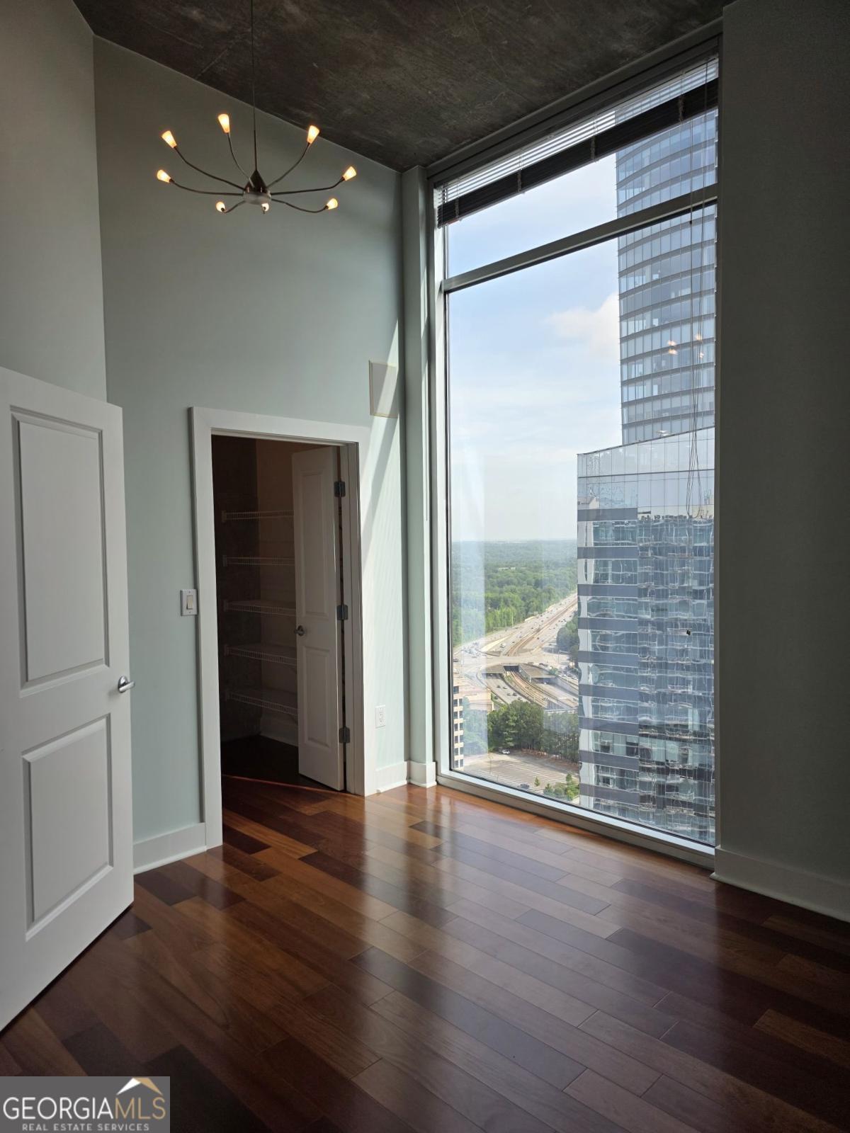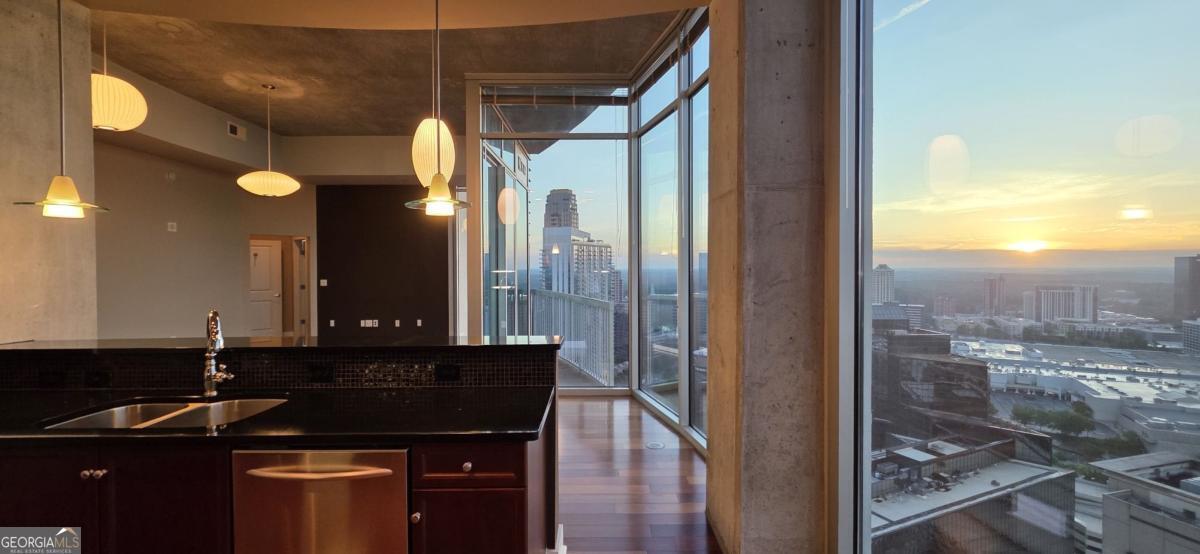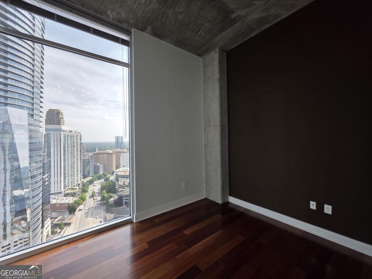 Welcome to this one-of-a-kind two-story penthouse in the heart of Buckhead! It features two bedrooms and two bathrooms with a bonus office/sitting area. The unit comes with a transferable leasing permit, which makes it a great investment opportunity, too. Walking into the main floor, the 12-foot ceiling height makes a big difference immediately with its spaciousness and openness. Floor-to-ceiling windows boast the breathtaking and unobstructed 270 degree view from the 30th floor, showcasing both the city skyline of contemporary Buckhead architecture and the natural beauty of Atlanta's renowned treetop canopy. The cherry on top is the view of Stone Mountain over the horizon where you can see the sunrise every morning. Imagine enjoying breakfast with the golden sunlight filling the property. It warms the soul and melts your heart. The unit faces east and north, which helps to escape the hot afternoon sun during the summer days. The floating staircases lead the way to the master bedroom and its walk-in closet on the second floor with 9 foot ceilings. The entire second floor is a stand-alone structure with no surrounding construction, ensuring peace of mind from neighbor noises guaranteeing the quietest rest. The 300 square foot rooftop balcony offers private sunbathing and the rare sense of owning a piece of the sky with the convenience of city luxury condo living. The space connecting the master bedroom and the rooftop balcony is perfect for a bonus office or sitting area if desired. Beautiful 5" Brazilian cherry hardwood floor throughout the property. Not a singe inch of carpet. The open concept kitchen features granite countertops and upscale cabinetry. The unit has significant storage space in itself, yet still comes with one extra storage unit at the lobby level. The unit includes two best deeded parking spaces, which are close to both the garage gate and the elevators. The parking spaces are separated from the others, so you will never be bothered from neighbors parking too closely. REALM condo services and amenities abound from 24-hour controlled access, security, concierge front desk, and package and mail services. The recently renovated community areas include two well-appointed club houses, a two-story state-of-the-art fitness center, and a rooftop swimming pool, rooftop garden and fire put, and various professional meeting areas. The beautifully landscaped garden in the front of the building centers around waterfall fountains with well maintained flowers and plants. The building also has a dog park for pet lovers. Live a glorious life on the storied Peachtree Road, within walking distance to Buckhead's finest restaurants, coffee shops, shopping centers, grocery stores, hotels, and MARTA allowing easy access to Hartsfield International Airport. The true beauty of this unique property can only be apreciated in person. Schedule a visit to your new home.