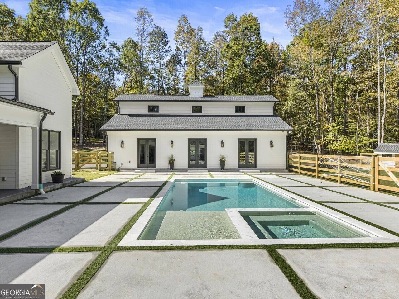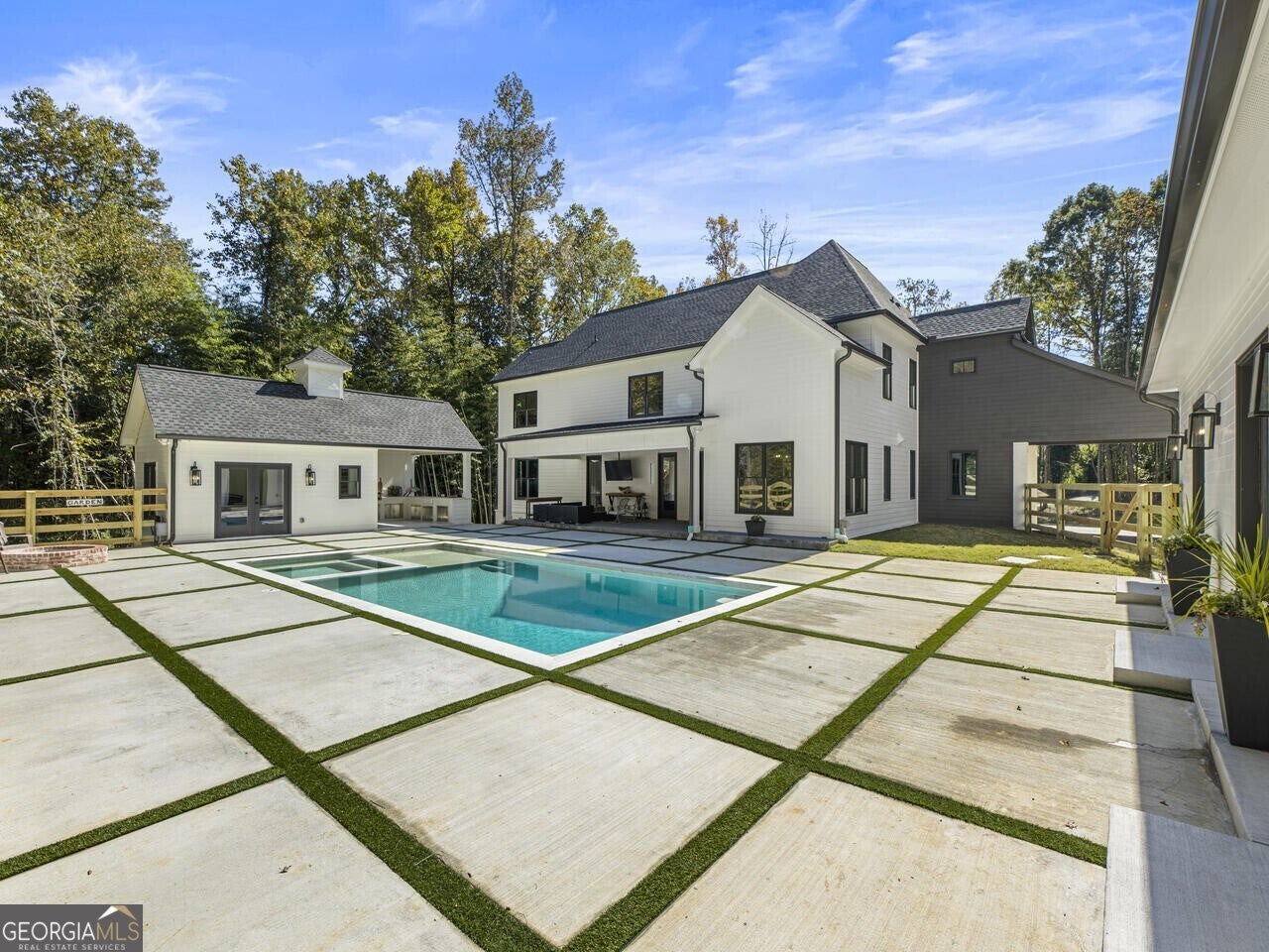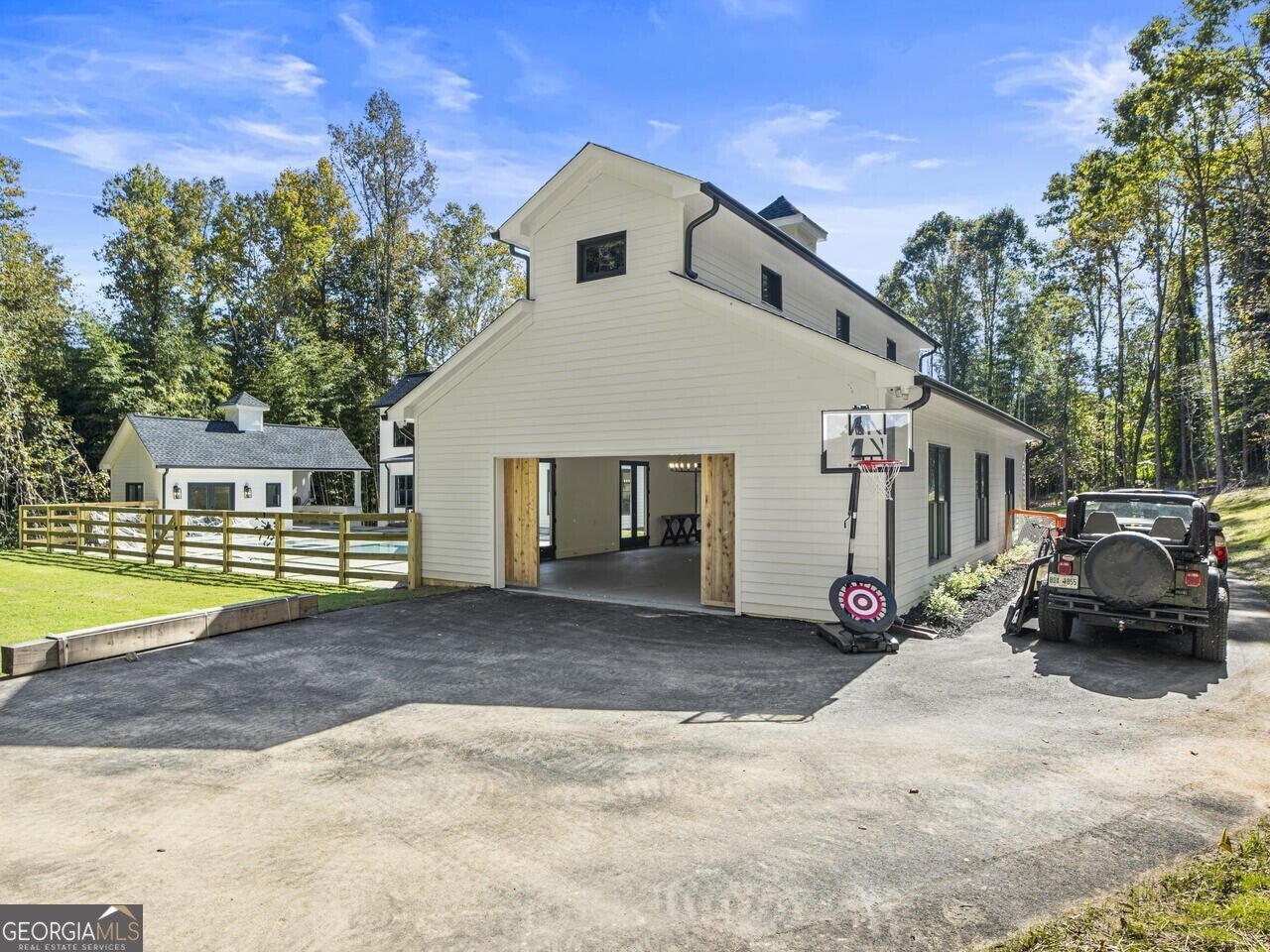 Discover the perfect blend of luxury and tranquility in this stunning custom home situated on 3.8 acres within a gated enclave of just three custom homes. Set on an expansive and beautiful land, this residence offers a retreat while keeping you conveniently close to restaurants, shopping, schools, ball fields and parks all in the Milton community. As you enter, you will be greeted by an open-concept main level designed for modern living and entertaining. The gourmet kitchen is a chef's dream, featuring top-of-the-line Thermador appliances, a spacious backlit kitchen island, and a wine cellar for your collection. The adjoining scullery, mudroom, and breakfast area create a seamless flow, making daily living a pleasure. Step outside from the main level to your covered porch, where you can enjoy serene views over the picturesque backyard, complete with a sparkling pool and a charming guest house that overlooks this inviting outdoor space. Whether you're hosting summer parties or enjoying peaceful evenings under the stars, this outdoor oasis is sure to become your favorite gathering spot and you will truly enjoy cooking and entertaining poolside with the outdoor kitchen. The main level also offers the versatility of an office or additional bedroom, along with a full bathroom for added convenience. Upstairs you find well-appointed secondary bedrooms each with its own private bathroom, and a luxurious primary suite overlooking the tranquil backyard. The spa-like primary bath provides a perfect retreat for relaxation. Venture down to the terrace level, which is partially finished and features a dedicated fitness room, with plenty of potential for further customization to suit your needs. This property is a haven for hobby enthusiasts, boasting a fenced backyard perfect for gardening and a chicken coop to embrace a bit of farm life. The garage is not just for parking-imagine transforming it into a fabulous event space for gatherings and celebrations! Experience the true enjoyment of outdoor living with ample space for trail riding, hiking, and more-all while enjoying the comforts of a beautifully designed home. Don't miss the opportunity to make this the home and lifestyle you've always dreamed of!