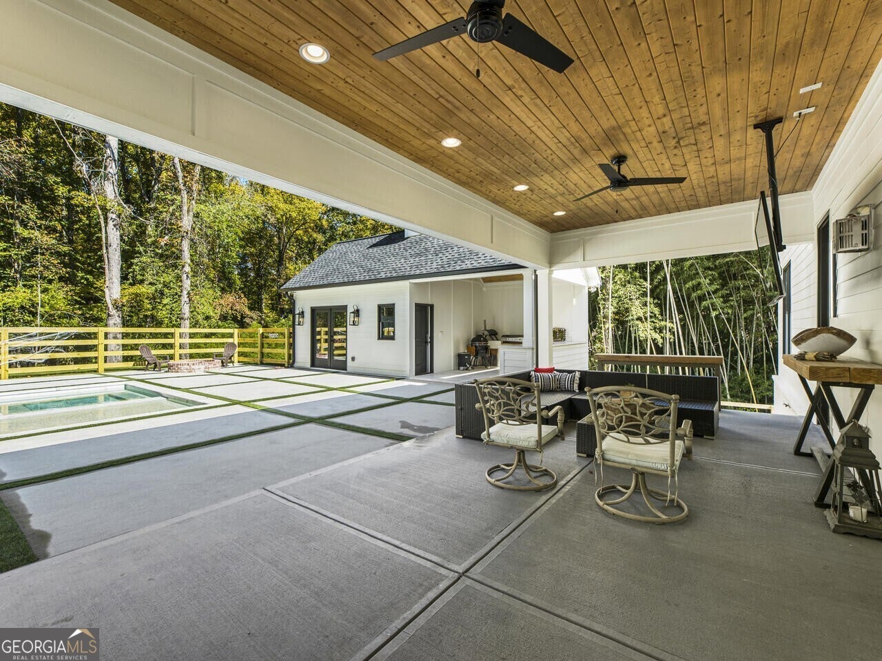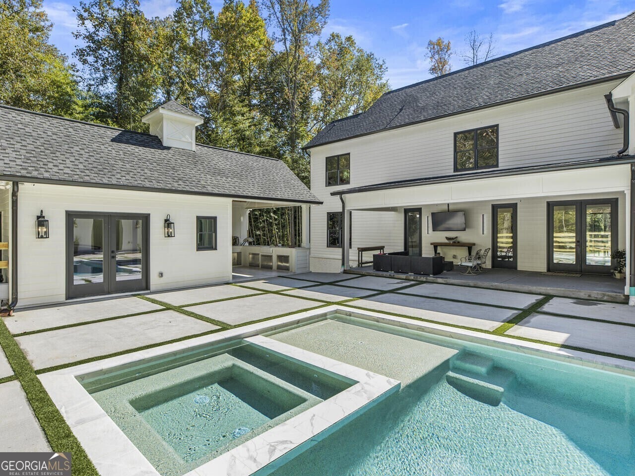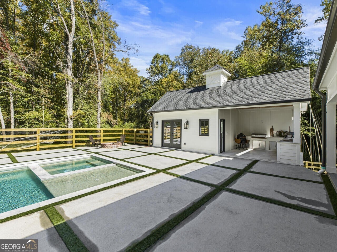 Discover the perfect blend of luxury and tranquility in this stunning custom home situated on 3.8 acres within a gated enclave of just three custom homes. Set on an expansive and beautiful land, this residence offers a retreat while keeping you conveniently close to restaurants, shopping, schools, ball fields and parks all in the Milton community. As you enter, you will be greeted by an open-concept main level designed for modern living and entertaining. The gourmet kitchen is a chef's dream, featuring top-of-the-line Thermador appliances, a spacious backlit kitchen island, and a wine cellar for your collection. The adjoining scullery, mudroom, and breakfast area create a seamless flow, making daily living a pleasure. Step outside from the main level to your covered porch, where you can enjoy serene views over the picturesque backyard, complete with a sparkling pool and a charming guest house that overlooks this inviting outdoor space. Whether you're hosting summer parties or enjoying peaceful evenings under the stars, this outdoor oasis is sure to become your favorite gathering spot and you will truly enjoy cooking and entertaining poolside with the outdoor kitchen. The main level also offers the versatility of an office or additional bedroom, along with a full bathroom for added convenience. Upstairs you find well-appointed secondary bedrooms each with its own private bathroom, and a luxurious primary suite overlooking the tranquil backyard. The spa-like primary bath provides a perfect retreat for relaxation. Venture down to the terrace level, which is partially finished and features a dedicated fitness room, with plenty of potential for further customization to suit your needs. This property is a haven for hobby enthusiasts, boasting a fenced backyard perfect for gardening and a chicken coop to embrace a bit of farm life. The garage is not just for parking-imagine transforming it into a fabulous event space for gatherings and celebrations! Experience the true enjoyment of outdoor living with ample space for trail riding, hiking, and more-all while enjoying the comforts of a beautifully designed home. Don't miss the opportunity to make this the home and lifestyle you've always dreamed of!