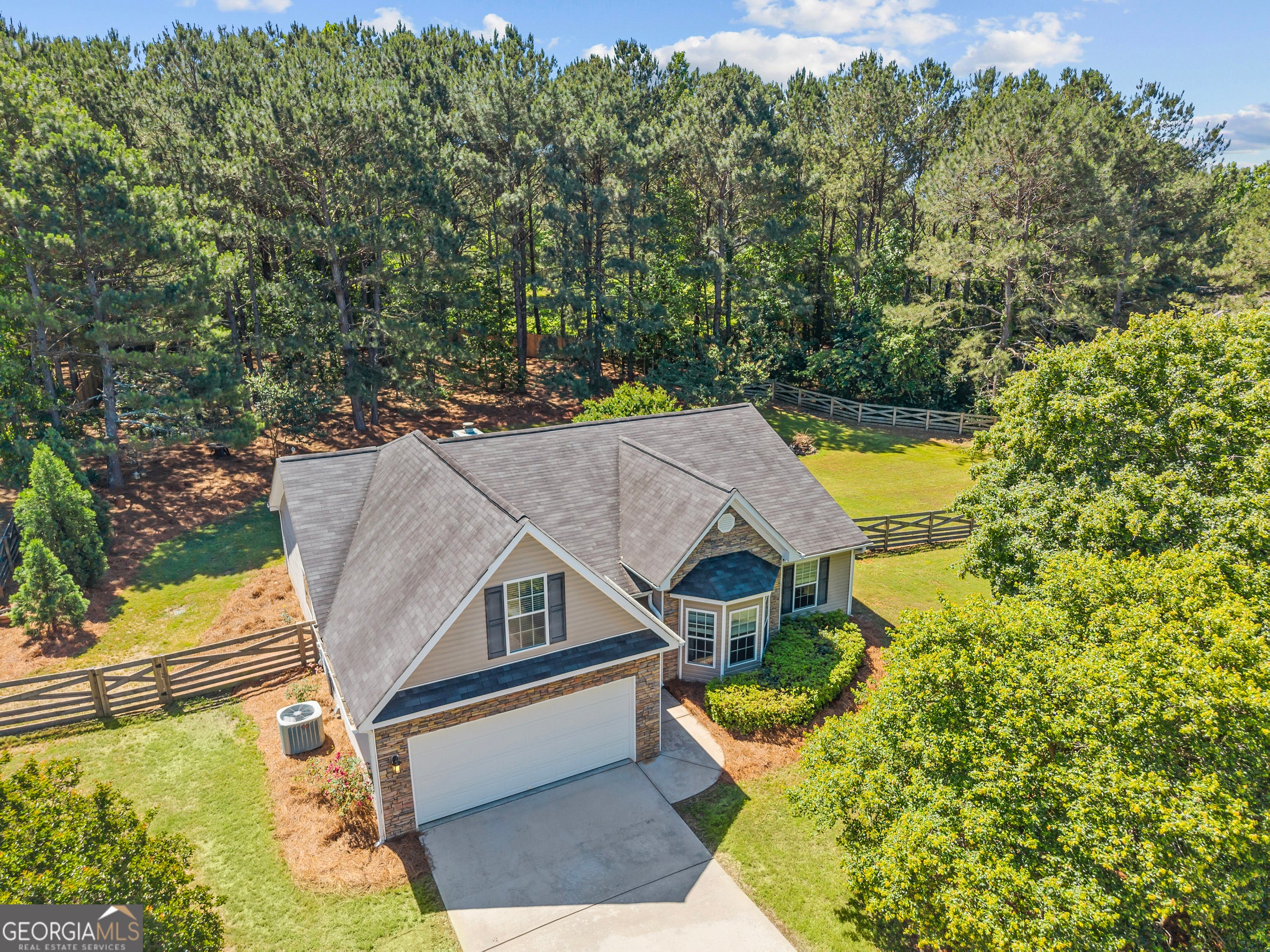 Quiet one level living less than half a mile from Sugar Marina on beautiful Lake Oconee. This 3-bedroom, 2 bath home sits on a large corner cul du sac lot featuring beautiful manicured front lawn and fully fenced spacious backyard. An open floor plan offers charming living space and dining area with tons of natural light pouring through the bay window. Kitchen features granite countertops and stainless appliances with built-in microwave. Large bonus room is situated over the two-car garage providing additional living or storage space. Stone paved patio extends the length of the home in the back overlooking a private backyard perfect for pets or children to safely play. Established fire pit with loads of gardening potential. Easy access through double-side gate. This single-owner property is well maintained. New water softener and drainage system. Country living at its best! No HOA. Close to Madison and Greensboro for restaurants and shopping with easy access to I-20. Also less than half a mile from Sugar Creek Marina!