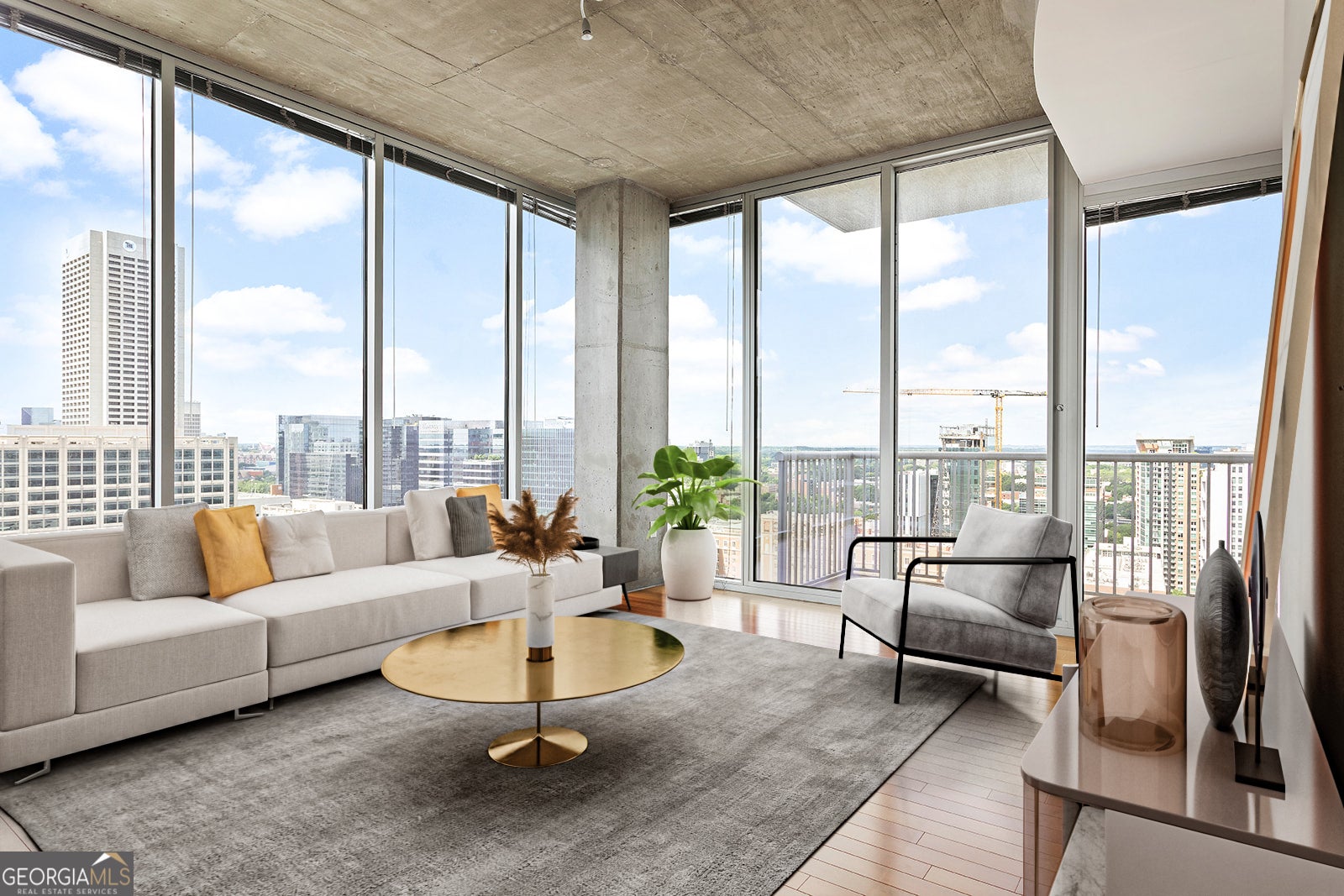 Light-filled corner Viewpoint condo with expansive skyline views from the 22nd floor! Welcome to 855 Peachtree St NE, Unit 2203 in lively Midtown, Atlanta. This 2 bed 2 bath condo has floor-to-ceiling windows and tons of natural light for that feeling like youCOre up in the clouds. High-ceilings, hardwood floors and exposed concrete walls sets the tone for a sleek modern environment but with a blank canvas for your design touches. The kitchen welcomes you with granite countertops, a beautiful island facing the city views, stainless steel appliances, ample wooden kitchen cabinets, breakfast bar and adjoining dining room. Open concept living room allows for access to skyscraper views from every angle, including the balcony. The primary bedroom suite features a spacious tiled shower with glass enclosure, separate soaking tub and double vanity plus a large walk-in closet with a custom-built wooden closet system. The guest bedroom has direct access to a full bathroom complete with a linen closet. A separate laundry room provides storage with thoughtfully installed shelving. With 2 dedicated parking spaces, parking is easy, secure and convenient. Viewpoint boasts a 2-story gym, rooftop heated pool, club lounge perfect for your next birthday party, business center, pet walk, theater room, fireside outdoor lounge, grilling kitchen, 24/7 concierge, and on-site management team. Located in the heart of vibrant Midtown, Atlanta, the Viewpoint is neighbor to top-rated dining, shopping, MARTA, The Beltline, Piedmont Park, Georgia Tech and grocery stores, not to mention races, neighborhood festivals and parades you can view from your balcony or step out of the building and be in the middle of the fun!