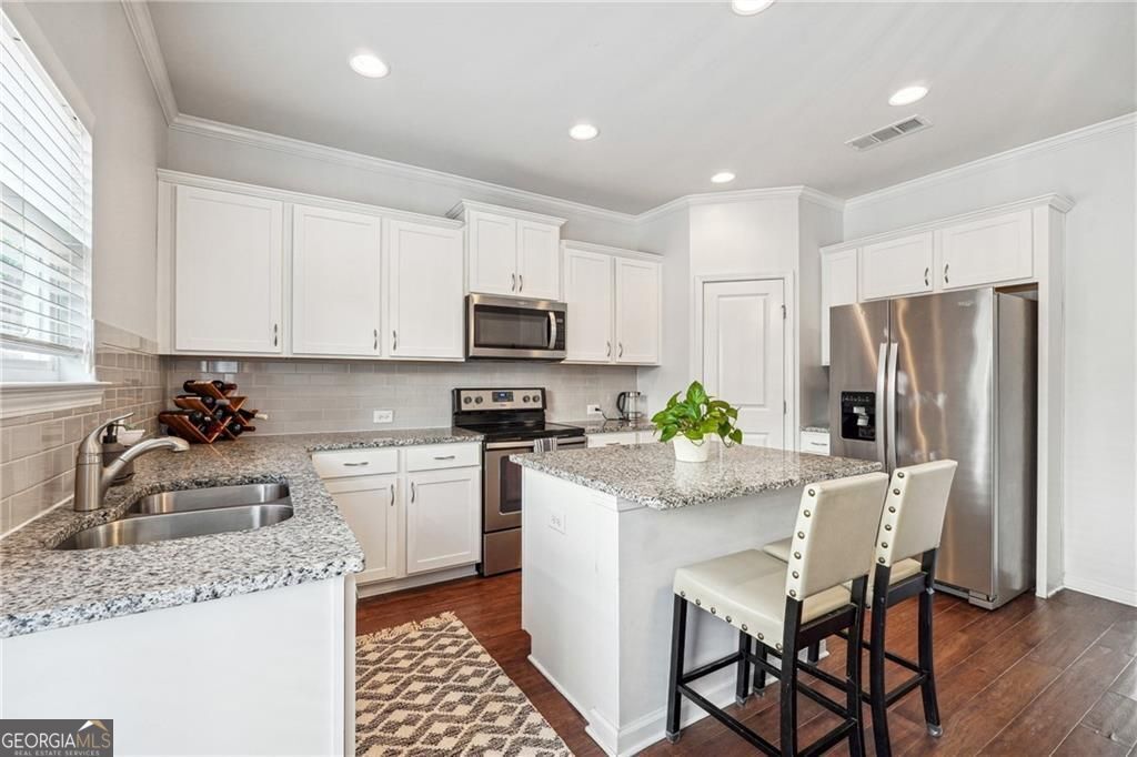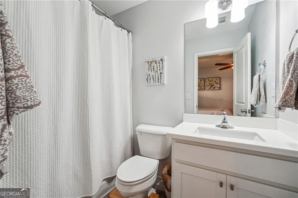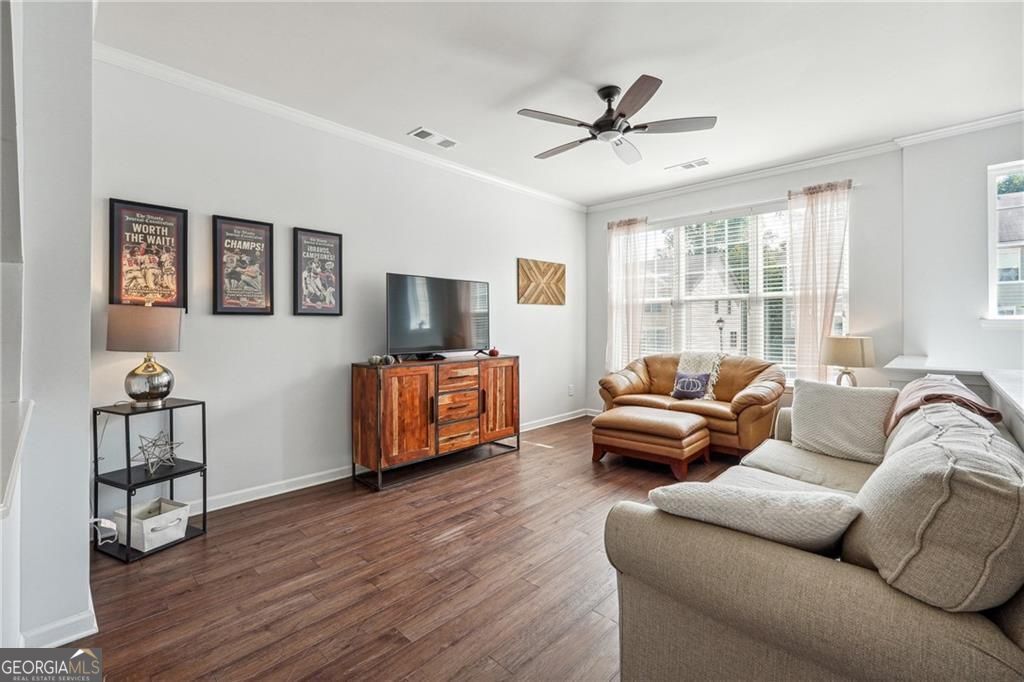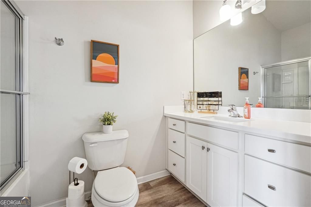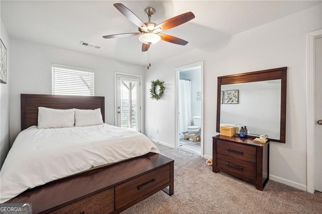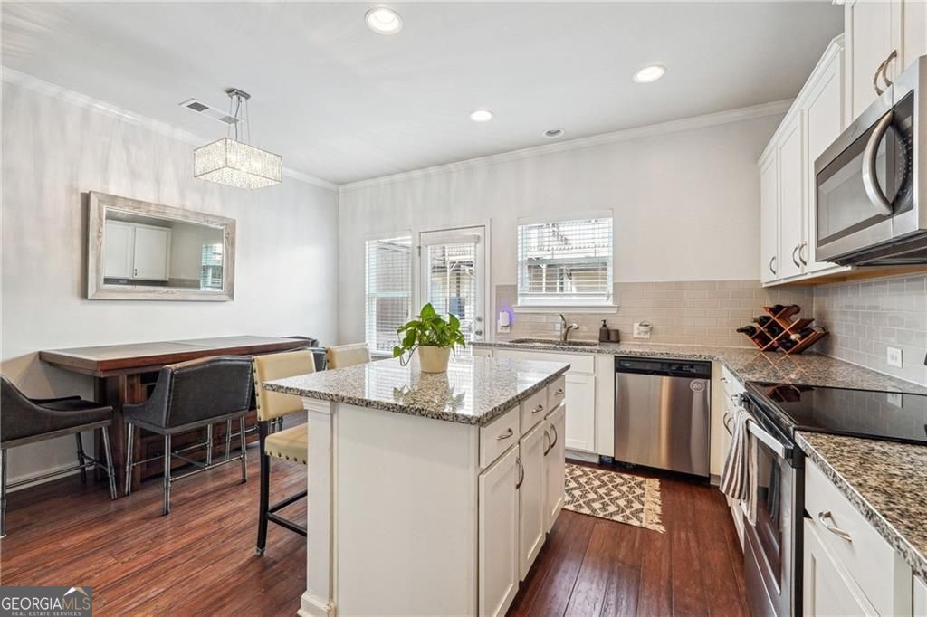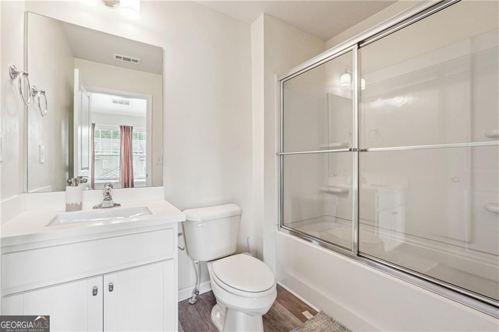 This beautifully maintained townhome was built in 2018. Much newer than most of the homes in the community! It is ideally located at the back of the community offering more privacy. The spacious kitchen is designed with both style and function in mind, featuring abundant storage, a pantry, and a designated dining area. The large granite island is perfect for casual gatherings, while the stainless steel appliances and engineered hardwood floors add a modern touch to the main living space. Step outside to the back deck and enjoy relaxing spring evenings. Upstairs, you'll find two generously sized bedrooms, each with its own en-suite bath, as well as a conveniently located laundry room. The lower level features a third bedroom, complete with a full bath and private entrance-ideal for use as an office or guest suite. The attached one-car garage provides additional storage and privacy. The gated Liberty Park community offers a manned guardhouse, a resort-style pool, and a dog park. Located near new developments like The Works, Bellwood Quarry Park, Scofflaw Brewery, and TopGolf, this home is just minutes from the BeltLine and provides easy access to downtown, Midtown, and Buckhead. With quick access to I-75 and I-285, it's a perfect spot to enjoy everything Atlanta's Westside has to offer!