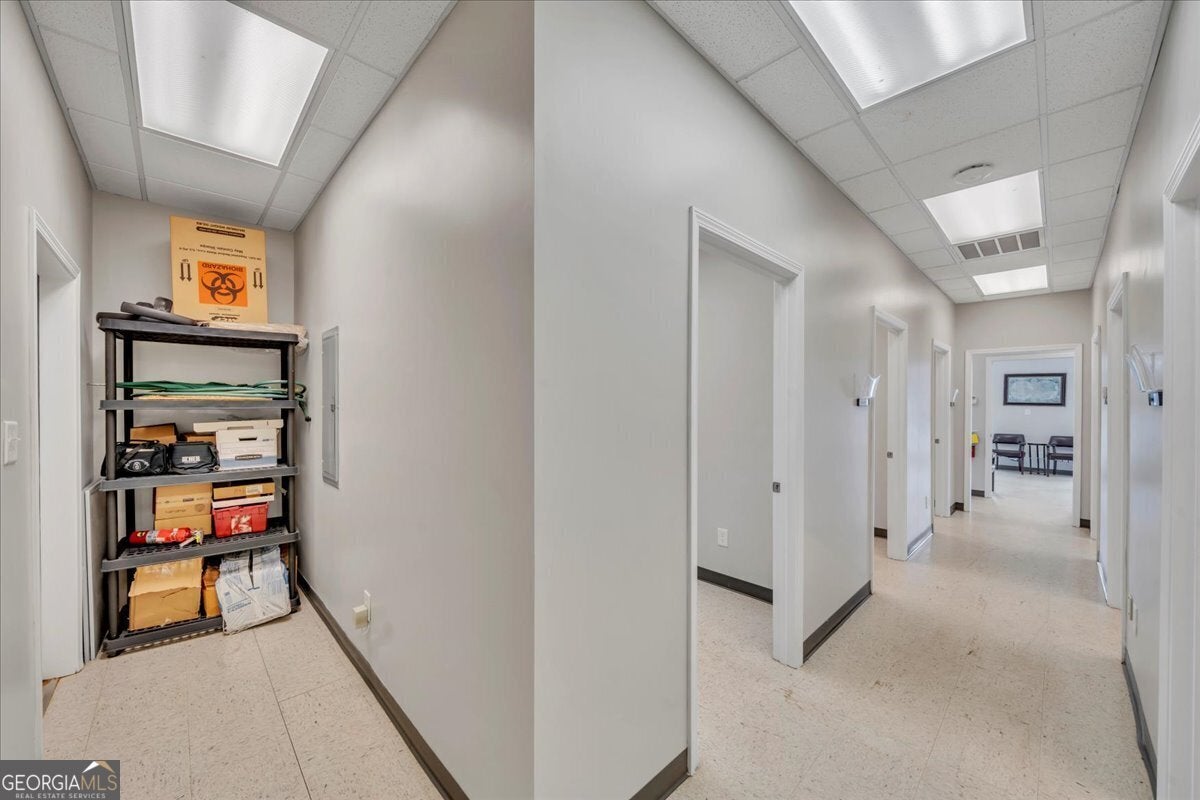Super Nice, Unique Medical Office!! GREAT LOCATION in the middle of very popular area close to Watson Blvd!! Corner unit / large space, windows in front and side wall, high visibility access from main road , new roof Multi car parking in front Unit consists of large reception room 6 Exam rooms with ENT scopes 3 restrooms Private doctor's office with attached shower Unit / Sample closet , Employee break room with dining table, chairs, refrigerator/freezer unit, hand washing, kitchen sink, microwave