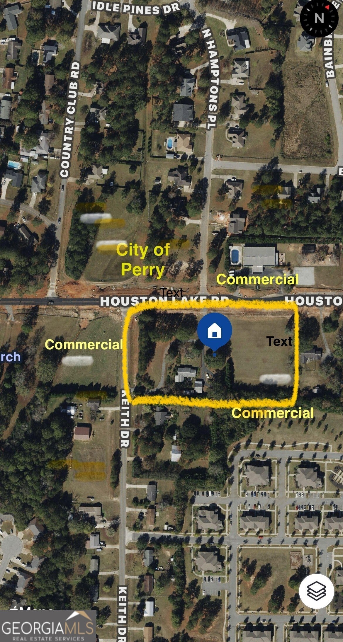 Great commercial location. Property is over 3.5 ares in size with over 500 ft of road frontage on Houston Lake Rd, and 270 ft on Keith Dr. Total of 3 driveways, 2 on Houston Lake and 1 on Keith. Brick well Maintained brick home possible office building or retail store. Currently has large den, eat in kitchen formal dining room, 3 bedrooms, 2 baths, large sunroom. Circular drive from Houston Lake to Keith. Several outbuildings. Purchaser to have rezoned for their specific use.