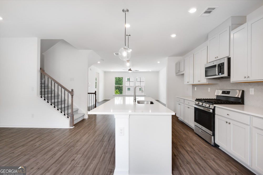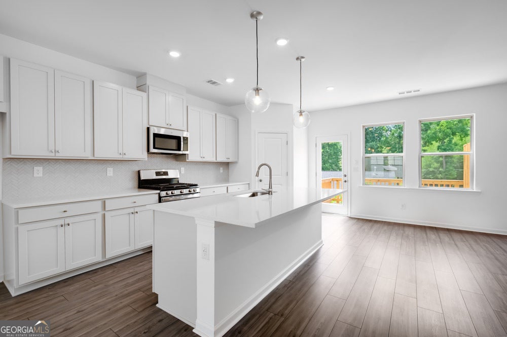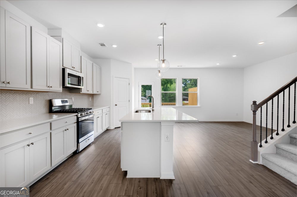New Construction - Ready Now! Built by America's Most Trusted Homebuilder. Welcome to the Reynolds at 1713 Lansmere Street SW in Hampton Trace! Nestled in a prime location near Fulton County Airport, Hampton Trace makes travel effortless. Enjoy easy access to nearby parks like Cobb County's Hurt Road Park and Tramore Park. Spend your evenings around the outdoor fire pit with friends and family, while your pets enjoy the dedicated dog park for off-leash fun. Spacious common areas offer the perfect setting for picnics, outdoor games, or simply relaxing in the sun. The Reynolds townhome offers a flexible, open layout ideal for any lifestyle. The ground floor includes a bedroom with en-suite bath and backyard access. On the main level, a modern kitchen flows into the dining and gathering areas, with access to a private deck. Upstairs, enjoy a spacious primary suite with a walk-in closet and luxe bath, plus two additional bedrooms and a laundry room. Additional highlights include: open railing at first floor and LVP stair treads. MLS#10521887