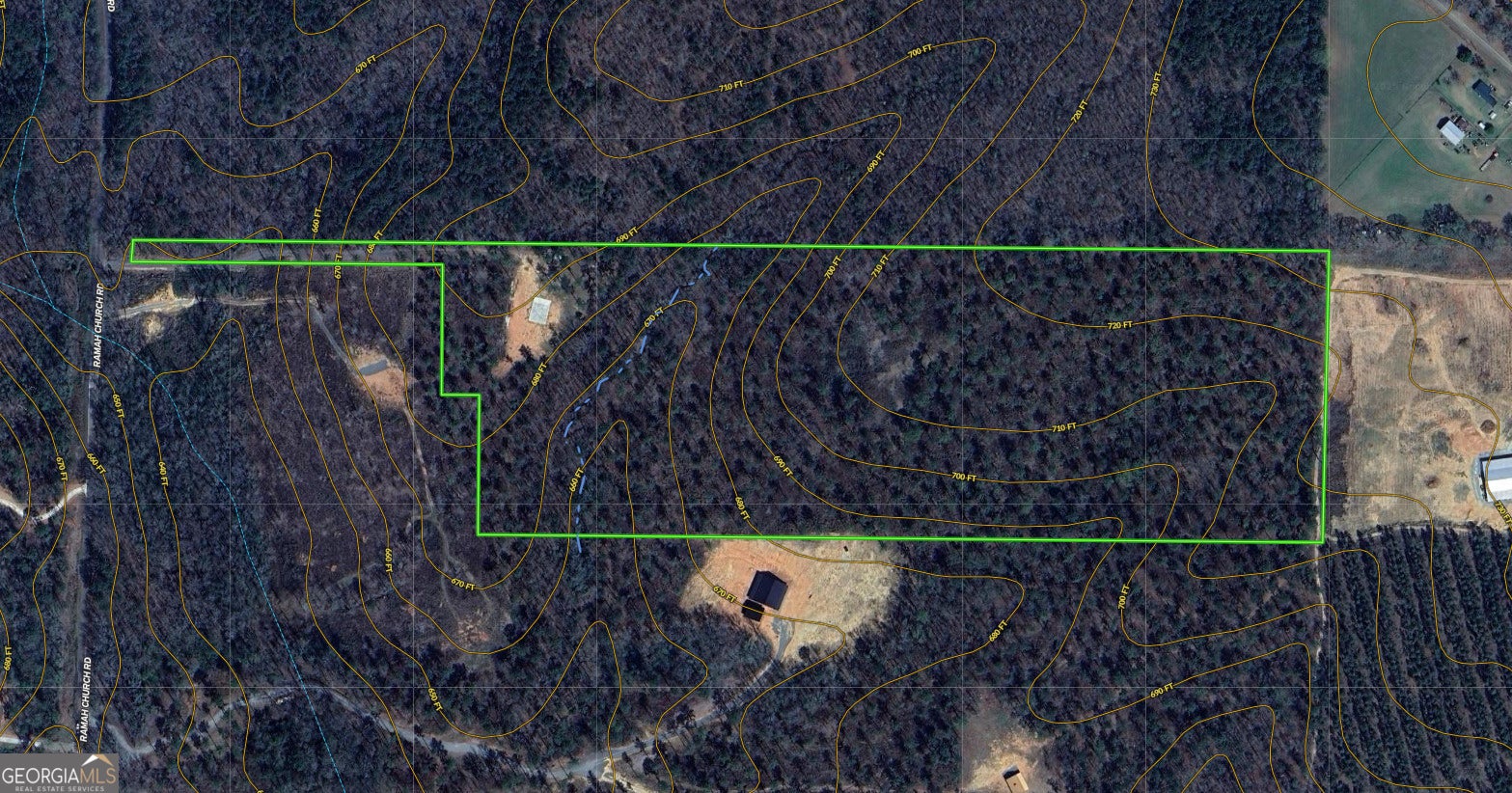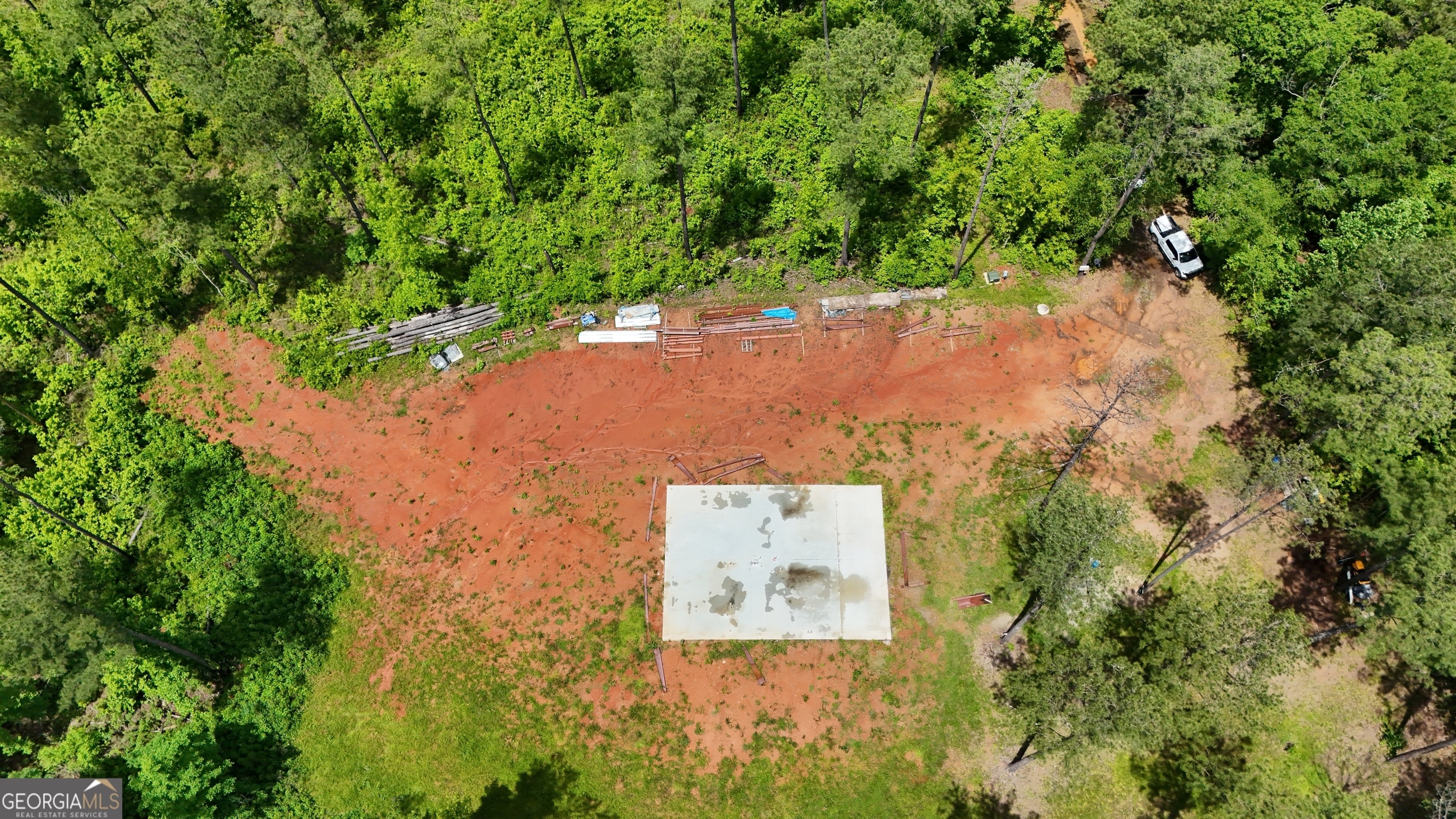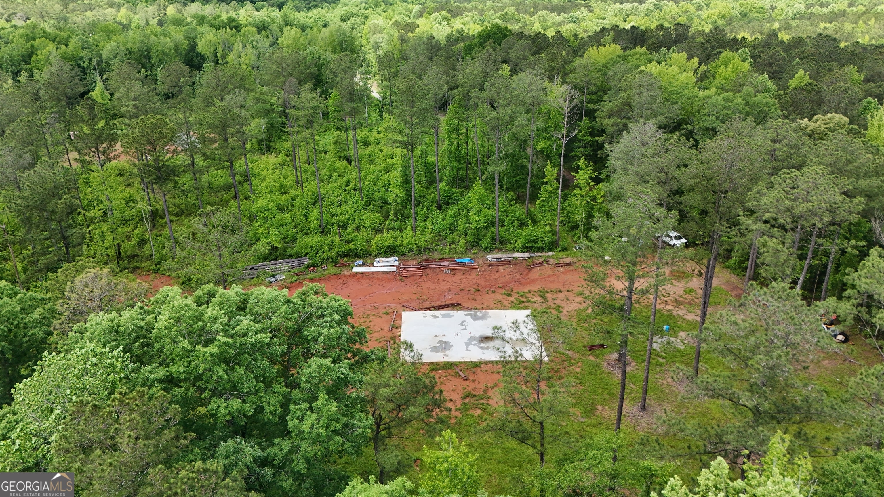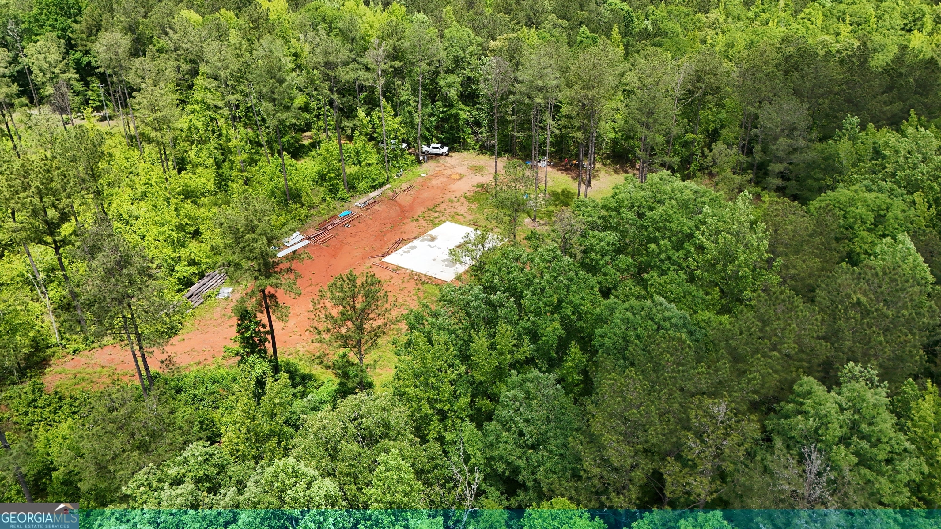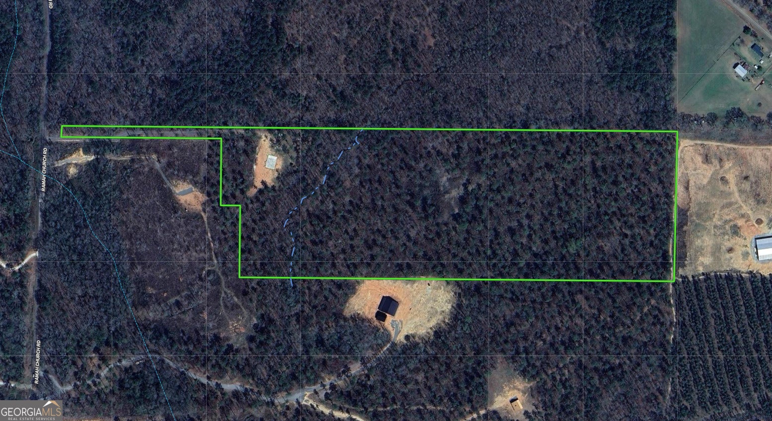 This 30.8 acre tract in Lamar County offers a head start for your dream home or weekend retreat, with several major improvements already in place. Tucked off Ramah Church Road, this property features an established gravel driveway that offers privacy, along with a poured concrete slab ready for a pre-fabricated metal barndominium (building materials are included in the price). Essential infrastructure is already in place: power and fiber internet are on-site, along with a brand new well and septic system. The land features a beautiful mix of mature pine and hardwoods, along with a peaceful creek meandering through the property. Whether you're looking to build now or invest in a ready-to-finish getaway, this property is primed for your vision. Bring your builder and make it yours.