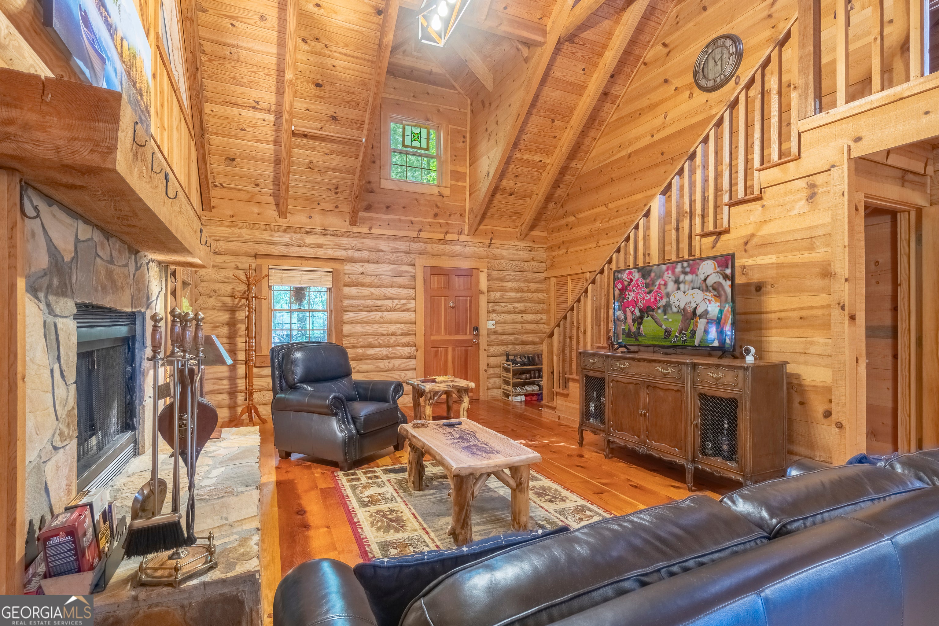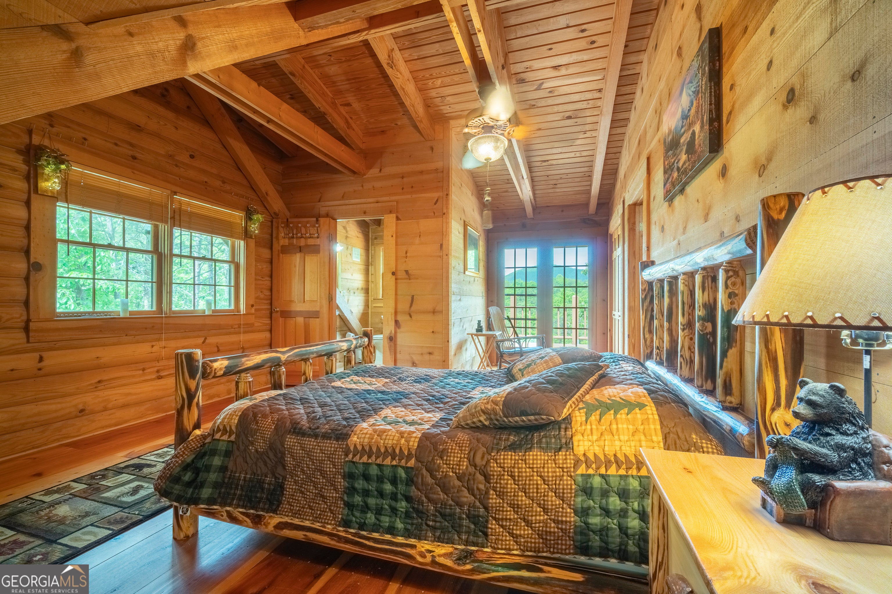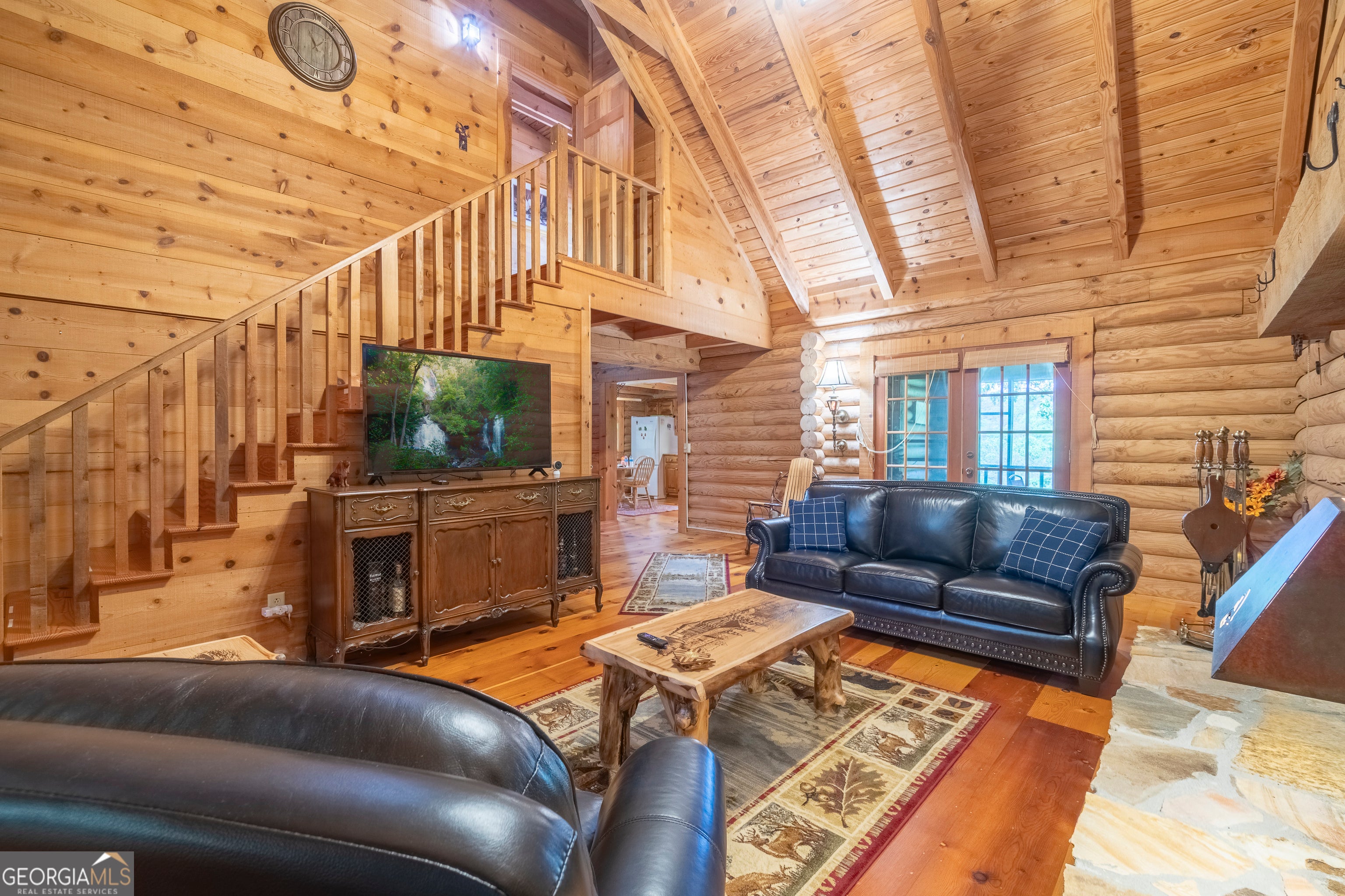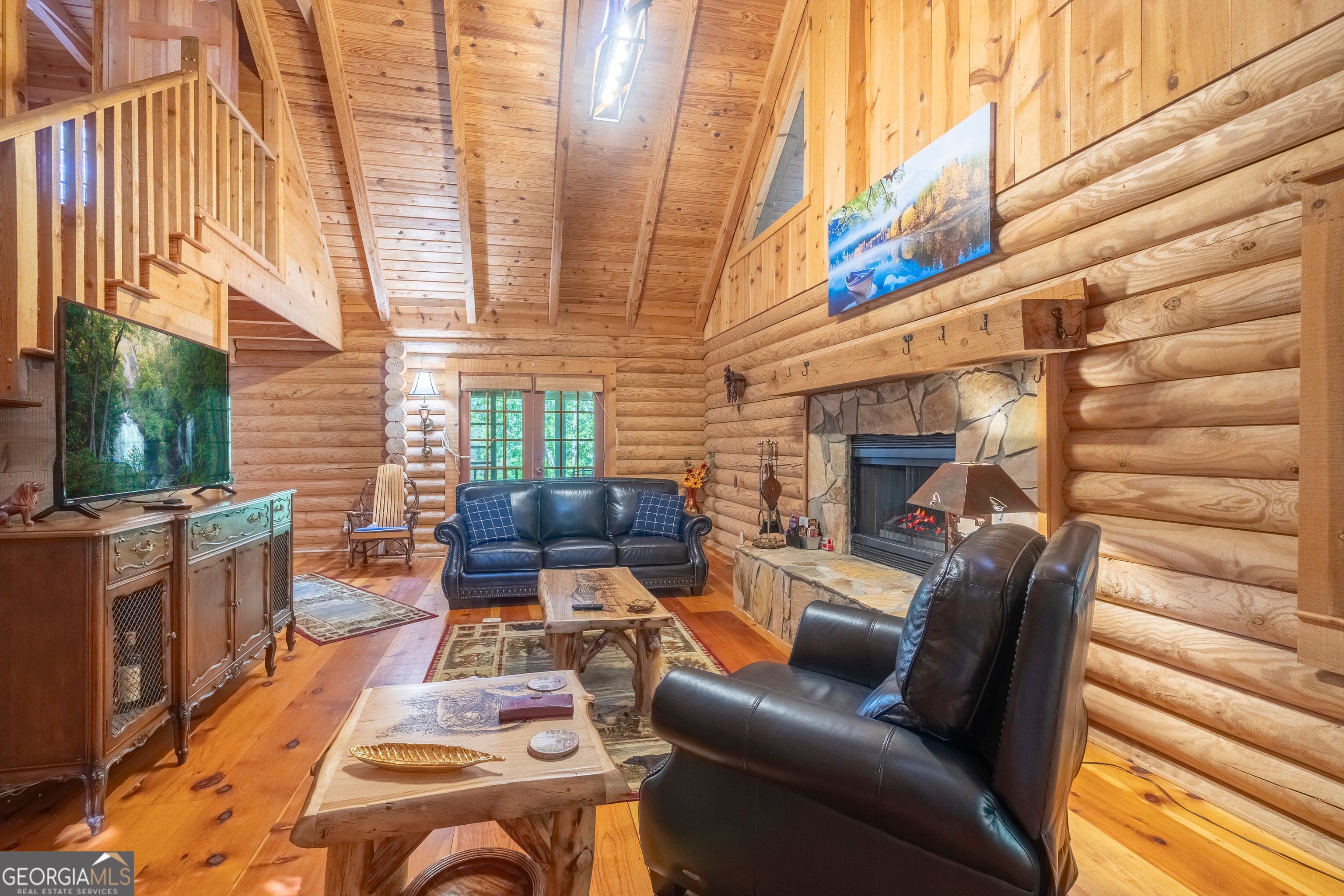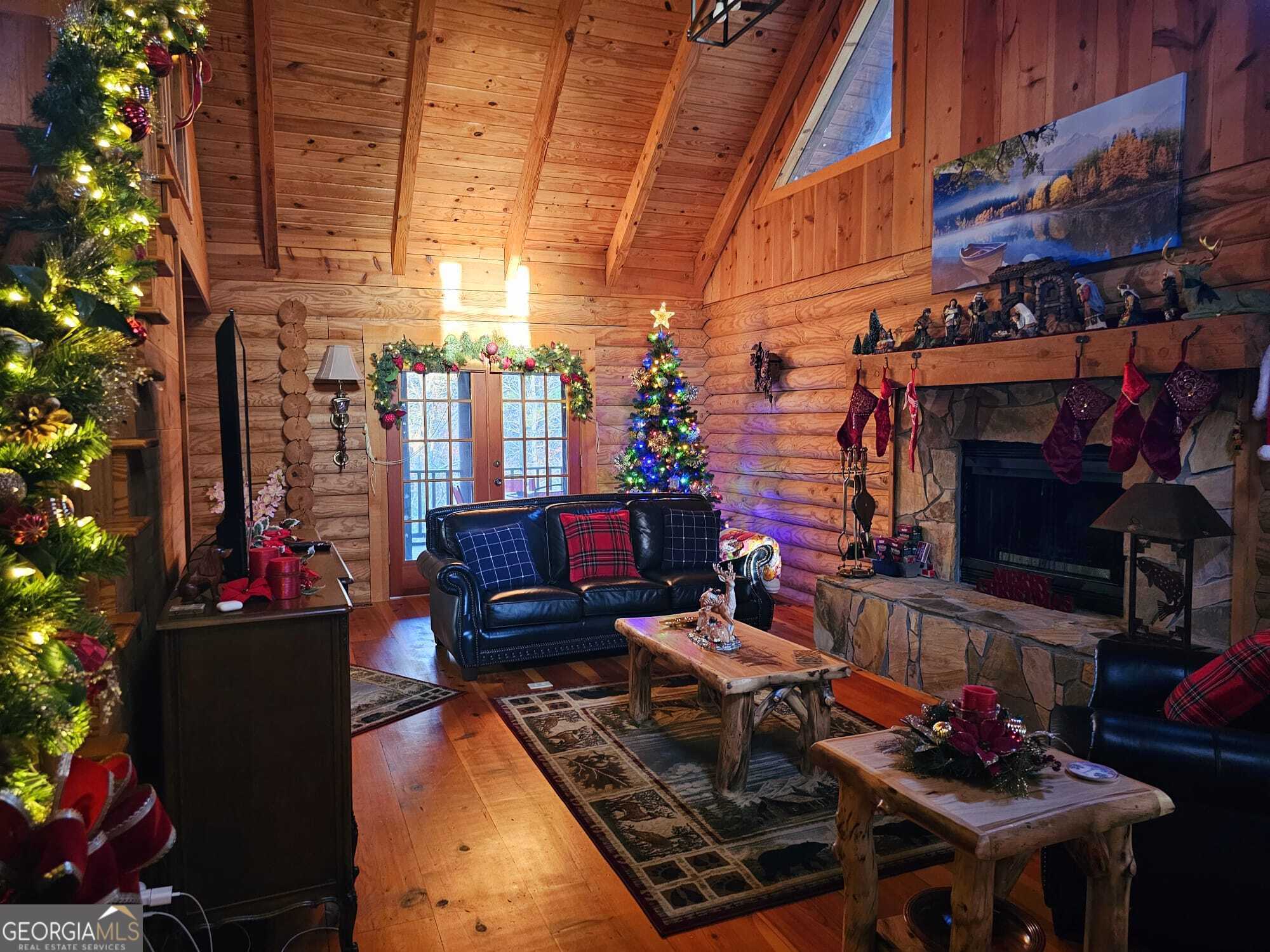 Come to the Skylake Community to relax in this traditional log cabin nestled in the woods. The newly poured pull through driveway makes for easy access and the exterior has been recently stained. Sit outside on the abundant decks to enjoy the flora and fauna and the sounds of nature. Inside you are greeted with a magnificent wood interior of hardwood floors, log exterior walls, and wooden beamed ceilings. A woodburning fireplace is the focal point of the Great Room making for a cozy setting on those winter days. The kitchen is spacious with a dining area and access to the screened in porch making it easy to entertain or to just sip on a warm cup of coffee and enjoy the view. The bedroom and bath on the main floor make one level living possible. The open stairway leads you up to another bedroom with its own bathroom and deck. Downstairs is an open concept that is separated by the stairway. It is currently used as another bedroom while still having plenty of space for a multi-purpose room. The recently installed Berber carpet keeps you toasty in the winter and the woodburning stove just adds to its charm. Using this as a second home? The furniture can be included. Skylake has hiking trails, tennis courts, pickle ball courts, clubhouse, two lakes, swimming pool, park and playground, just to name a few of the amenities. Convenient to Helen, Unicoi and Smithgall State Parks, Hardman Farm, and Sautee Nacoochee Arts Center among other local activities. Septic permit is for two bedrooms.
