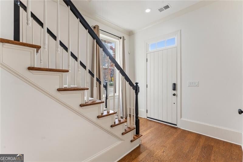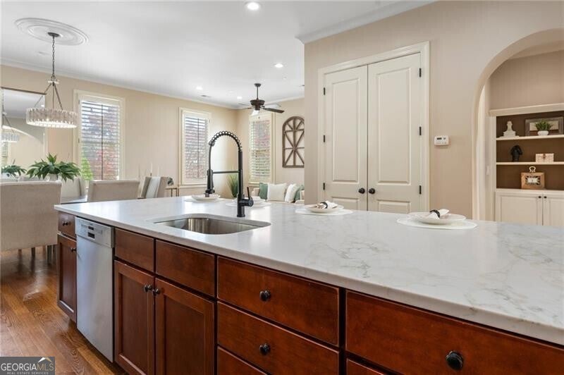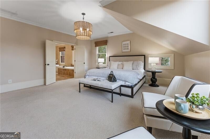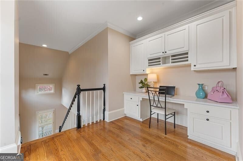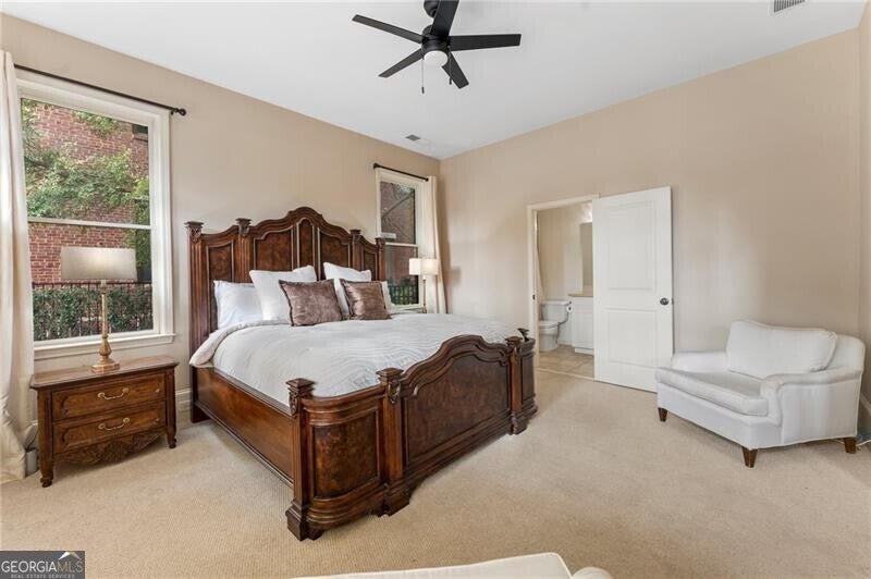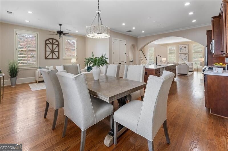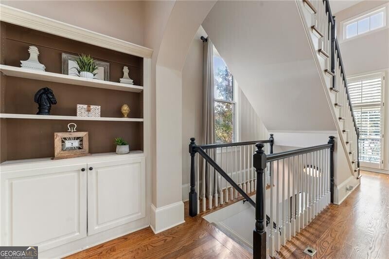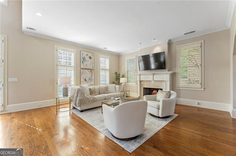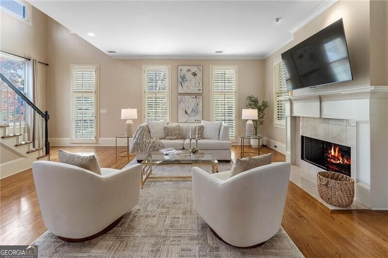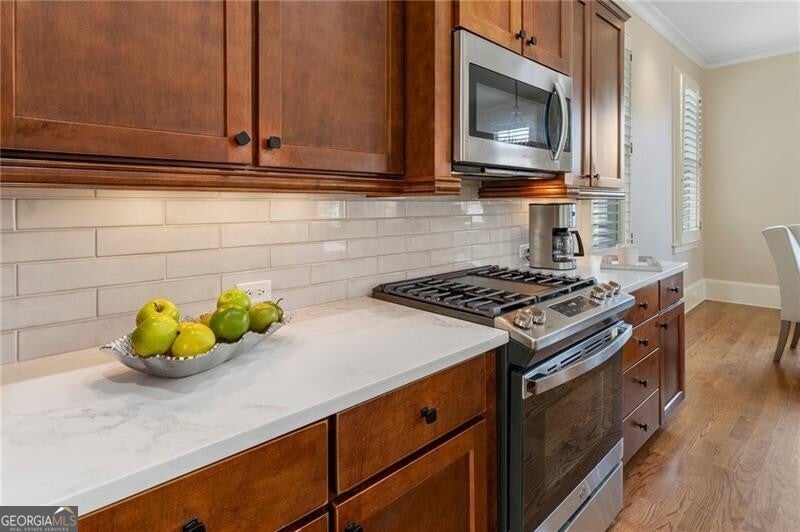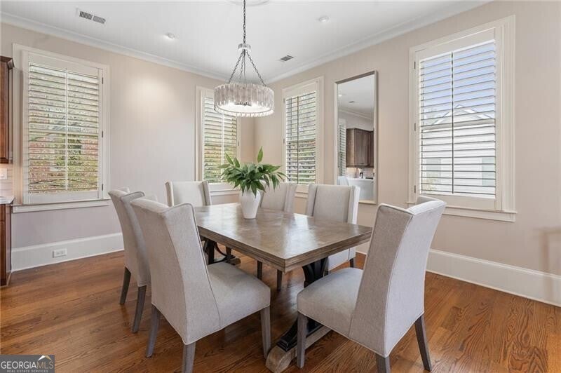 Back on Market at no fault of Seller! Live the Coveted Crabapple Lifestyle. Welcome to one of the original-and rarely available-brownstones in the heart of the Crabapple Market District. This exceptional, all-brick detached home offers timeless charm, thoughtful updates, and unbeatable value compared to nearby new construction townhomes priced around $1.5 million. With 2 spacious bedrooms, 2.5 baths, and generous living areas, this home also features a versatile loft/office with built-in workspace. Enter through a charming gated front courtyard or via the rear-facing 2-car garage into a welcoming two-story foyer. The ground level includes a large guest suite with a full bath-ideal for visitors or multi-generational living. Upstairs, the main living area is bathed in natural light and features 10+ foot ceilings, hardwood floors, and floor-to-ceiling windows with elegant plantation shutters. The gourmet kitchen has been tastefully upgraded with honed Michelangelo quartz countertops, a stylish new backsplash, and a brand-new gas range. Adjacent spaces include a warm fireside great room, a large dining area, and a cozy keeping room-perfect for entertaining. The top floor is dedicated to the oversized primary suite, complete with an expansive custom walk-in closet, a spa-inspired bathroom with a double vanity, soaking tub, walk-in shower, and updated countertops. A separate laundry room and a sunny loft/office complete the upper level. Other highlights include: Four-sides brick construction with no shared walls; Newer systems (roof 3 years old, newer HVAC, water heater 2019); Finished garage floor with $7,500 in custom built-ins for optimal storage; Fully fenced yard; and HOA covers all yard maintenance for $650/quarter. All of this, just steps away from dozens of shops, restaurants, fitness studios, and healthcare providers. Crabapple is more than a neighborhood-it's a vibrant community. This is an investment in your quality of life - come see for yourself what makes this home and lifestyle so special.