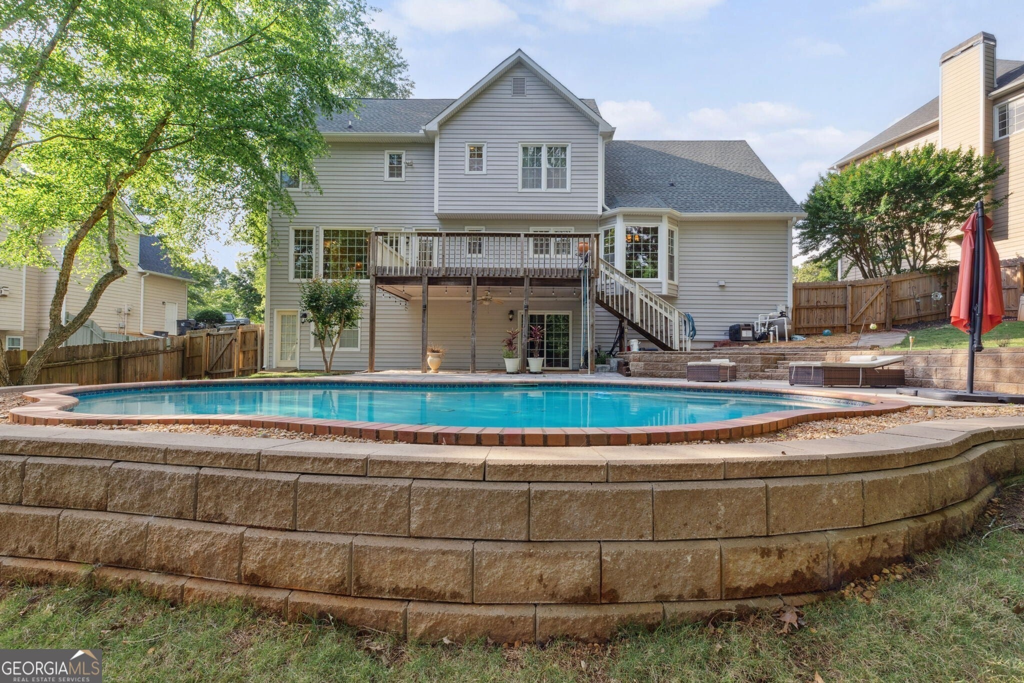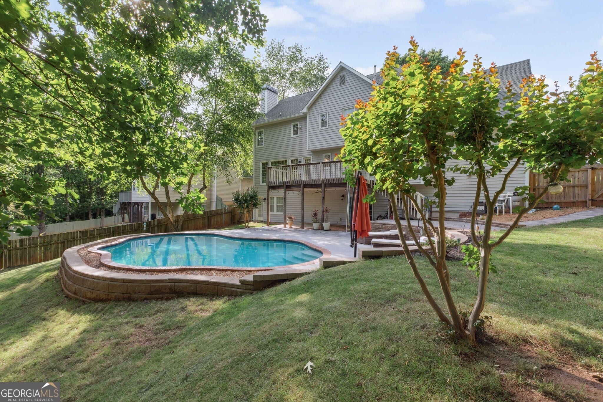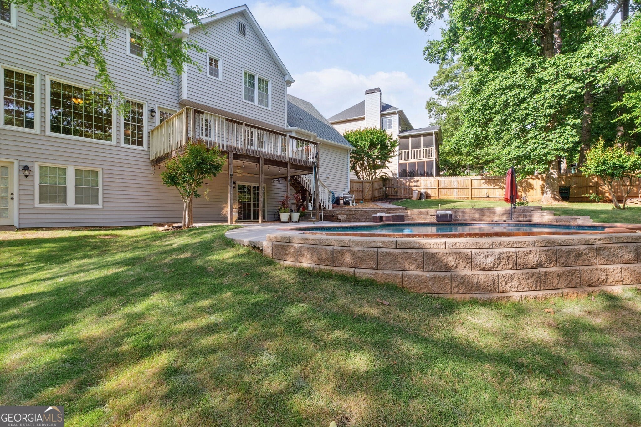 Welcome to 1300 Sever Woods Drive, a true hidden gem nestled in the heart of Lawrenceville! This beautifully maintained home offers a rare stunning heated gunite in-ground pool, perfect for making lasting summer memories in your own private backyard oasis. Step inside to find a spacious and thoughtfully designed layout featuring a fireside family room with built-ins, a separate formal living room and dining room adorned with elegant wainscoting, and gleaming hardwood floors throughout the main level. A beautiful updated kitchen with granite countertops, large island, plenty of cabinet and counter space, open to a sun-lit breakfast room with bay windows overlooking a lush backyard. Upstairs, the owner's suite offers a peaceful retreat with a trey ceiling and a spa-like bath featuring a double vanity, relaxing garden tub, and separate shower. You'll also find generously sized secondary bedrooms, each with ample closet space. The fully finished basement with updated floors expands your living space dramatically, featuring a full bathroom, media room, and multiple flexible areas perfect for recreation, guests, a home office, or extra storage. Walk right out to the covered patio and enjoy seamless access to the pool and fenced, wooded backyard, offering both privacy and serenity. Centrally located with quick access to Hwy 316, I-85, Sugarloaf Mills Shopping Center, Hospitals, parks, schools, and more. Come see why 1300 Sever Woods Drive is the perfect place to call home!