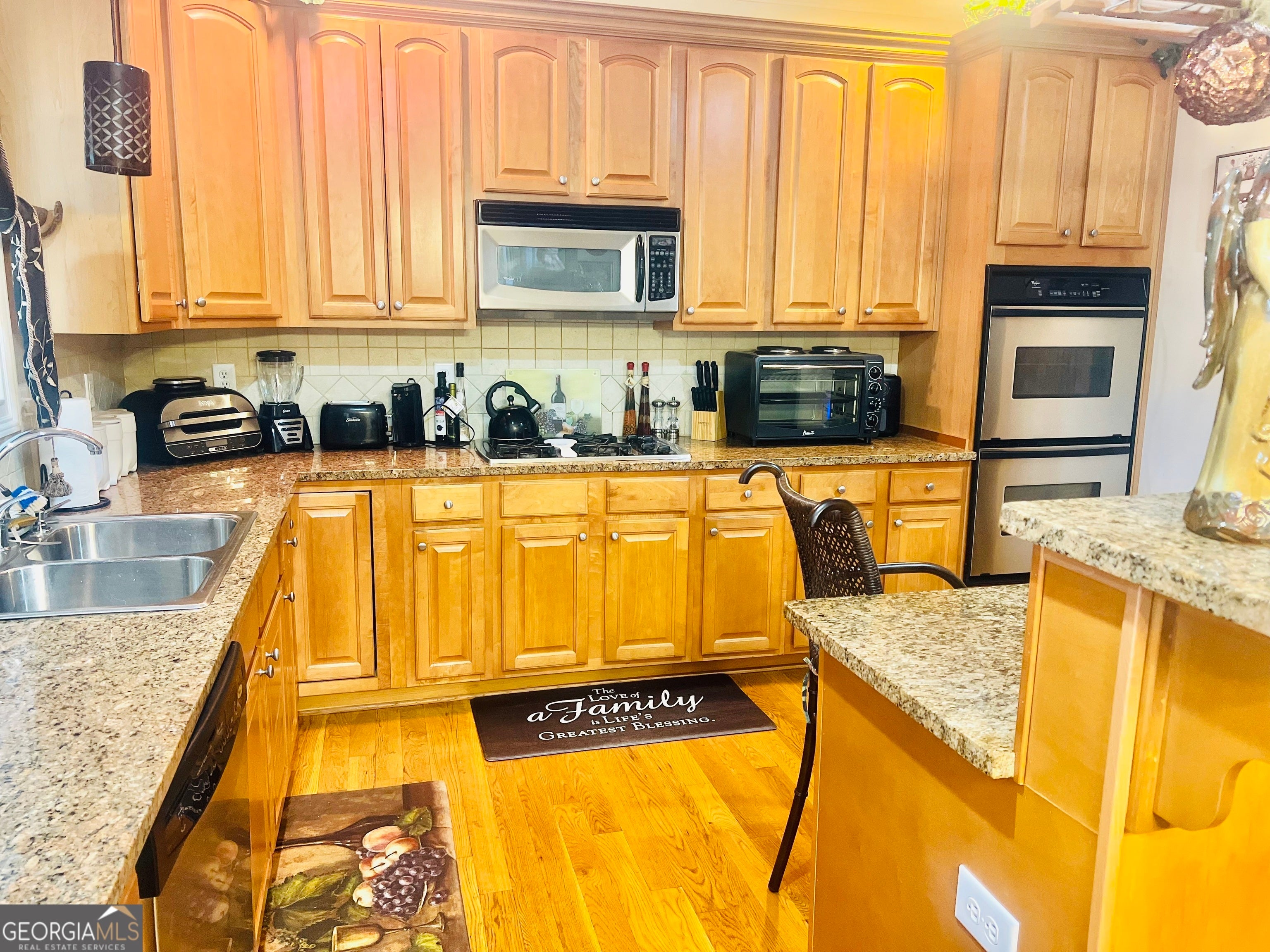 - AppliancesCooktop, Dishwasher, Disposal, Double Oven, Gas Water Heater, Ice Maker, Microwave, Stainless Steel Appliance(s)