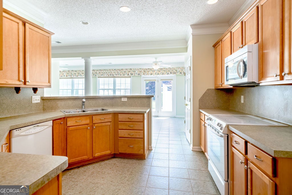 Welcome to this beautifully maintained 2-bedroom, 2-bath ranch-style home in the desirable Emory Springs neighborhood of Fayetteville, across the street from Piedmont Fayette Hospital. Offering 2,343 square feet of comfortable living space, this home features an open-concept kitchen that flows into the living room, complete with a gas fireplace-perfect for everyday living and entertaining. A separate office provides a quiet space for work or hobbies. The spacious main bedroom includes a private ensuite with a soaking tub, double vanity, separate shower, and an oversized closet. The secondary bedroom is located at the front of the home, adjacent to a full bath-ideal for guests or additional household members. Enjoy the sunroom overlooking the backyard, which leads to a serene outdoor area designed for easy maintenance. Lawn care is included in the Emory Springs community, giving you more time to enjoy the peaceful surroundings. A 2-car garage provides ample parking and storage. This home offers the perfect blend of convenience, comfort, and low-maintenance living in a prime Fayetteville location.