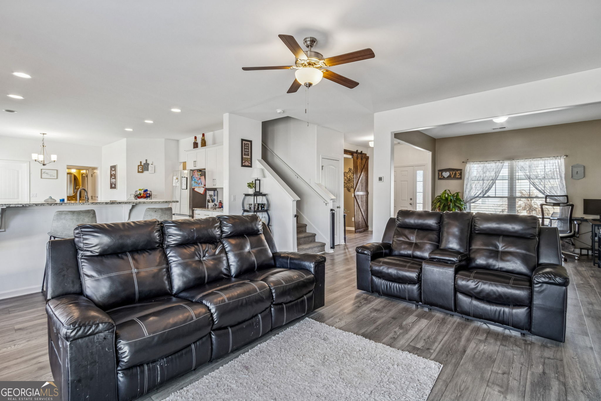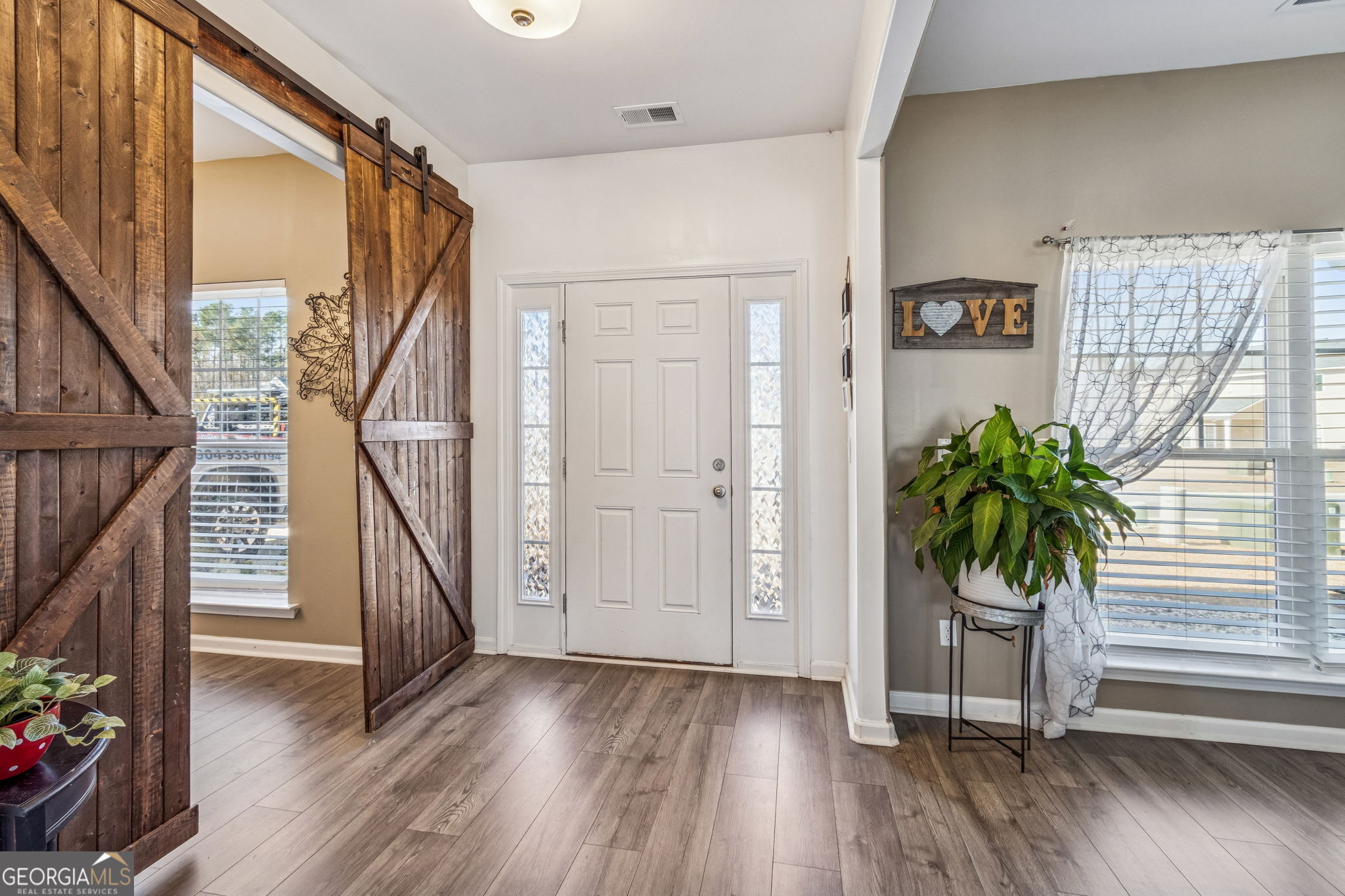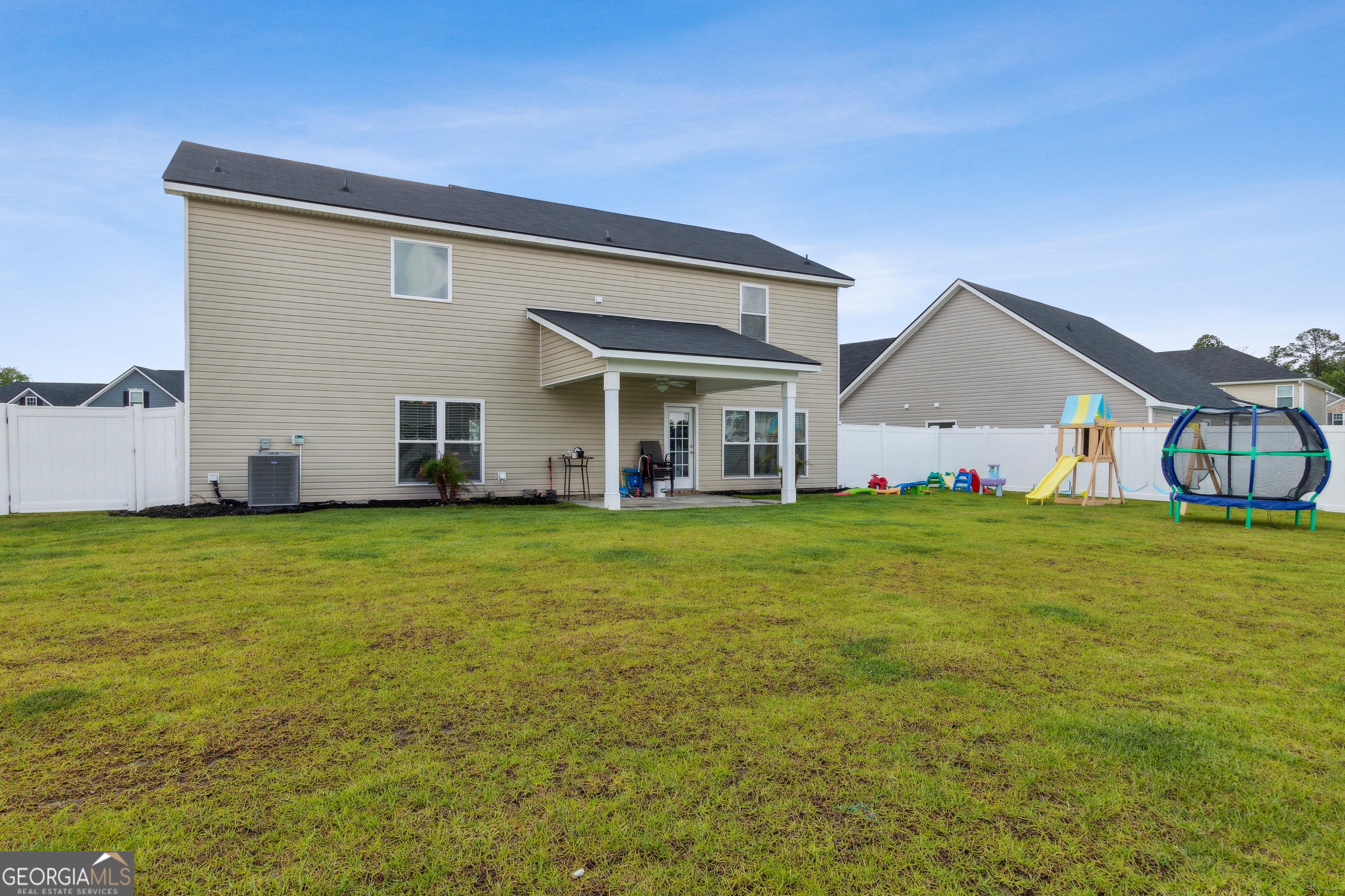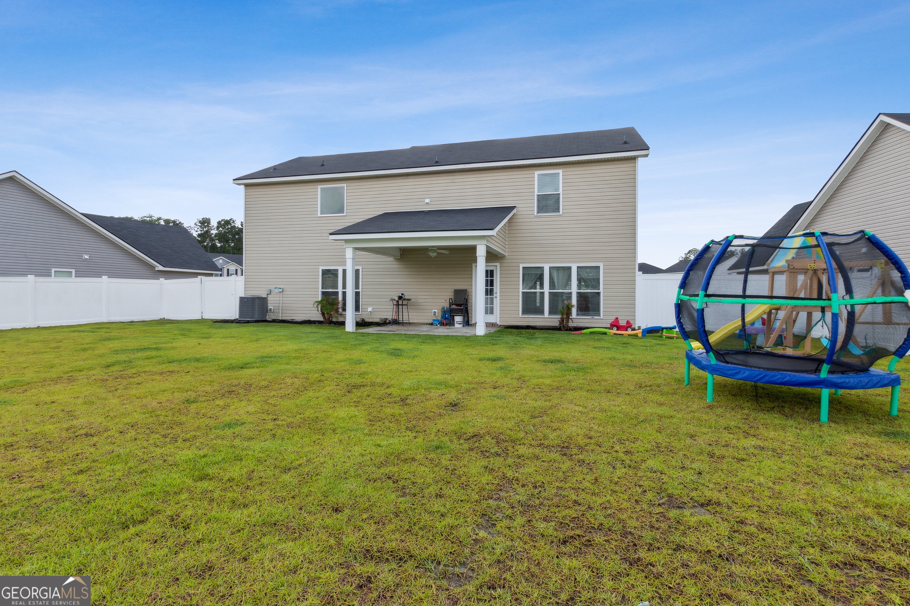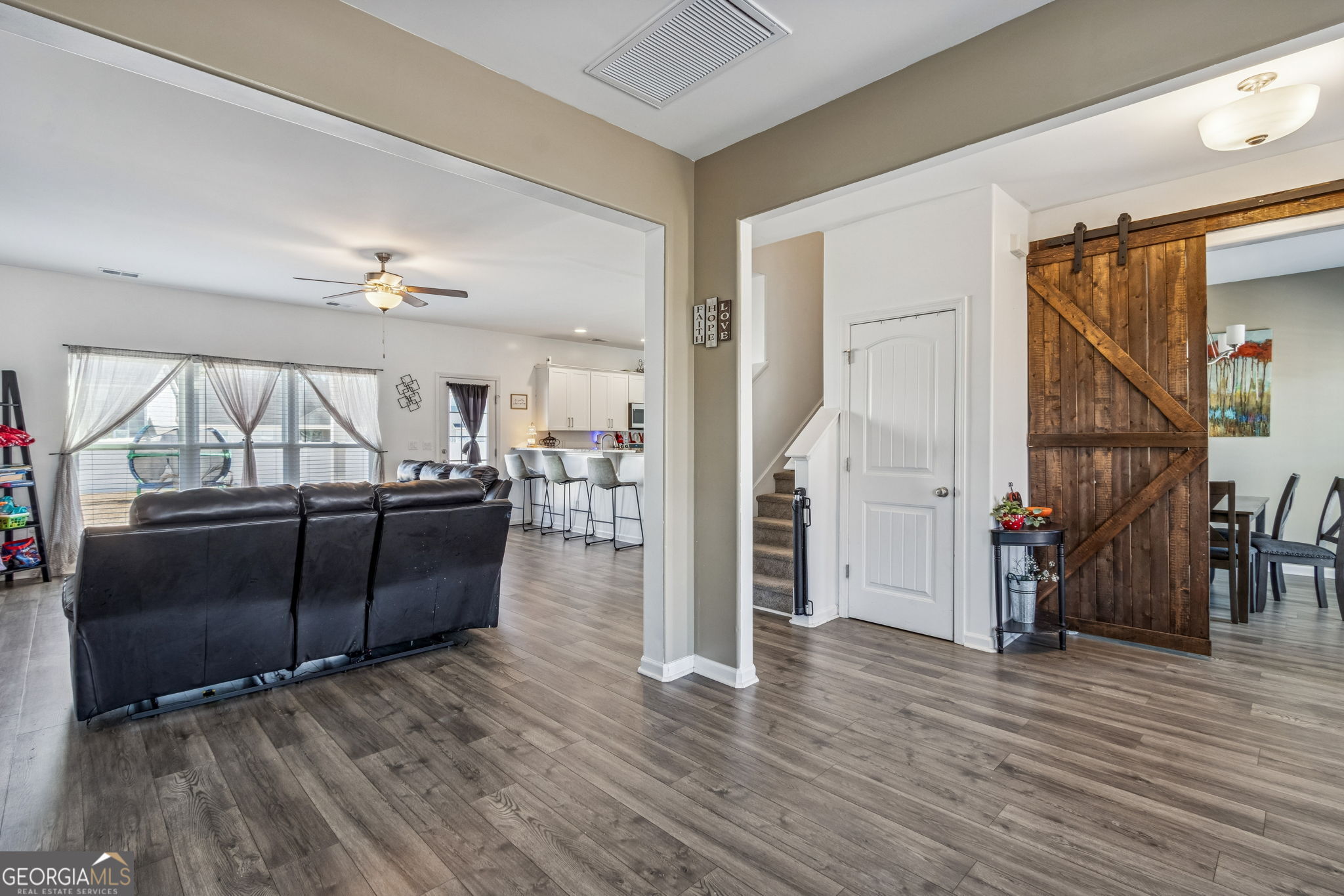 Step into this stunning 4-bedroom, 2.5-bath home that offers an impressive 2,600+ square feet of thoughtfully designed living space in Settlers Hammock. The moment you enter, you'll find two versatile flex spaces on the main floor, perfect for a home office, playroom, or whatever your lifestyle demands. The dining area is a true centerpiece, enhanced by elegant barn doors that add a touch of rustic charm. The open eat-in kitchen is a culinary dream, featuring a spacious breakfast bar, granite countertops, and stainless-steel appliances. Enjoy the convenience of a walk-in pantry and a half bath, thoughtfully placed for easy access. Venture upstairs to discover four generously sized bedrooms, complemented by a large laundry room for added convenience. The owner's suite is a true retreat, boasting an oversized layout with a dedicated area perfect for an office or cozy den. The luxurious bathroom includes both a separate shower and a relaxing soaking tub, along with two expansive closets for all your storage needs. Step outside to your private backyard oasis, perfectly sized for entertaining or relaxing. It comes complete with a covered patio and a pristine white vinyl fence, ensuring your outdoor space is both beautiful and functional.