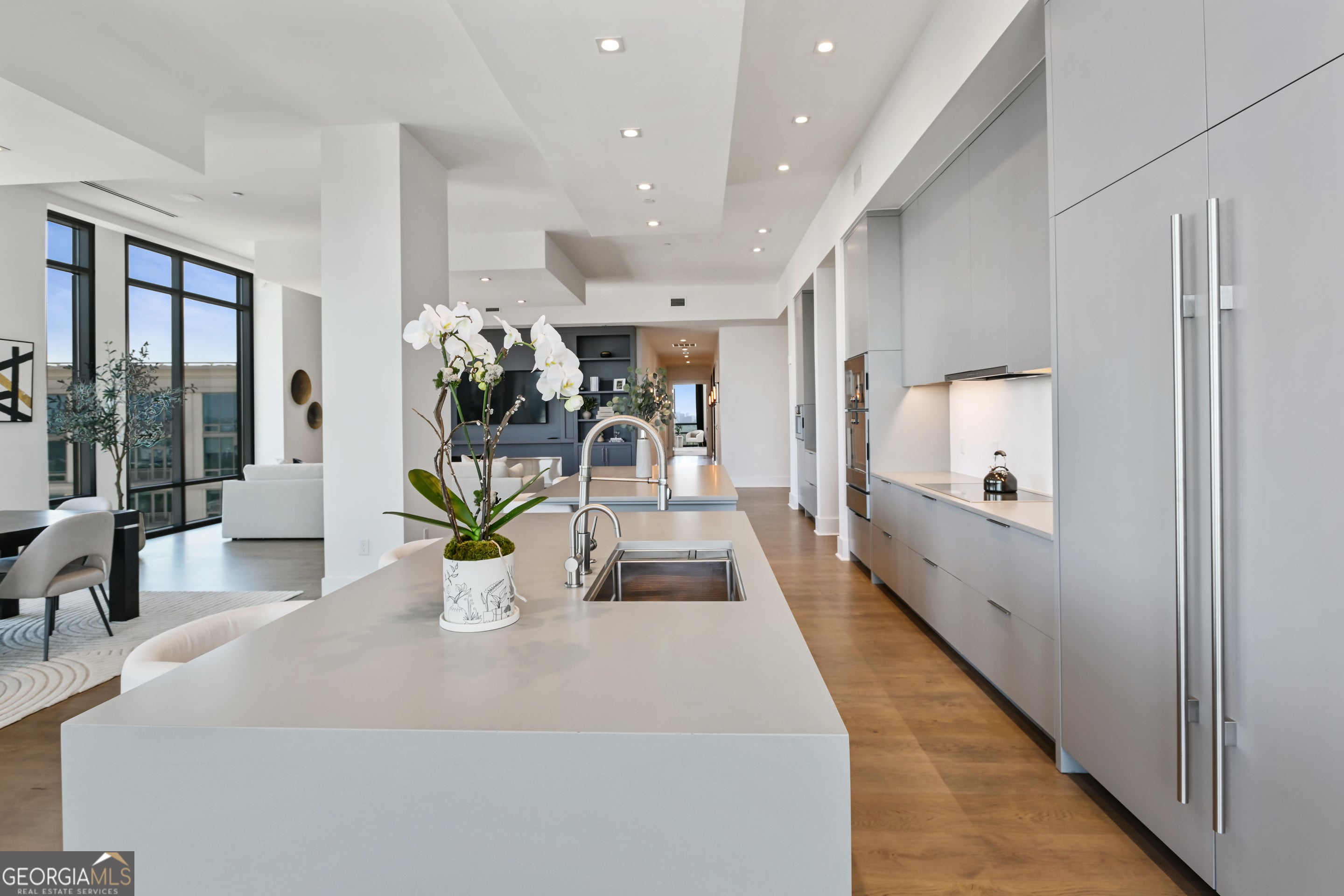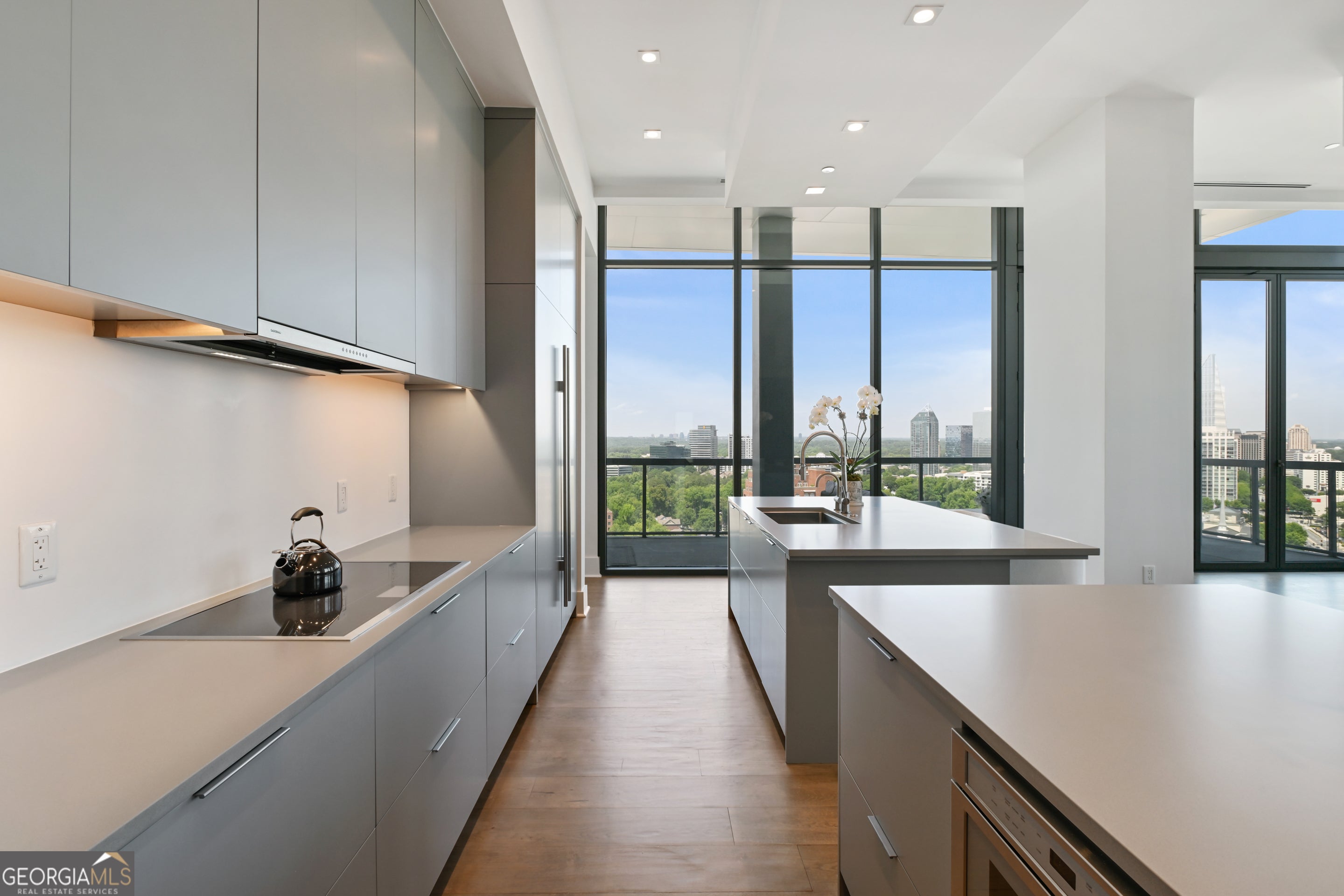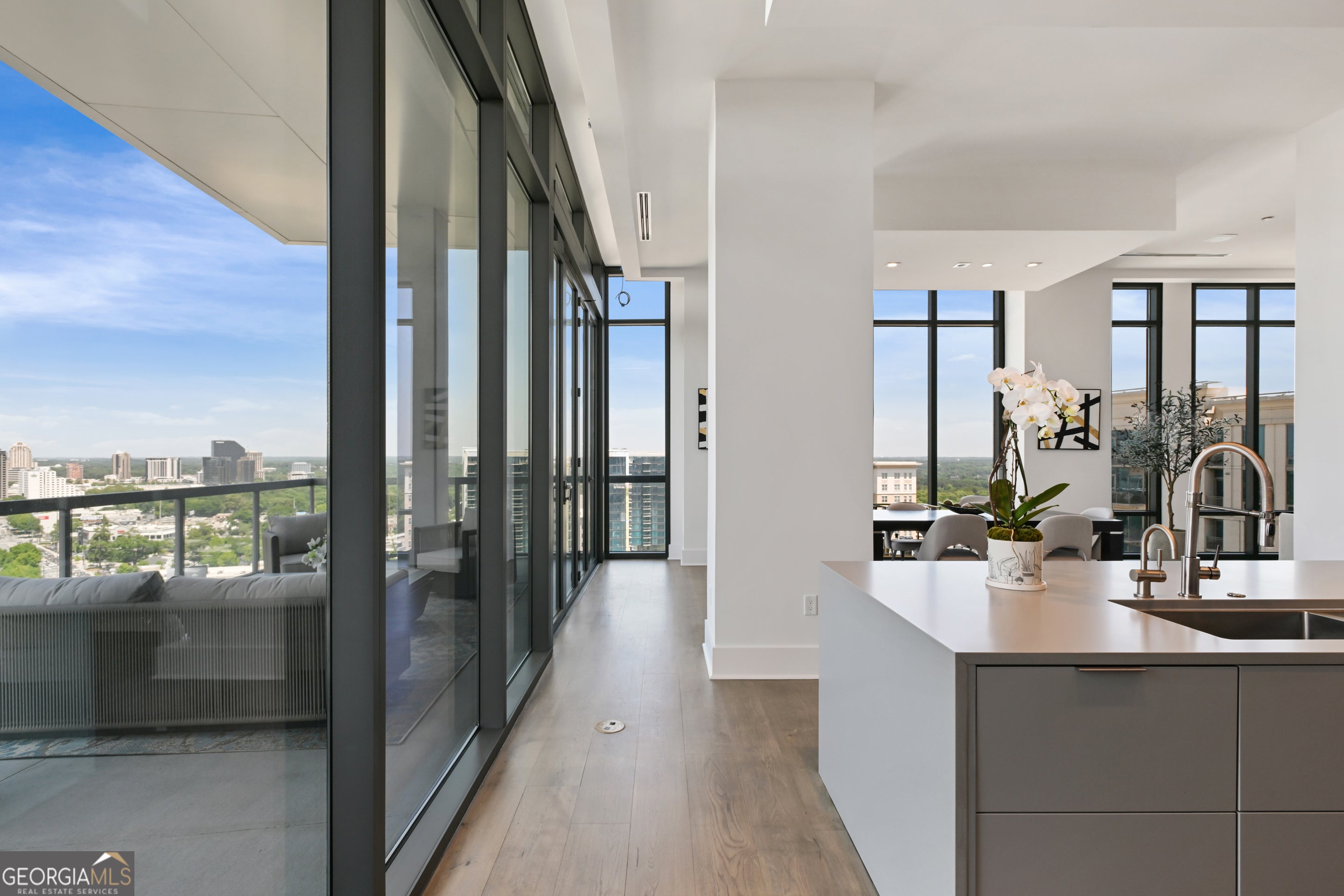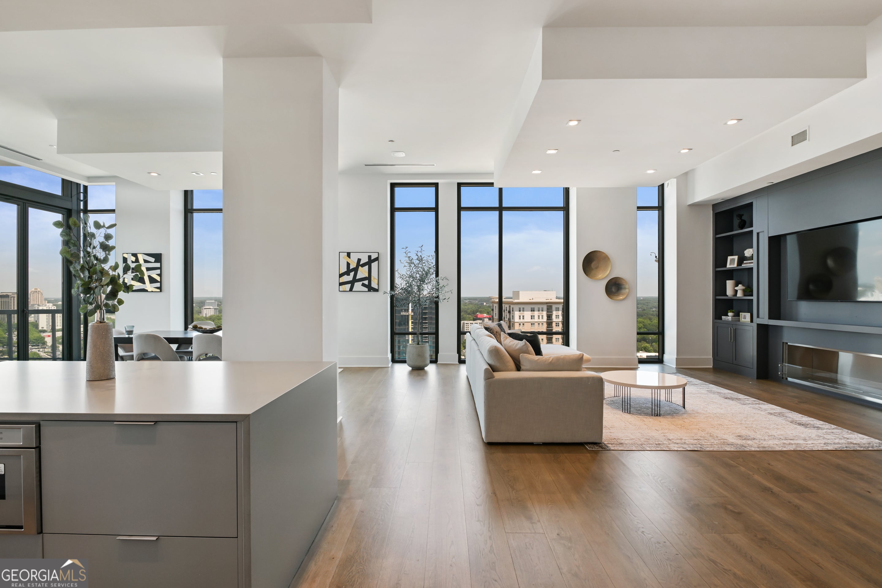 Welcome to a luxurious urban oasis in the heart of Atlanta at 3107 Peachtree Road Northeast, Unit 2003. This modern and elegant residence spans an impressive 4,527 square feet, offering four spacious bedrooms and three and a half beautifully appointed bathrooms. This condominium is a masterpiece of design and comfort, featuring three expansive terraces, complete with a grill perfect for alfresco dining and entertaining. Connect with nature while enjoying the pristine views of Buckhead, each terrace includes a hose bib to care for greenery. The state-of-the-art kitchen is a culinary enthusiast's dream, boasting Gaggenau European appliances, two expansive kitchen islands, a wine refrigerator and a chic coffee bar. Experience the ultimate in relaxation with heated floor bathrooms from your Victoria Albert tub or steam shower. The residence's sophisticated amenities extend to include a private theatre room, a custom built glass-encased home office, and ample space for a home gym. Hardwood floors with built-in floor wash lights add a touch of elegance throughout, while an in-unit laundry room and assigned parking ensure everyday convenience. Residents benefit from a suite of luxurious building amenities including next-level security, a doorman, garage, gym, and a pristine pool. Pet owners will especially enjoy the dog walk area & dog washing station. Discover an unparalleled living experience in this exquisite Atlanta condo, where modern luxury meets timeless elegance. 4 deeded parking spaces and storage unit.