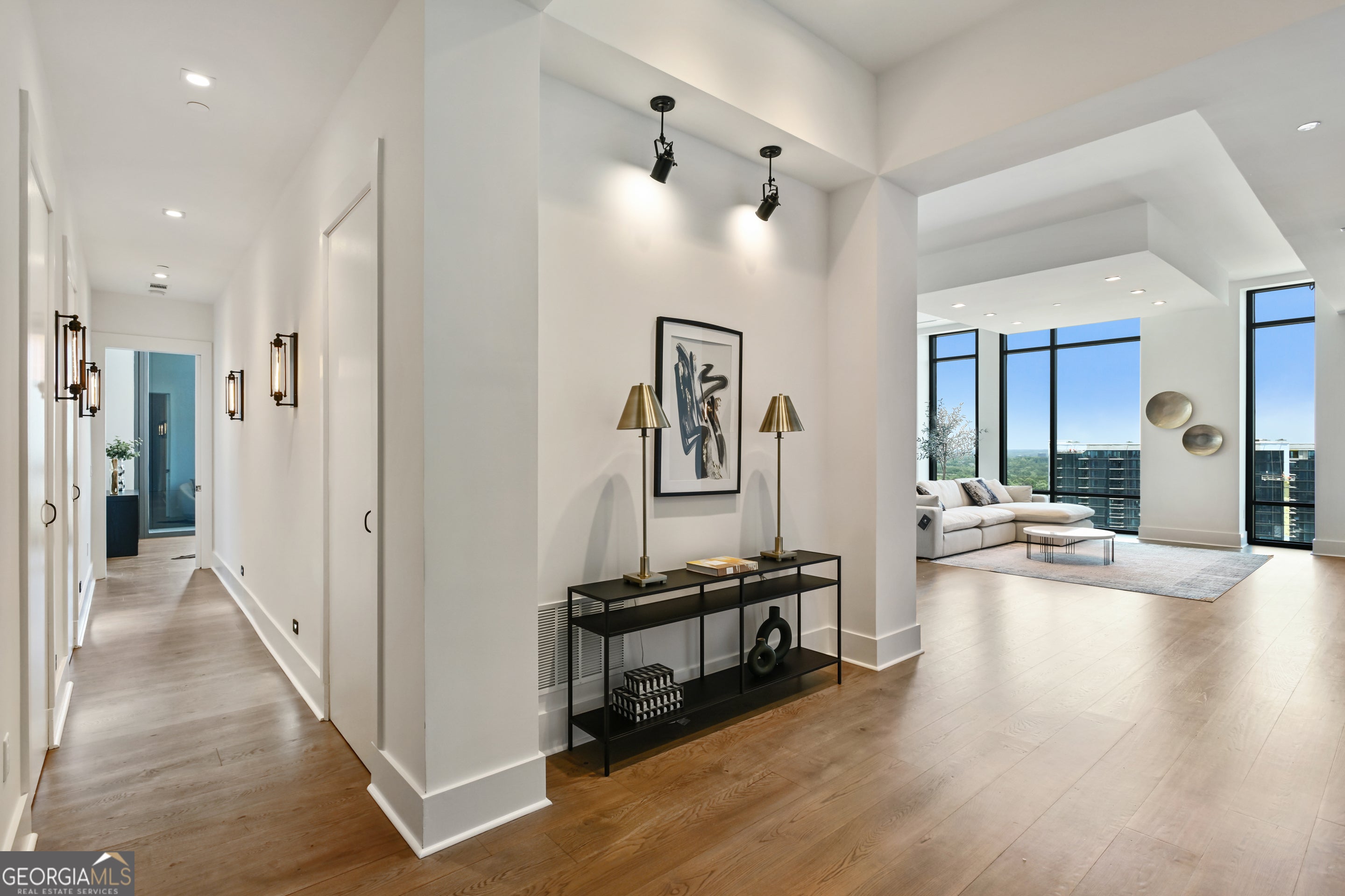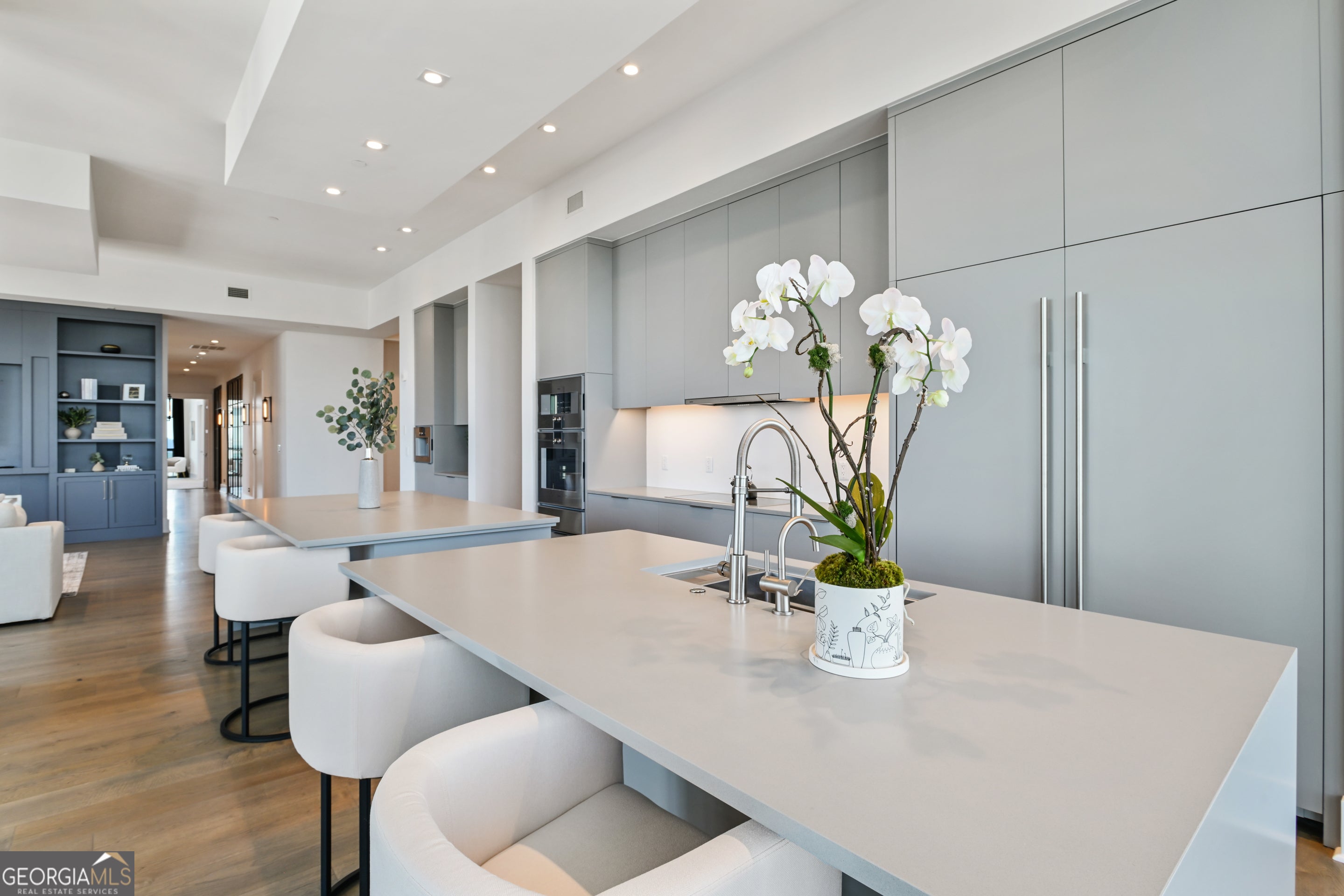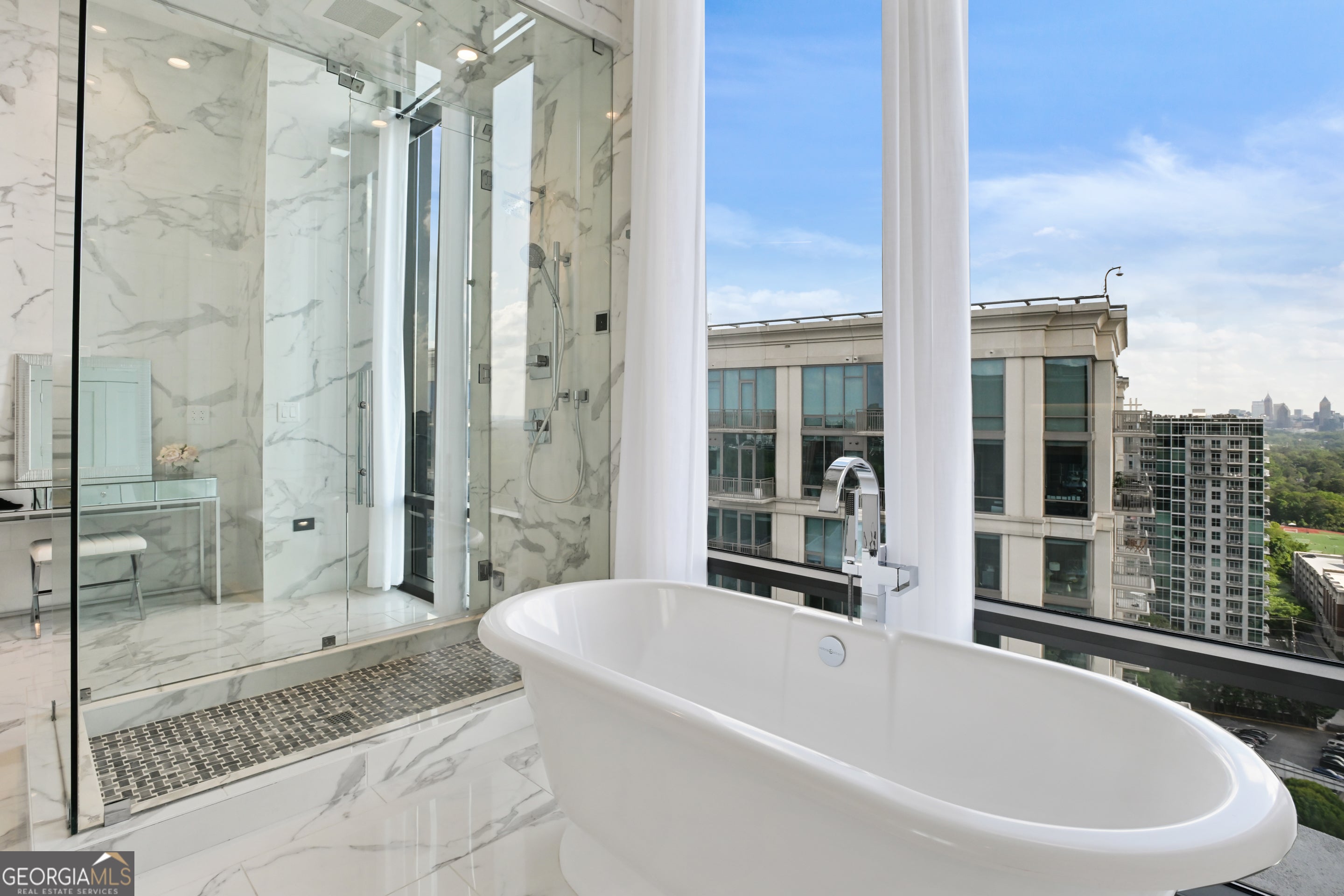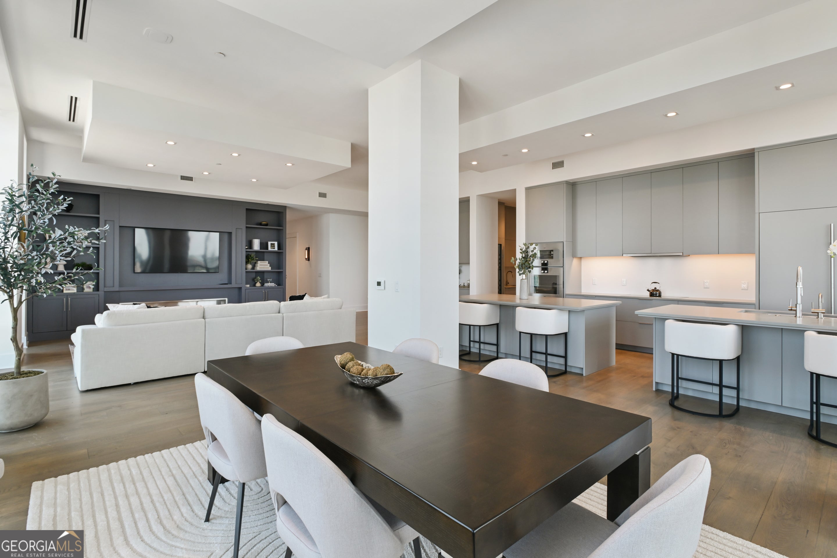 Welcome to a luxurious urban oasis in the heart of Atlanta at 3107 Peachtree Road Northeast, Unit 2003. This modern and elegant residence spans an impressive 4,527 square feet, offering four spacious bedrooms and three and a half beautifully appointed bathrooms. This condominium is a masterpiece of design and comfort, featuring three expansive terraces, complete with a grill perfect for alfresco dining and entertaining. Connect with nature while enjoying the pristine views of Buckhead, each terrace includes a hose bib to care for greenery. The state-of-the-art kitchen is a culinary enthusiast's dream, boasting Gaggenau European appliances, two expansive kitchen islands, a wine refrigerator and a chic coffee bar. Experience the ultimate in relaxation with heated floor bathrooms from your Victoria Albert tub or steam shower. The residence's sophisticated amenities extend to include a private theatre room, a custom built glass-encased home office, and ample space for a home gym. Hardwood floors with built-in floor wash lights add a touch of elegance throughout, while an in-unit laundry room and assigned parking ensure everyday convenience. Residents benefit from a suite of luxurious building amenities including next-level security, a doorman, garage, gym, and a pristine pool. Pet owners will especially enjoy the dog walk area & dog washing station. Discover an unparalleled living experience in this exquisite Atlanta condo, where modern luxury meets timeless elegance. 4 deeded parking spaces and storage unit.