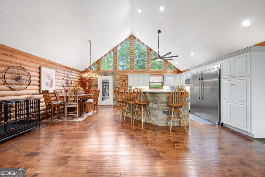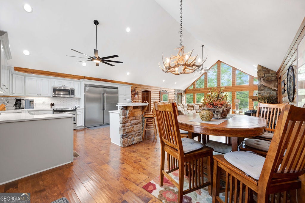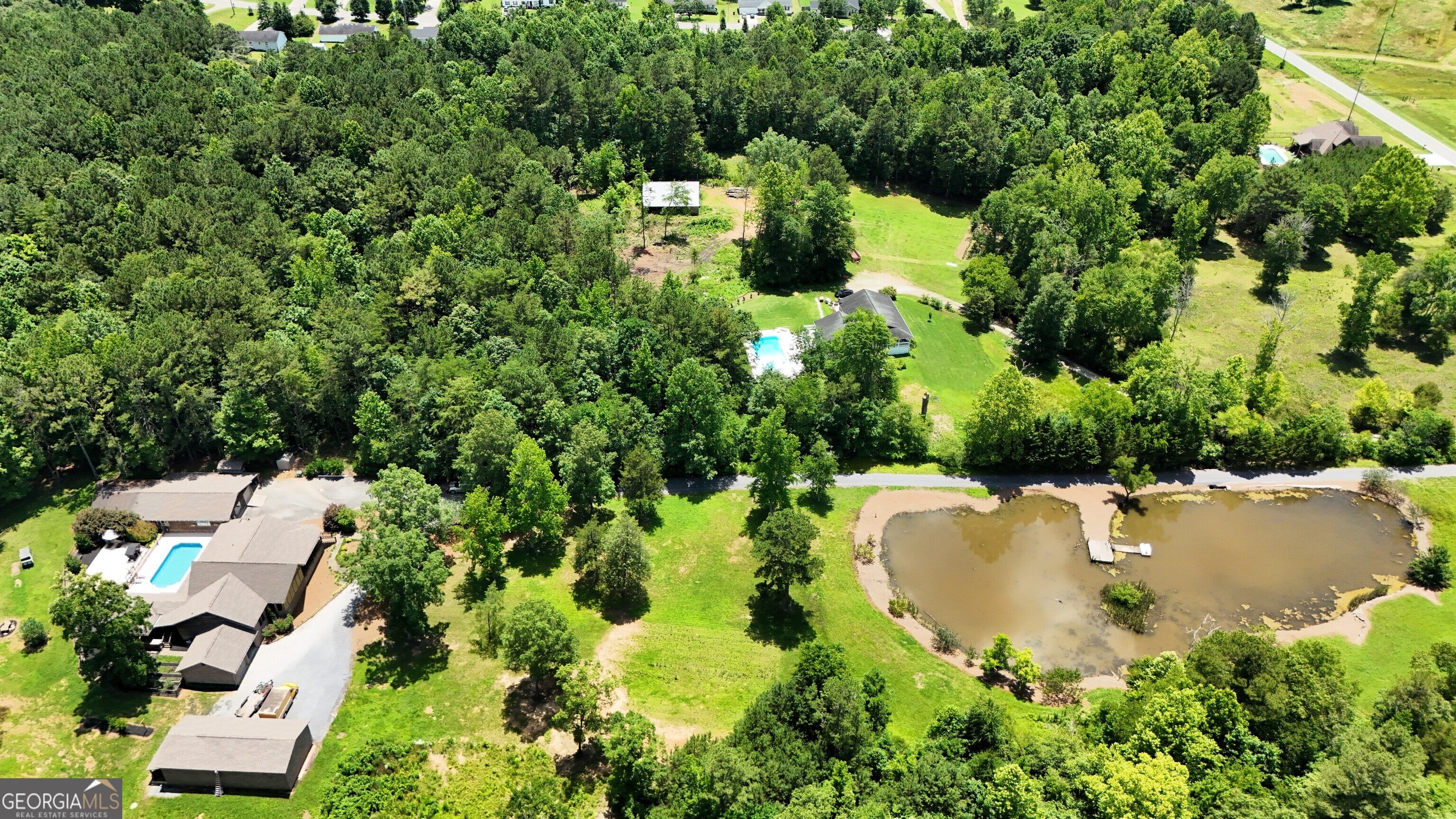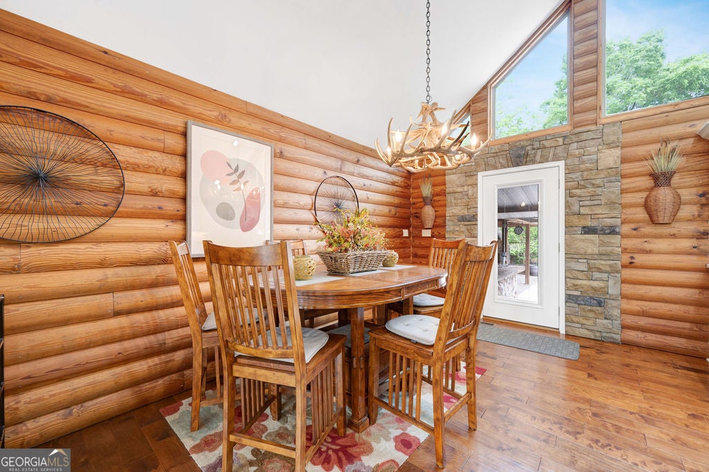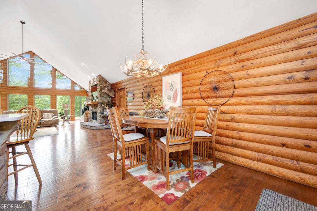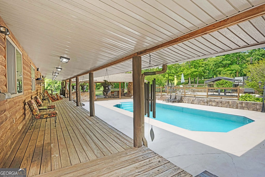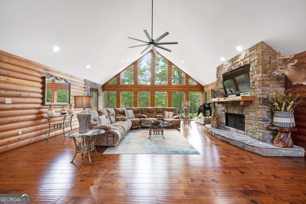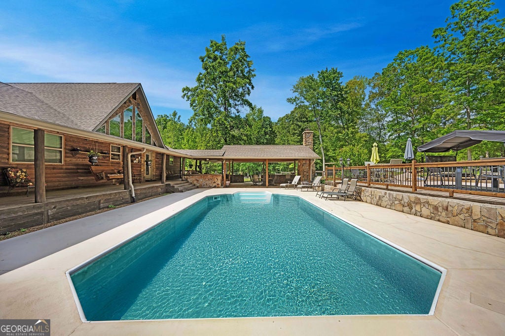 4440 Keith Rd, Ringgold, GA - Your Premier & Retreat Awaits! 2 Homes, 7 Total Garages, Pool w/Cabana + Fireplace, 6+ Acres. & Stocked Pond. A MUST SEE & TOUR TO TAKE IT ALL IN! Welcome to your private sanctuary-where luxury meets rustic charm in this stunning custom-built home inspired by the serene beauty of the Smoky Mountains. Nestled on approximately 6.74 acres, this 2568 sq ft masterpiece is a rare opportunity to own a conventionally framed, log cabin-style retreat, meticulously crafted by its original owners with no detail spared. Totally updated, roof, windows, HVAC, and water heaters have been replaced 2023-2025. Nothing spared. As you arrive, you'll be greeted by a private pond, setting a tranquil tone before you even step inside. The interior opens to a breathtaking great room with soaring cathedral ceilings, seamlessly connected to a gourmet kitchen featuring custom cabinetry, premium countertops, and high-end appliances-perfect for both entertaining and everyday living. The luxurious primary suite is a true retreat, complete with its own fireplace, dual walk-in closets, a spa-like ensuite with upscale finishes, and even a private sauna. Two additional bedrooms, a spacious office (or optional fourth bedroom), a full bath, and a well-appointed laundry room round out the main home's thoughtful layout. Ideal for guests or multi-generational living, the separate 1500sf guest house offers an open-concept design, full kitchen, and bath-perfect as a mother-in-law suite, extended stay for older children, or a potential income-producing Airbnb. Step outside to your very own resort-style oasis. The expansive patio and sparkling pool are rivaled only by the stylish cabana-complete with built-in grill, refrigerator, and cooler storage to keep refreshments flowing all day long. Additional features include a large 4-bay garage for your RVs, boats, or collector cars, a dedicated workshop, and even a deer-skinning station for outdoor enthusiasts. This is more than a home, it's a resort lifestyle. Private tours now available or view the 360 Virtual Tour online.