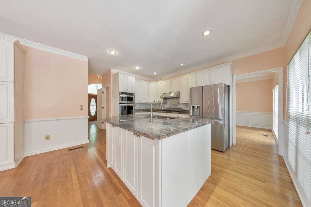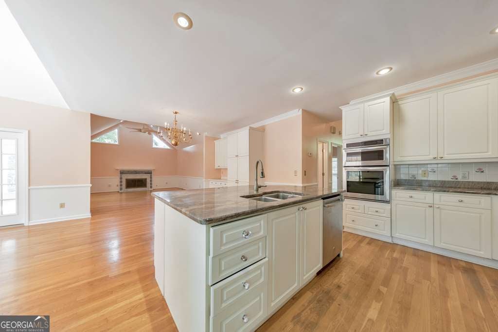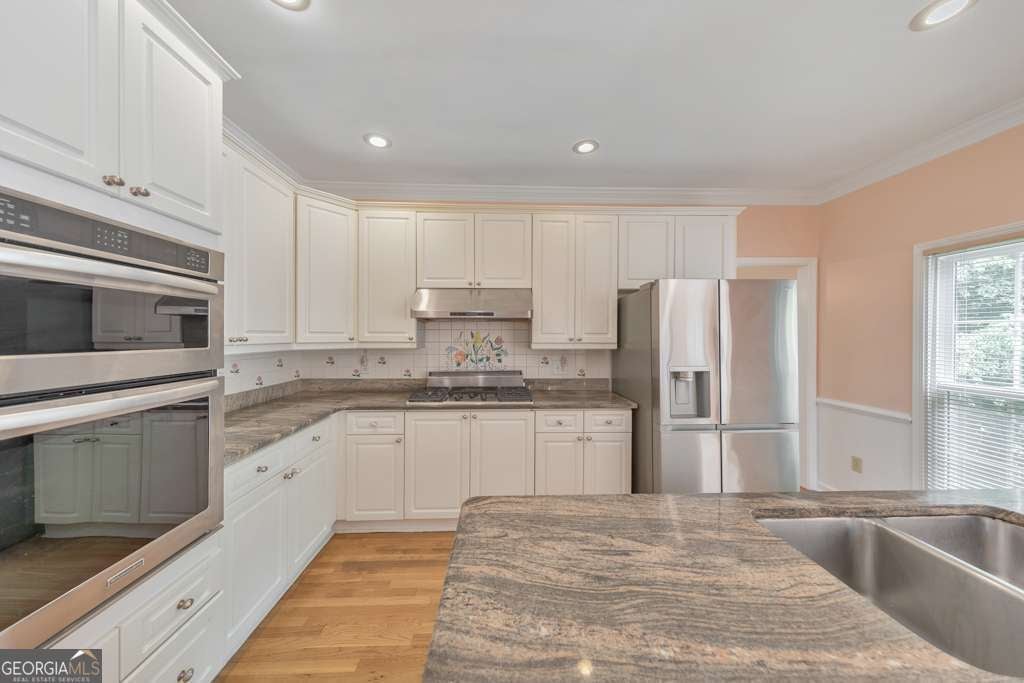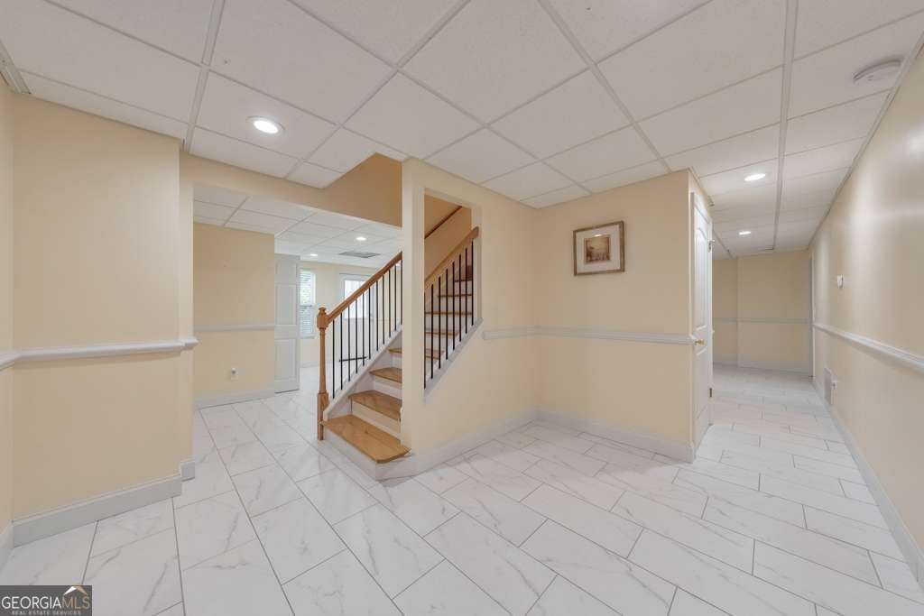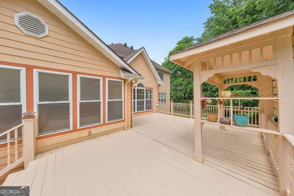 Welcome to this beautifully updated 6-bedroom, 4-bathroom home in the heart of East Cobb, ideally situated on a large corner lot at the entrance of a quiet cul-de-sac in the desirable Stoneoak Pointe community. With fresh interior paint, refinished flooring, brand-new carpet, and a newly repainted deck, this home is move-in ready and full of charm. Step into the grand 2-story foyer that opens to a formal sitting roomCoperfect for a home office, playroom, or flex spaceCoand a separate dining room, both featuring elegant designer light fixtures. The modern kitchen is a showstopper with white cabinetry, a large center island, stone countertops, and a bright breakfast room with vaulted ceilings. The fireside family room also boasts vaulted ceilings and opens to a large sunroom overlooking the backyardCoideal for relaxing or entertaining. The main level offers a secondary bedroom and full bathroom, plus a convenient laundry room. Upstairs, you'll find the spacious primary suite with cathedral ceilings, a walk-in closet, and a spa-like ensuite bath with double vanities, a whirlpool tub, and a separate shower. Three additional secondary bedrooms and a full bathroom complete the upper level. The finished basement adds even more versatility with a bedroom, full bathroom, multiple flex rooms, storage rooms, and access to the terrace-level 1-car garage. Enjoy outdoor living on the rear deck or the lower-level patio, both overlooking the private backyard. Stoneoak Pointe offers fantastic amenities including a clubhouse, pool, and tennis courts. Located in the top-rated Wheeler High School district with easy access to Marietta Square, major roadways, and endless shopping and dining optionsCothis is East Cobb living at its finest!