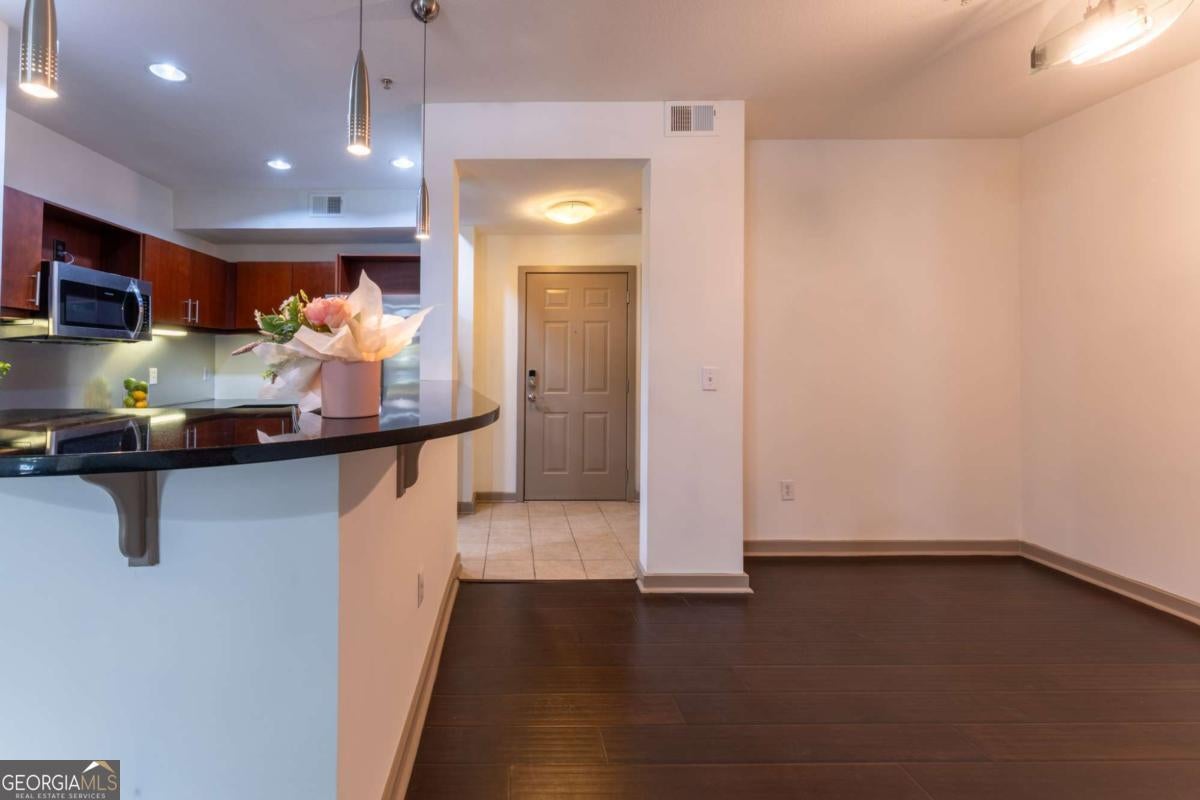 Modern City Living at Its Best - Largest 1BR in Element at Atlantic Station! Step into refined urban living with this beautifully updated 1- bedroom, 1-bathroom condo, ideally situated in the heart of vibrant Atlantic Station. Spanning an impressive 868 square feet, this is the largest 1-bedroom floor plan available in the sought-after Element community - a rare find for those who crave space, comfort, and convenience in one of Atlanta's most dynamic neighborhoods. Located on the ground floor, this unit offers direct access to a peaceful courtyard and grilling area, perfect for quiet mornings, evening wine, or weekend get-togethers. Inside, enjoy the fresh feel of NEW interior paint, all new stainless steel appliances, and a completely renovated shower with a sleek glass enclosure, offering a spa-like experience in the comfort of your own home. The modern kitchen features granite countertops, a breakfast bar, European-style cabinetry, and a full suite of BRAND-NEW appliances - including a REFRIGERATOR, MICROWAVE, and OVEN. The spacious open layout flows seamlessly into the living and dining areas, while the bedroom features a generously sized walk-in closet. For added value and convenience, this home includes a BRAND-NEW washer and dryer, making everyday living effortless. Live steps away from Microsoft's new campus, IKEA, Georgia Tech, Publix, Target, and the Millennium Gate Museum, with access to walking trails, a fountain plaza, shops, dining, and entertainment right outside your door. Whether working remotely, commuting, or studying nearby, you'll love the unbeatable accessibility and lifestyle this location offers. The Element community also provides resort-style amenities, including a sparkling swimming pool, state-of-the-art fitness center, clubhouse, and gated parking.