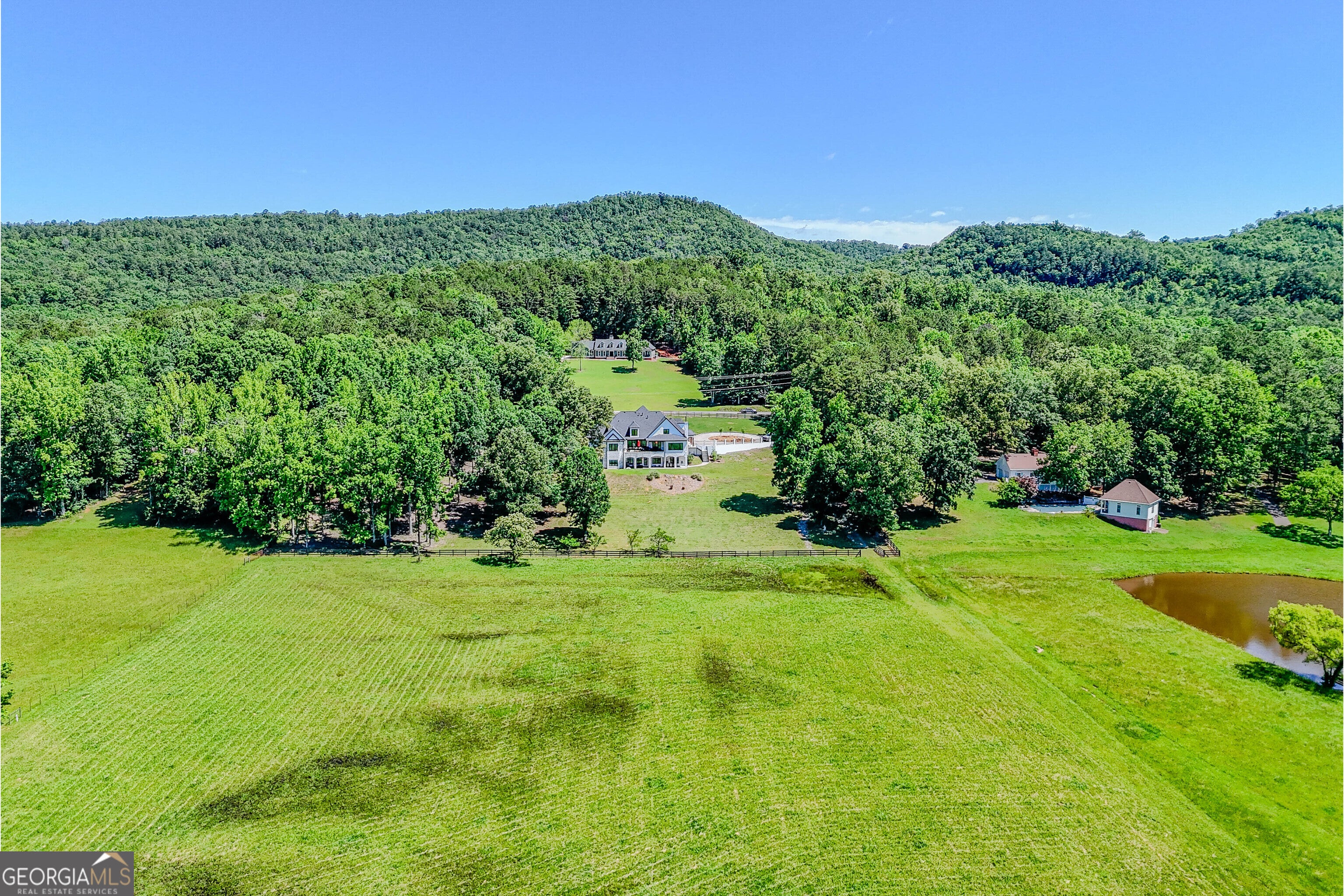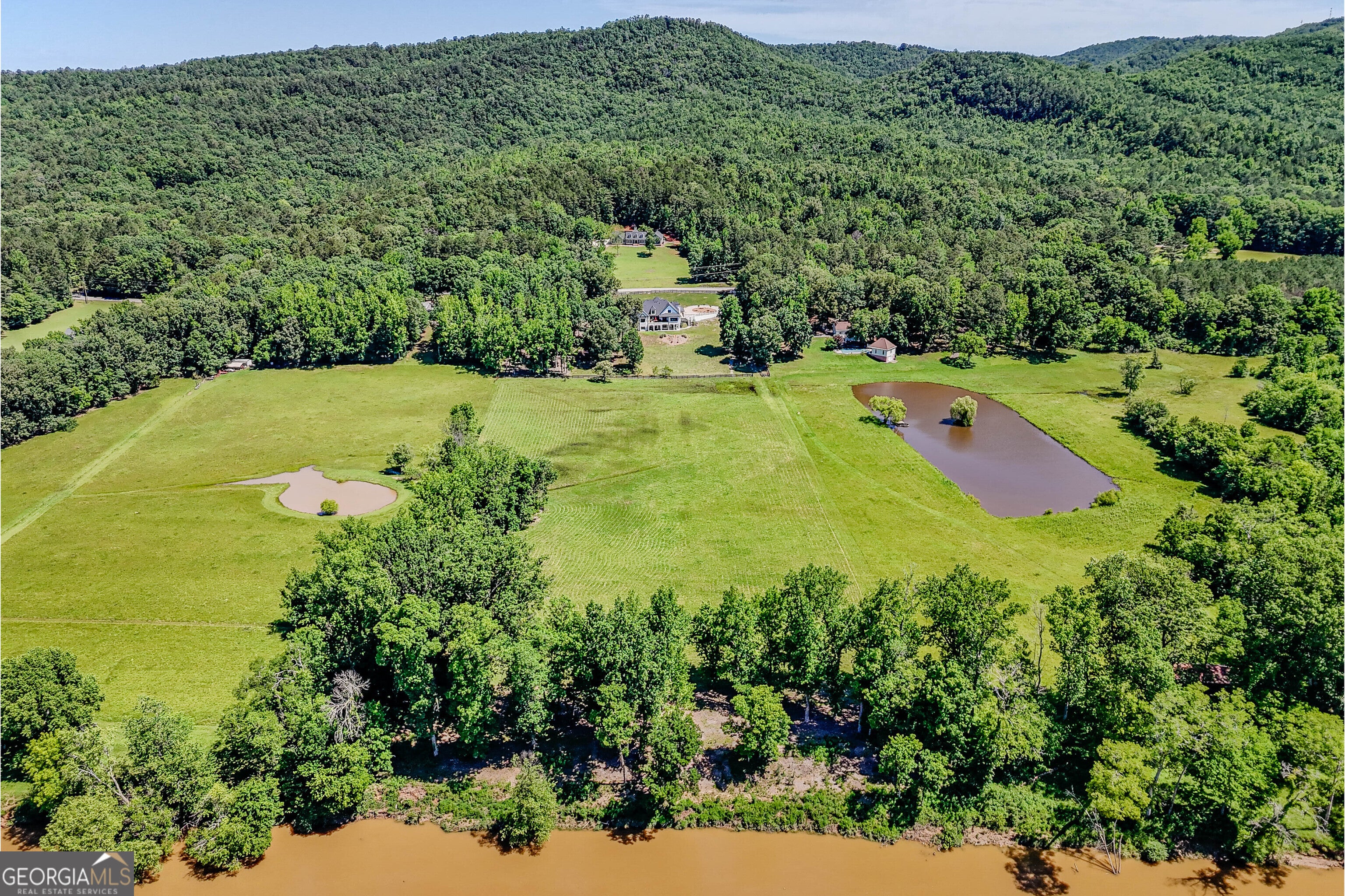 Embrace tranquility in this exquisite, meticulously renovated, riverside estate set upon 11.7 acres with 380 feet of private Coosa River frontage. This beautifully maintained brick home is situated to offer sweeping views of level pastures from its elevated vantage point. The 7 bedroom, 5.5 bathroom Horseleg Creek home boasts luxurious upgrades including a spacious gourmet kitchen ideal for culinary enthusiasts, a Sub-Zero refrigerator, 7-inch walnut flooring, ample natural lighting and a master suite designed for ultimate relaxation-complete with a steam shower, heated floors, custom heated bench seating with integrated Bose sound system. The home office/library with custom built-ins and formal dining room showcase the attention to detail and design excellence throughout. Additional conveniences include an existing elevator shaft ready to service all three floors, an advanced vacuum system, and irrigation sprinklers for convenient property maintenance. Entertain effortlessly in the expansive theatre room with in-wall speaker system or on the spacious balcony that overlooks breathtaking pastoral vistas. The basement serves as a second living space equipped with it's own laundry connections, two additional bedrooms, one replicating the primary suite and a thoughtfully designed bathroom with heated tile floors and so much more! Schedule your tour today!