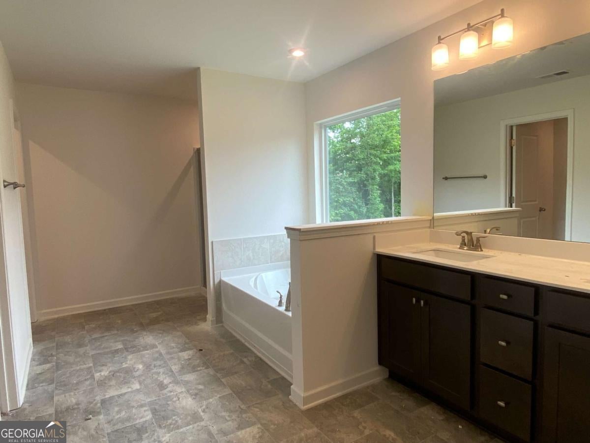 - Interior FeaturesDouble Vanity, High Ceilings, Pulldown Attic Stairs, Separate Shower, Soaking Tub, Tray Ceiling(s), Walk-In Closet(s)